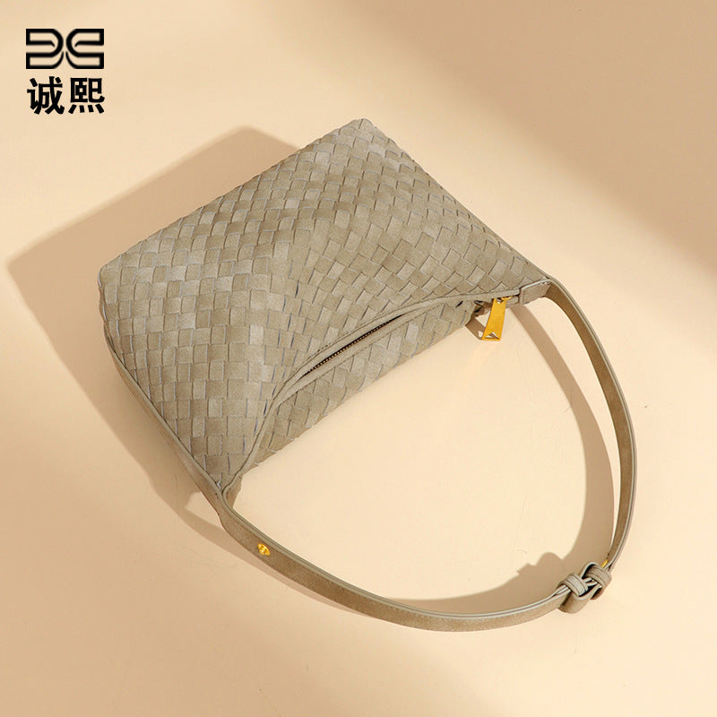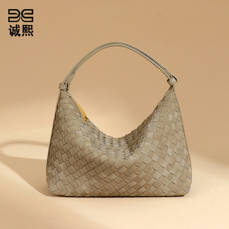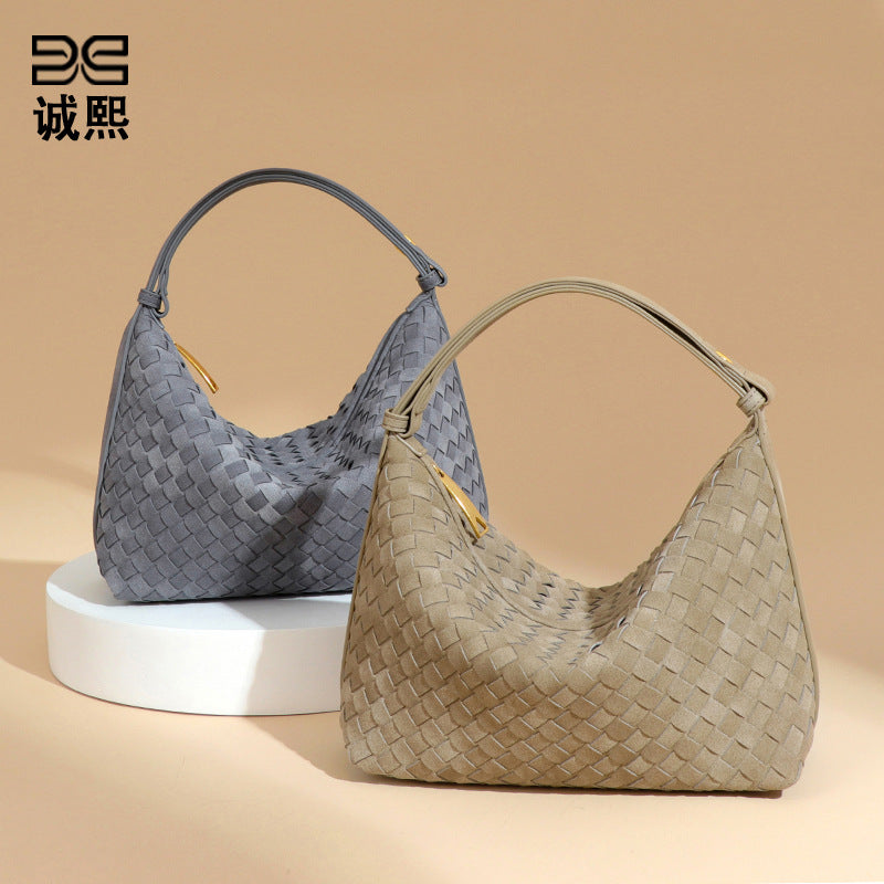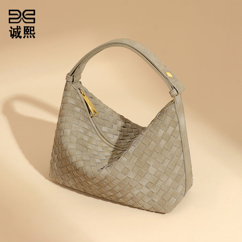 秋冬新品磨砂麂皮绒手拎饭盒包大容量高级感饺子包小众单肩腋下包