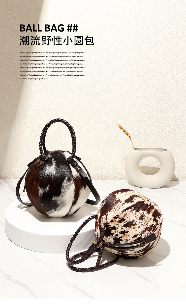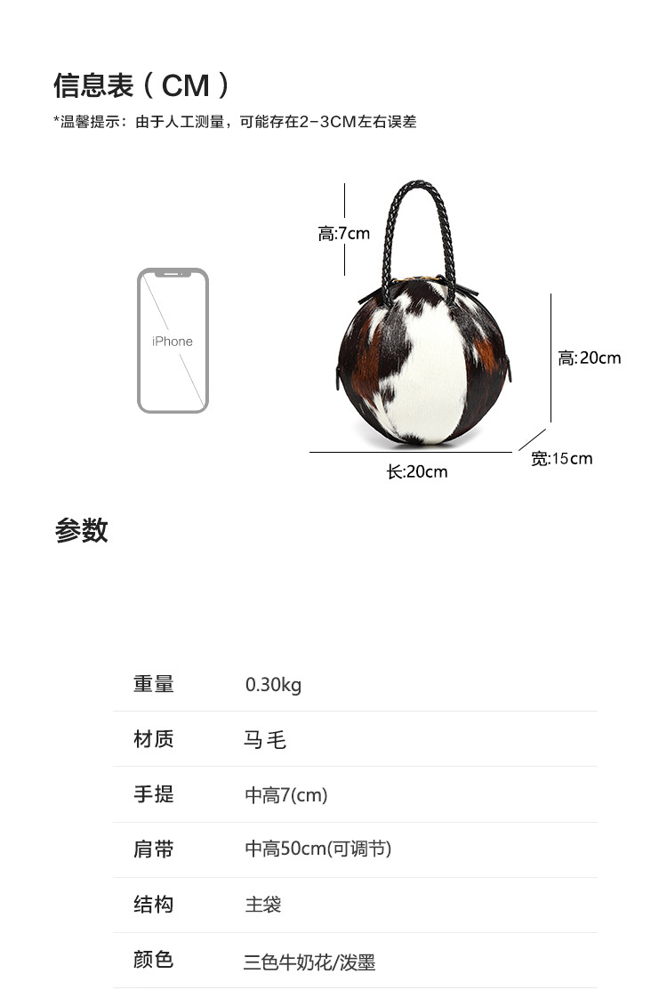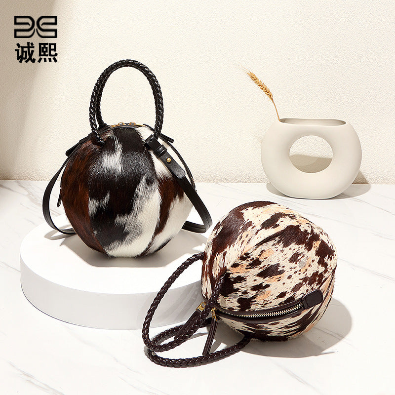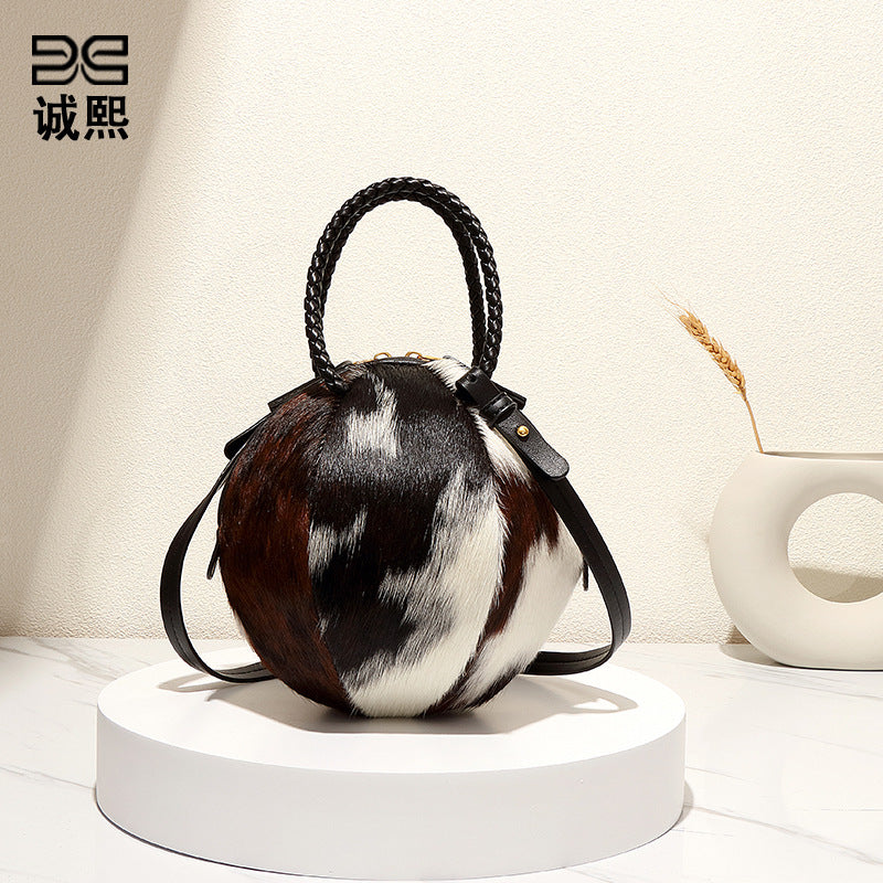 秋冬新款潮流手提高级感马毛包女士手拎圆球包质感小众单肩斜挎包