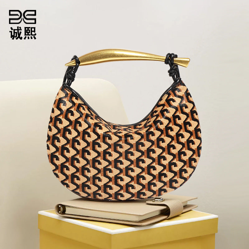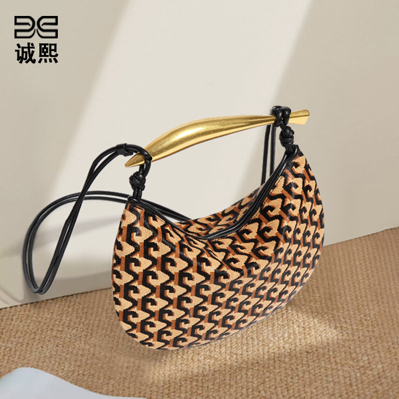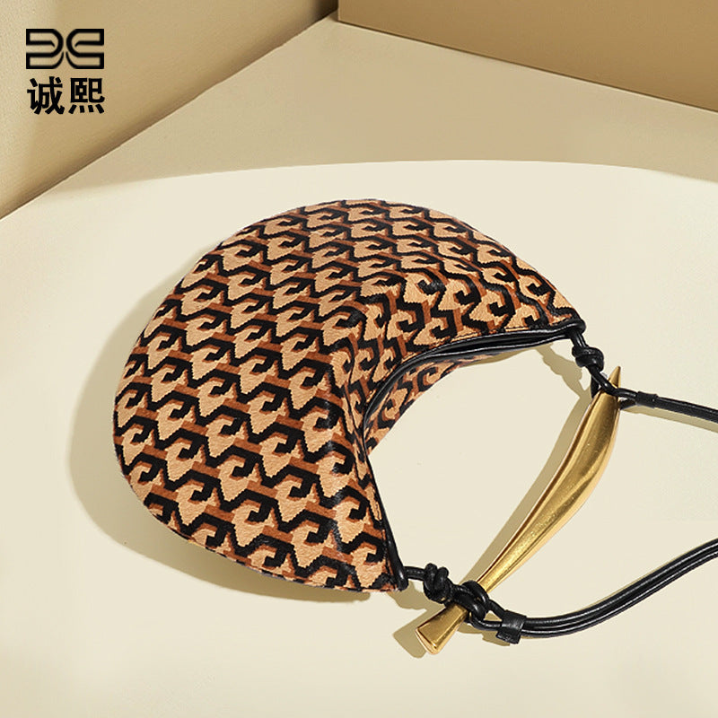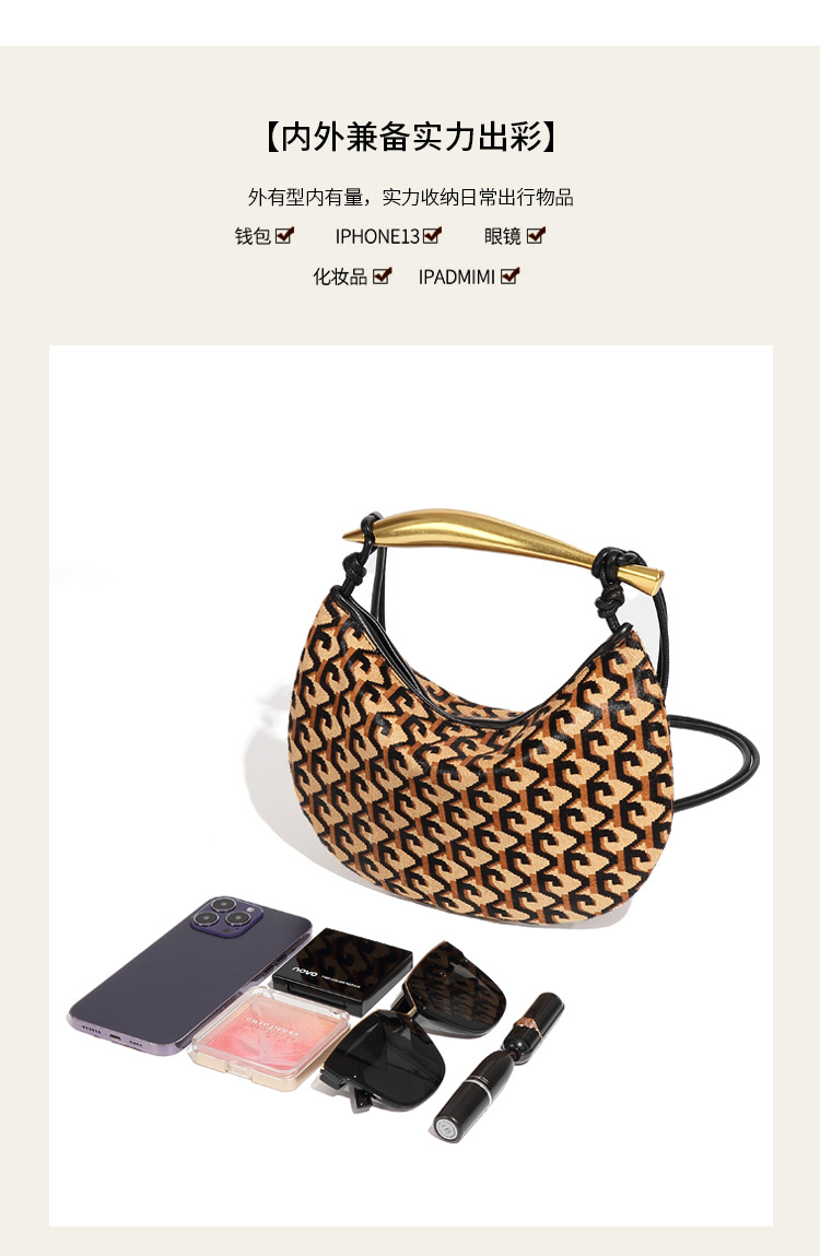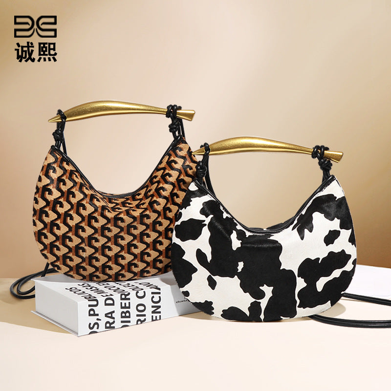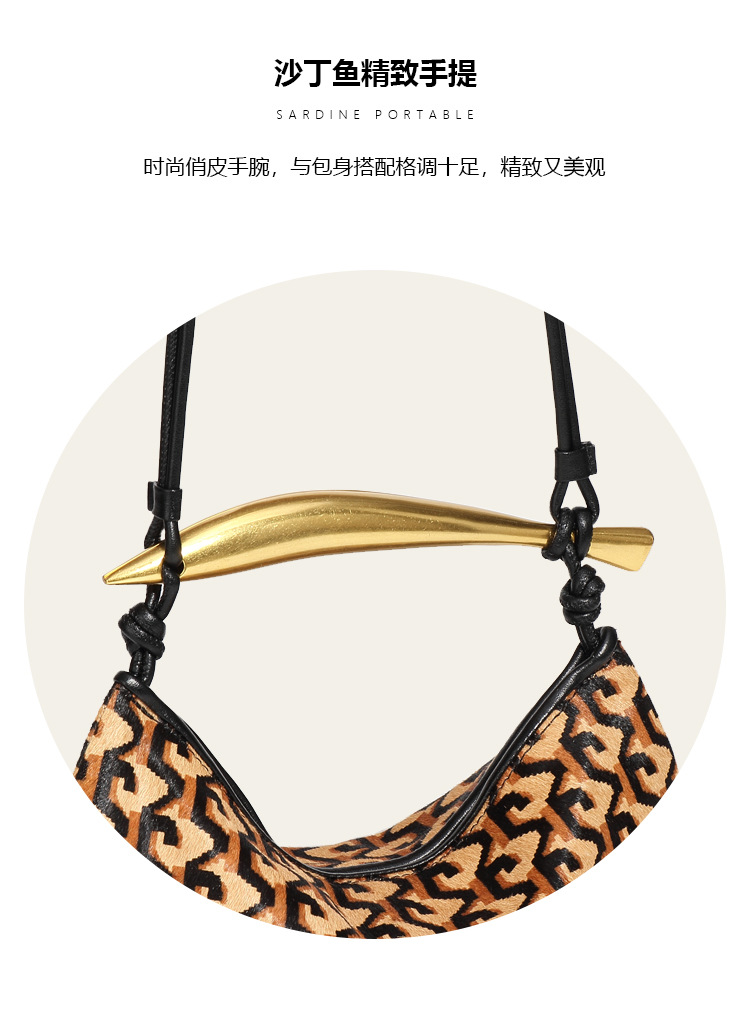秋冬新款真皮马毛高级感沙丁鱼包小众时尚单肩斜跨包复古手提女包