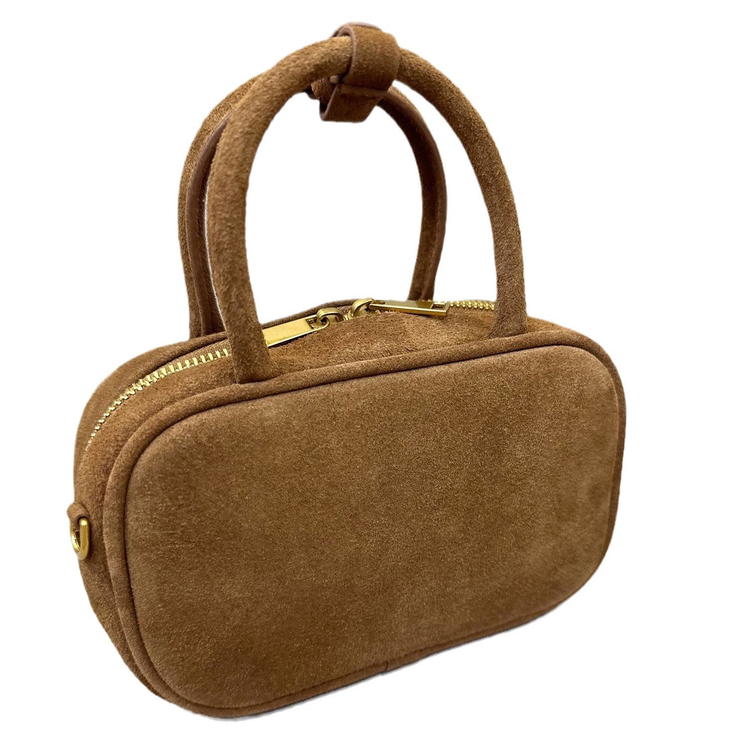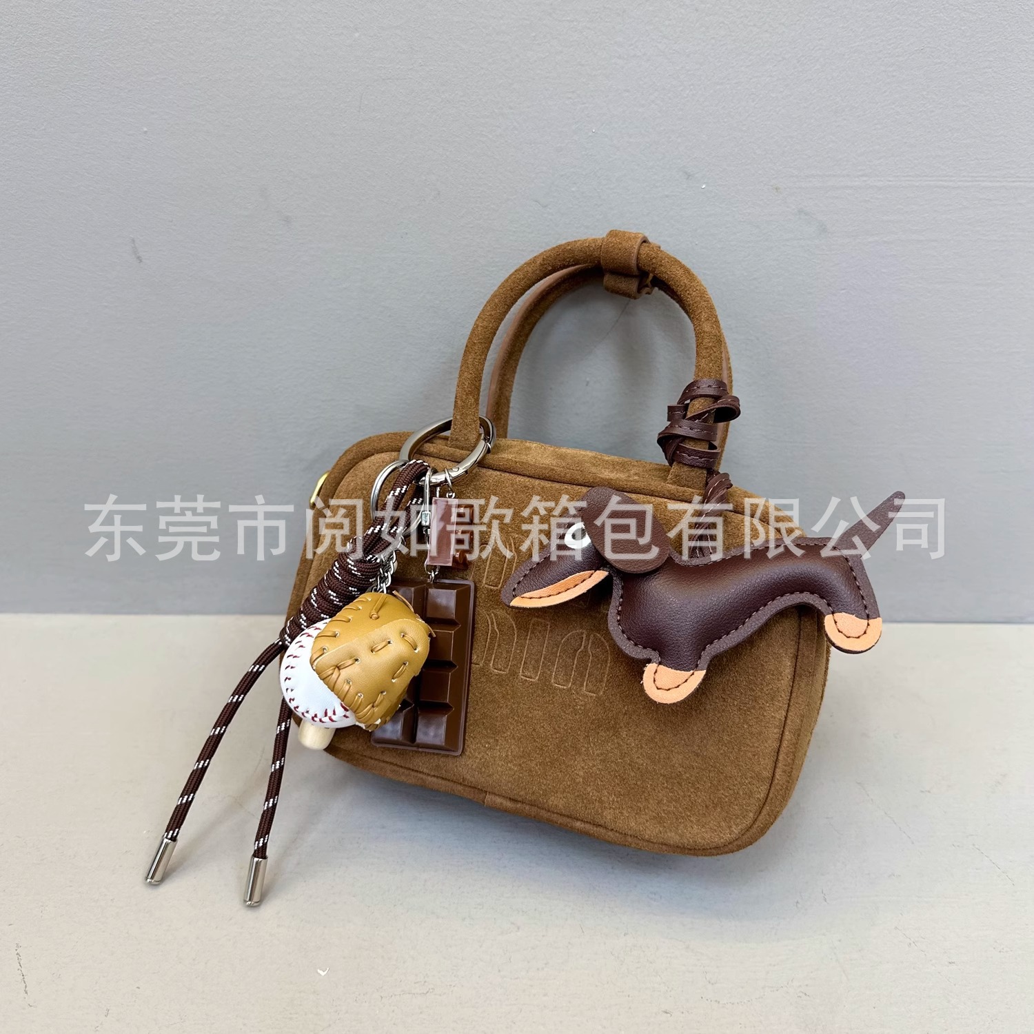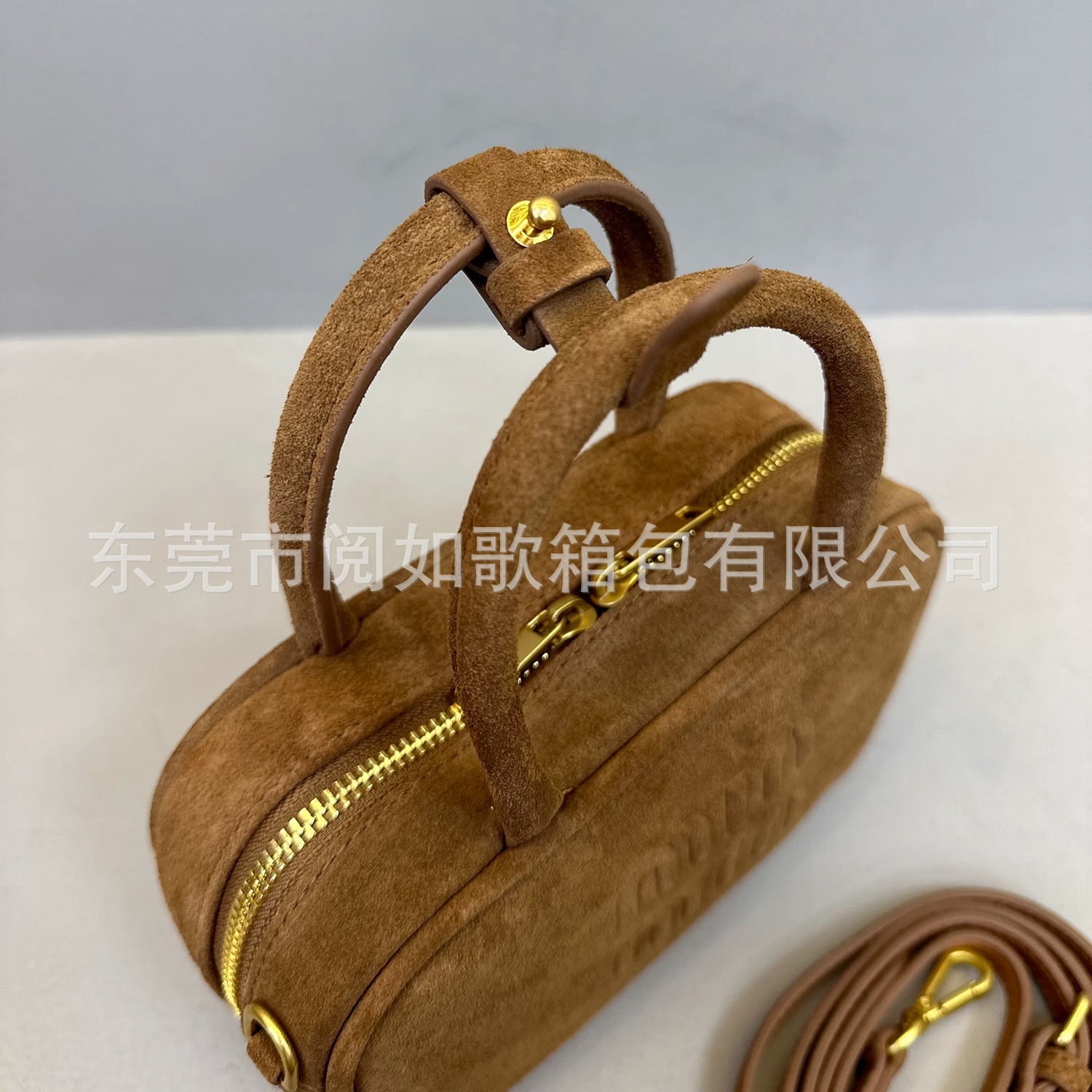 秋冬麂皮磨砂牛皮mini保龄球手提包真皮小方包手机包单肩斜挎包女