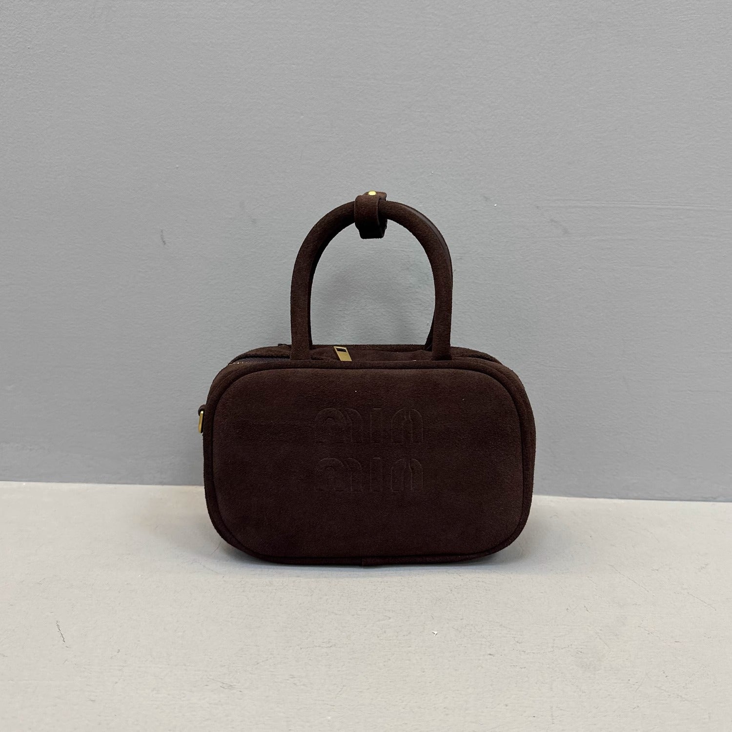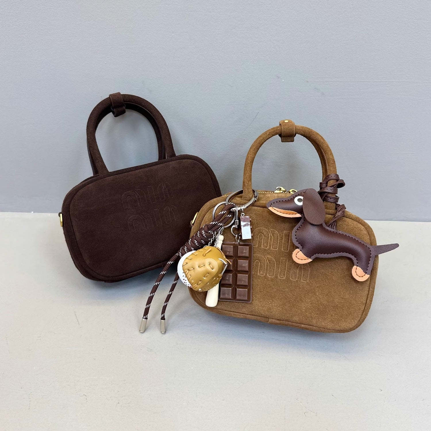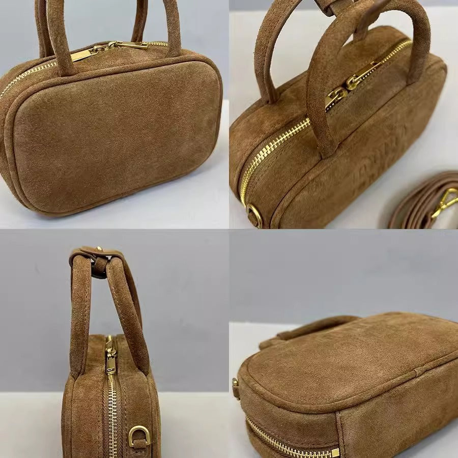 秋冬麂皮磨砂牛皮mini保龄球手提包真皮小方包手机包单肩斜挎包女