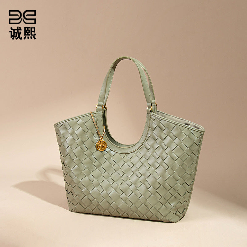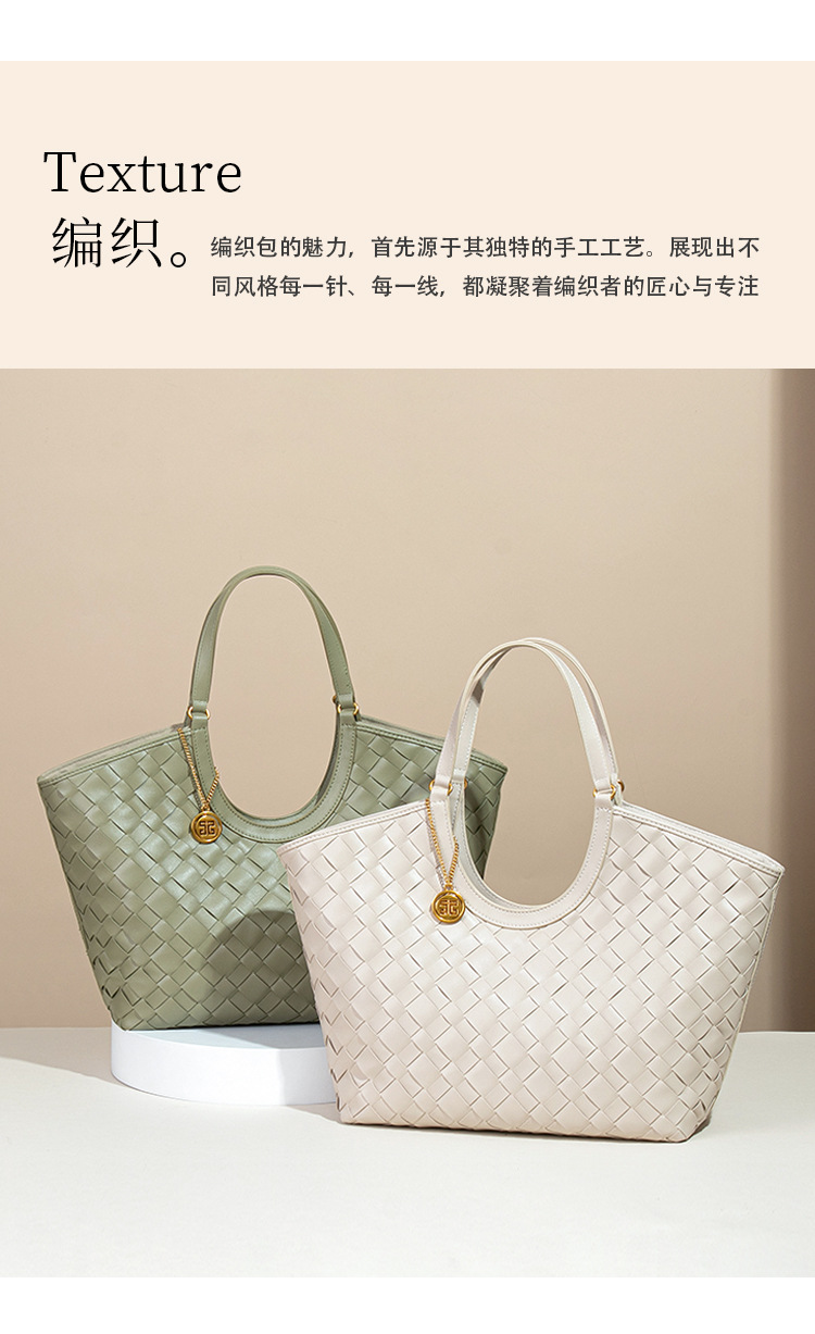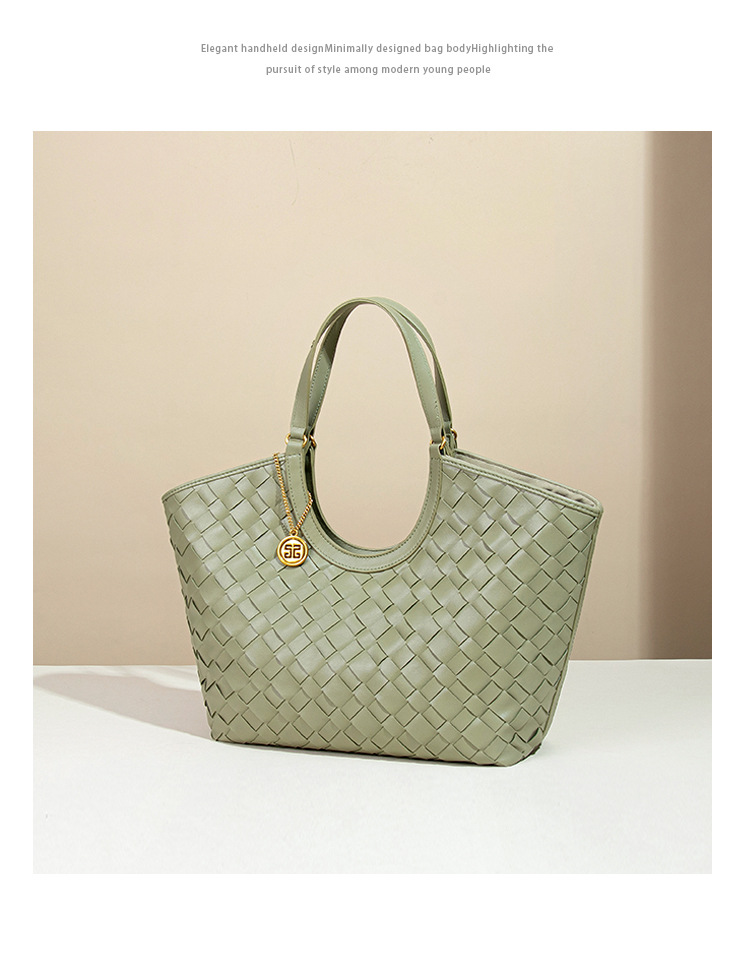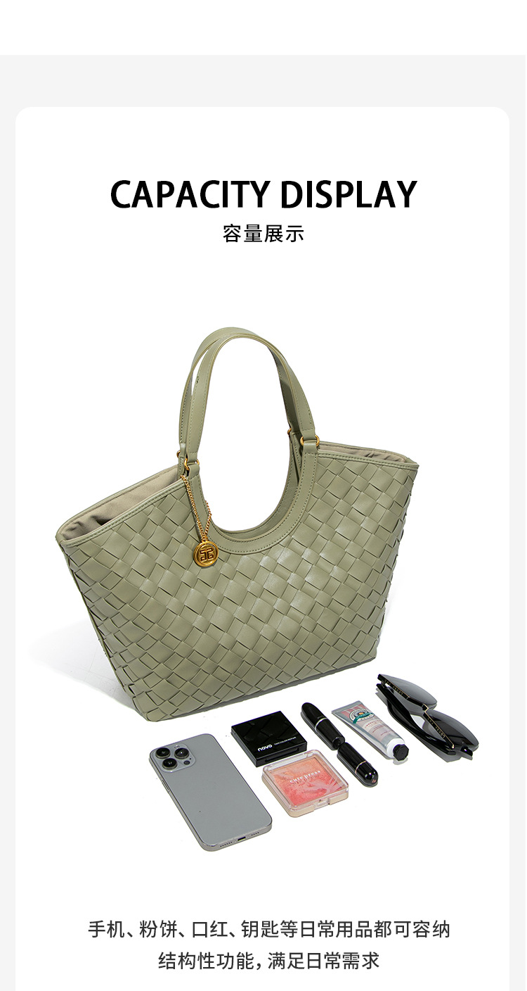 简约大容量通勤菜篮子手拎女包手工编织包休闲百搭纯色子母托特包