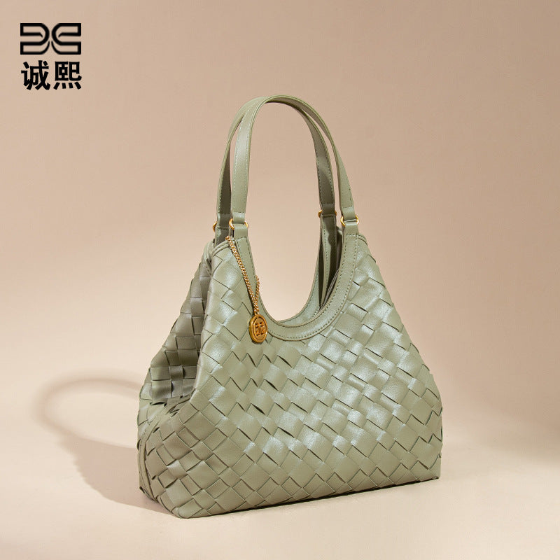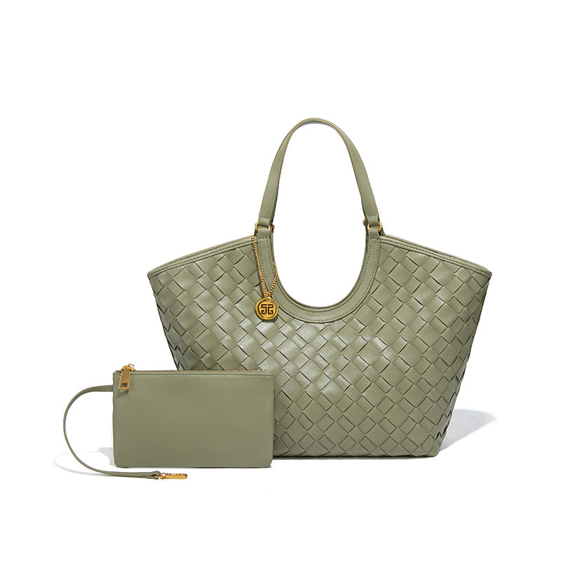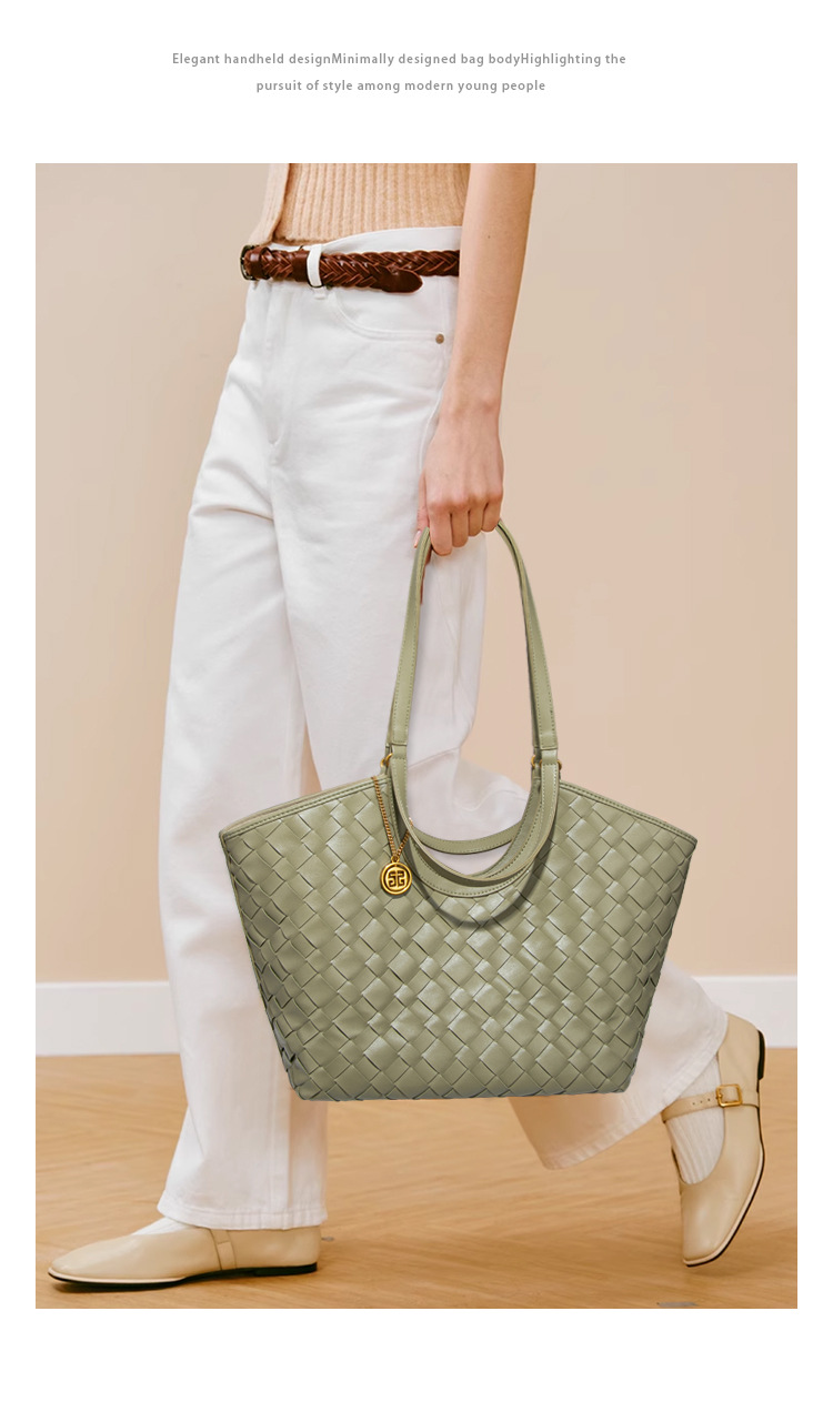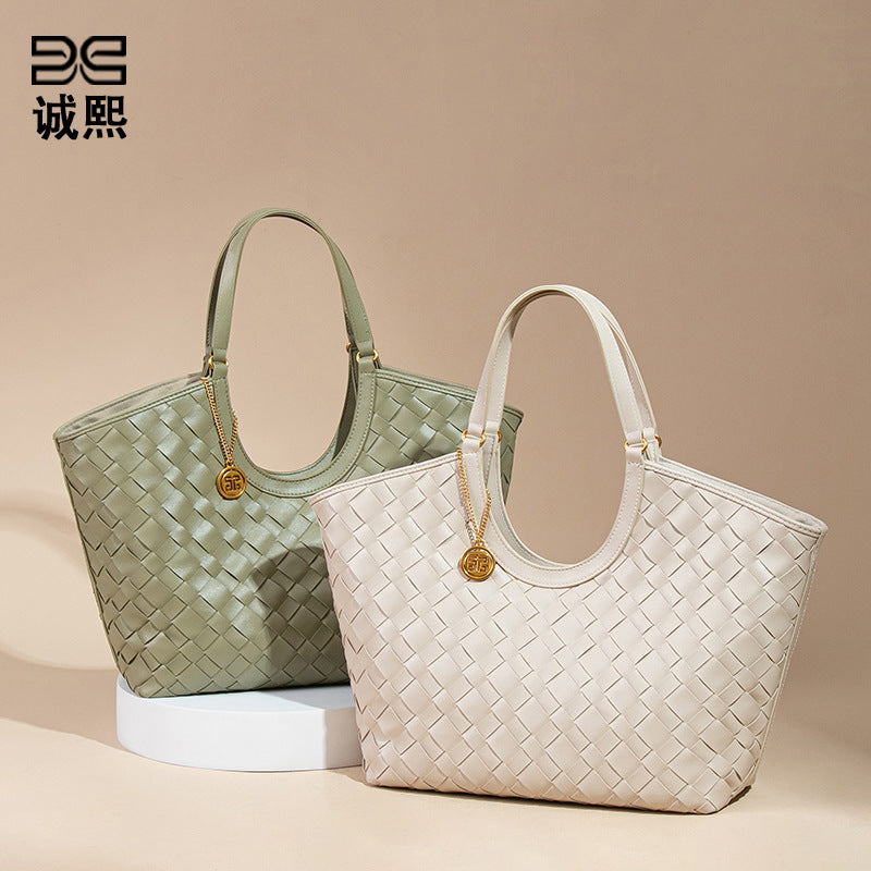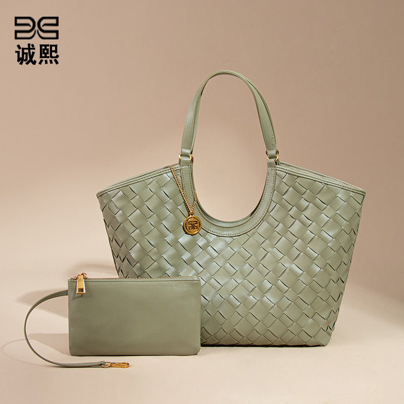 简约大容量通勤菜篮子手拎女包手工编织包休闲百搭纯色子母托特包