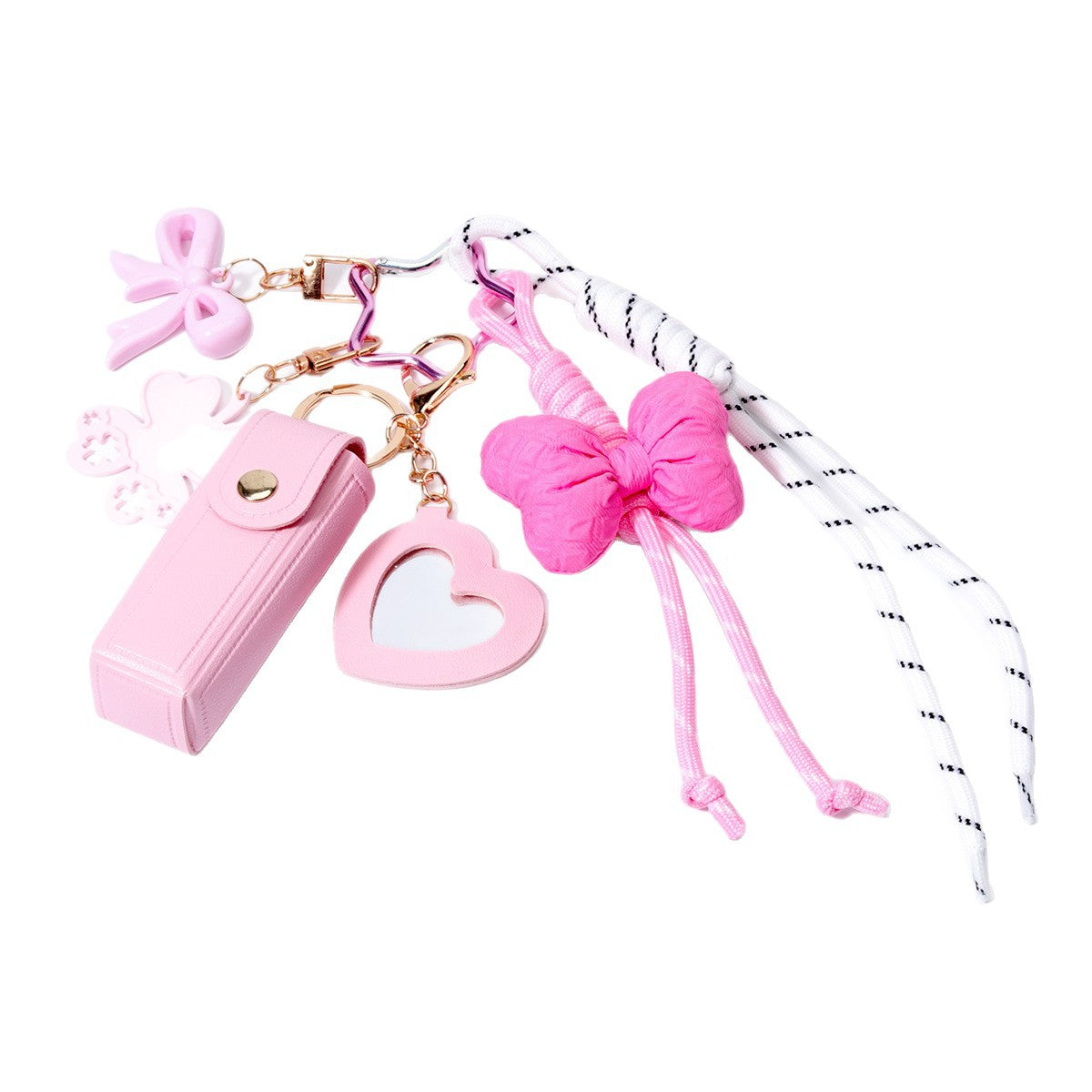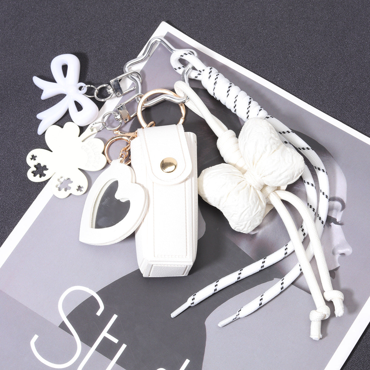粉色口红皮套亚克力蝴蝶结包挂包包挂件批发miu系包挂绳子配饰