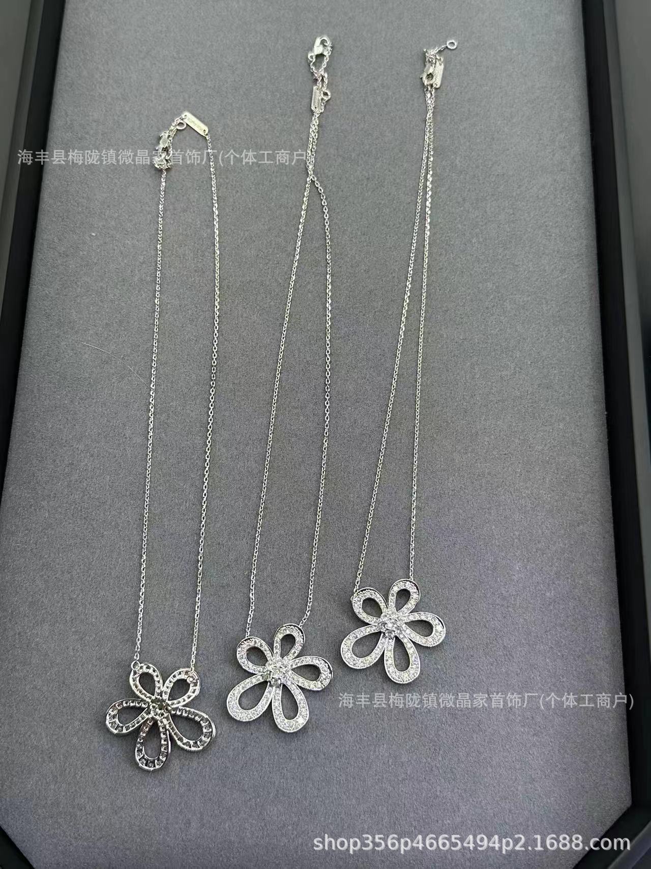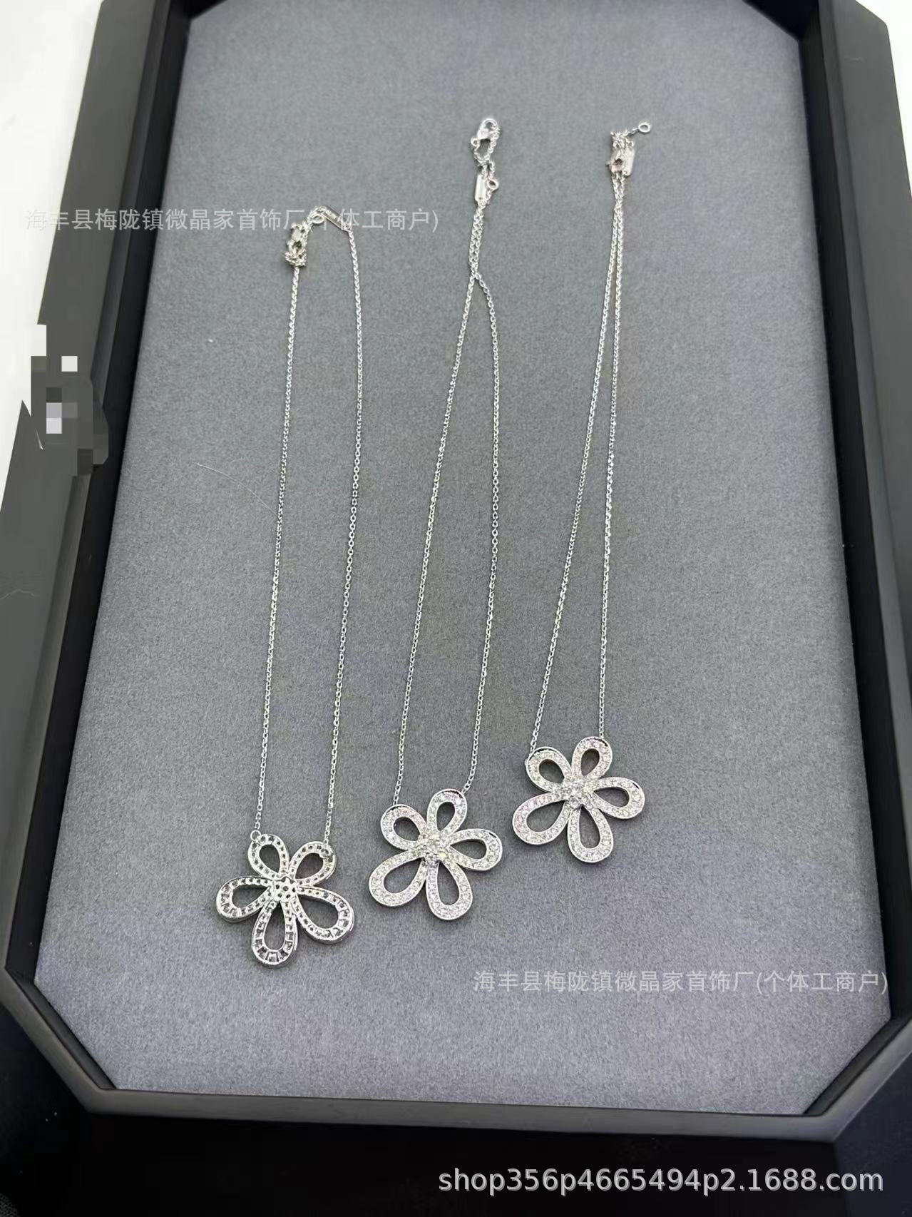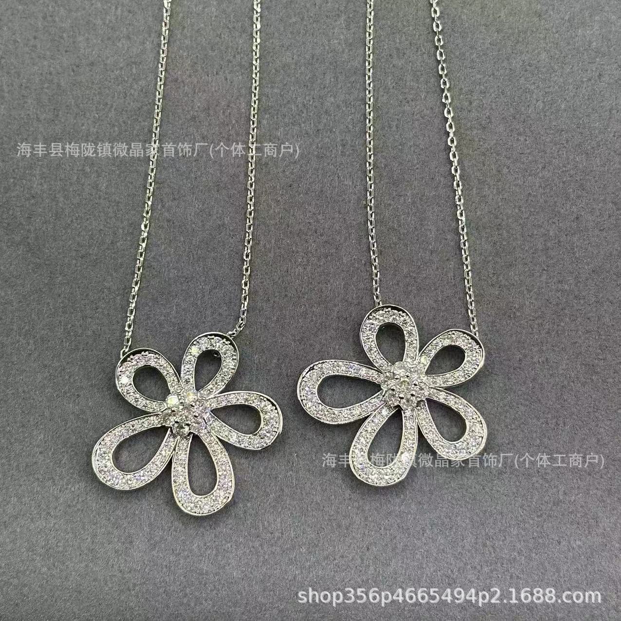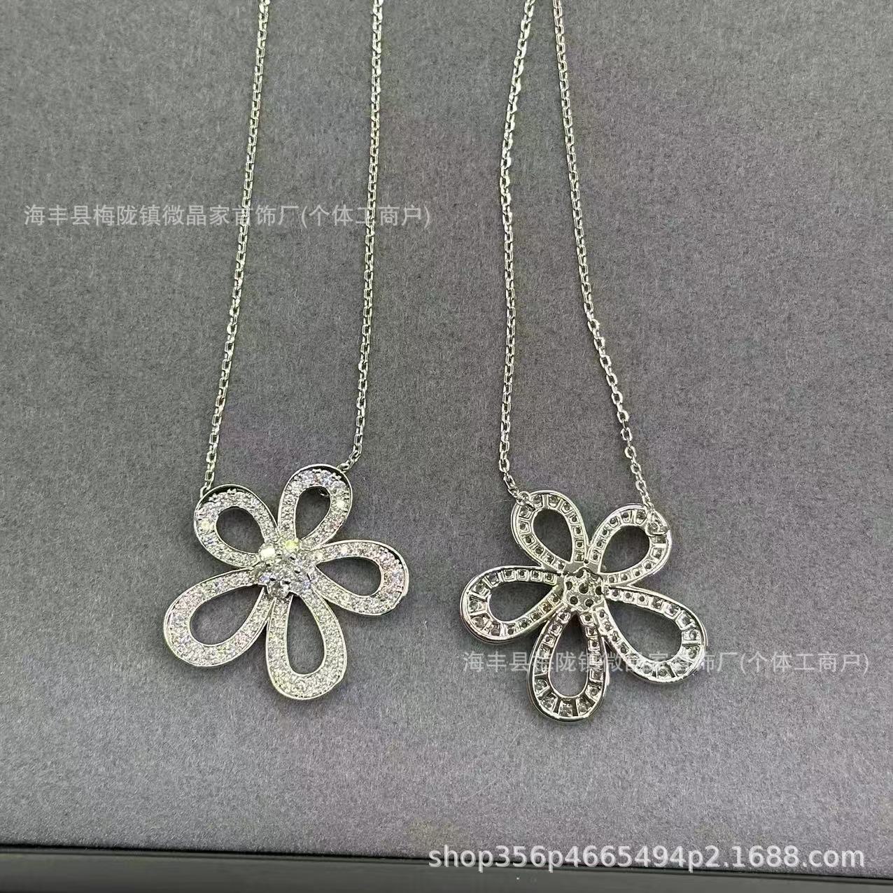 精工高版本网红太阳花满钻项链不掉色925银镀K金大花项链厂家直销