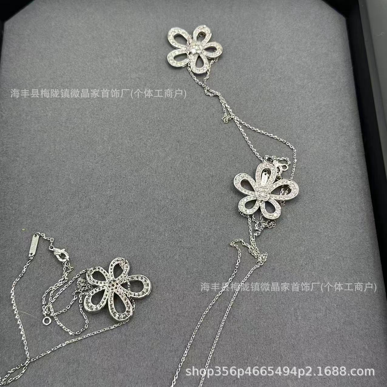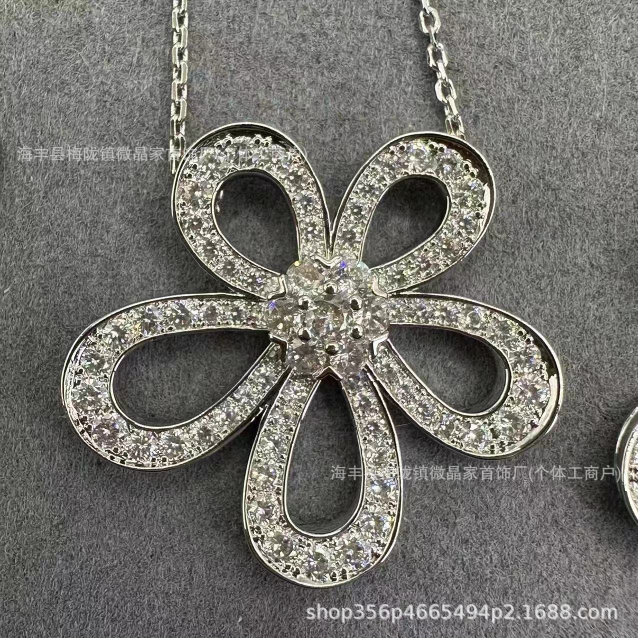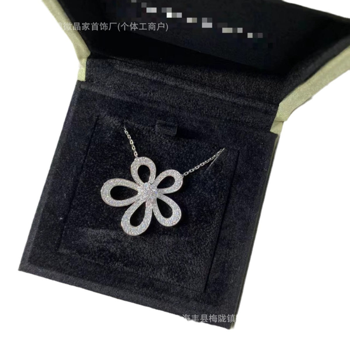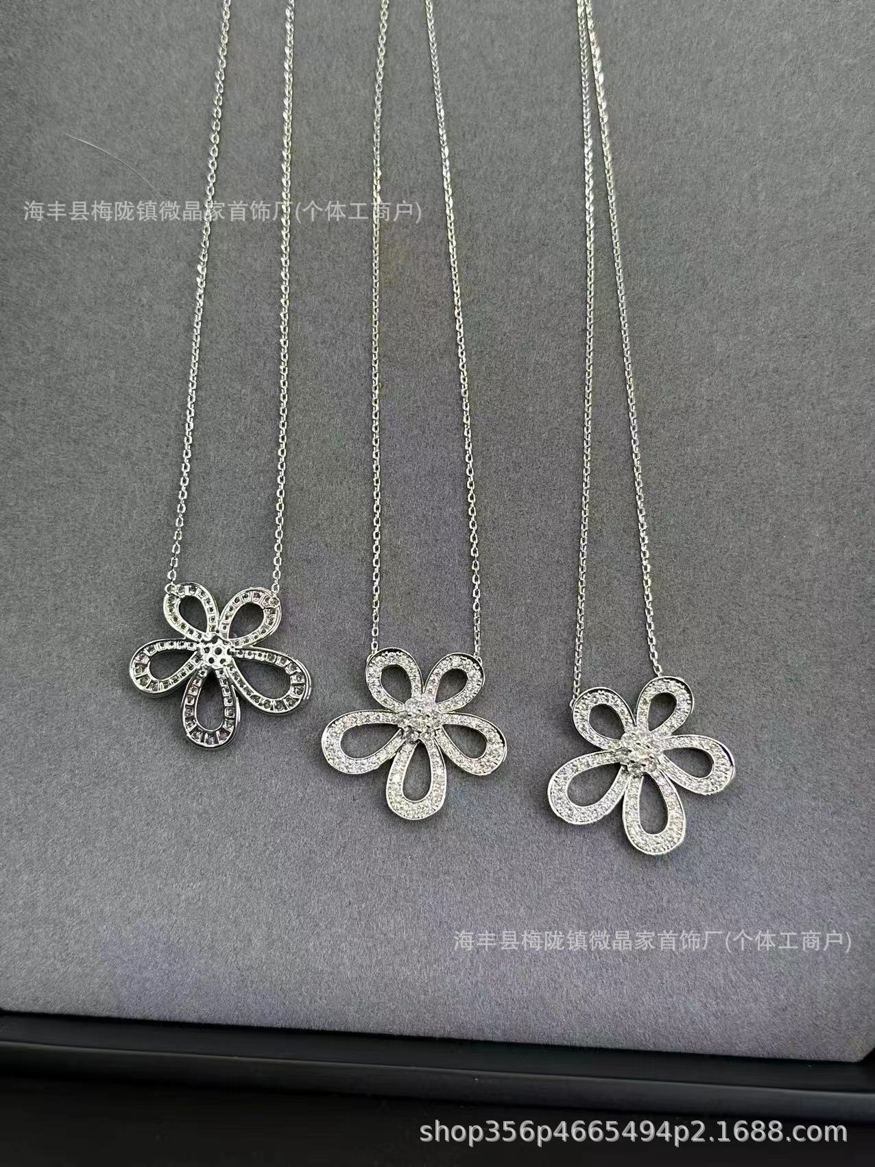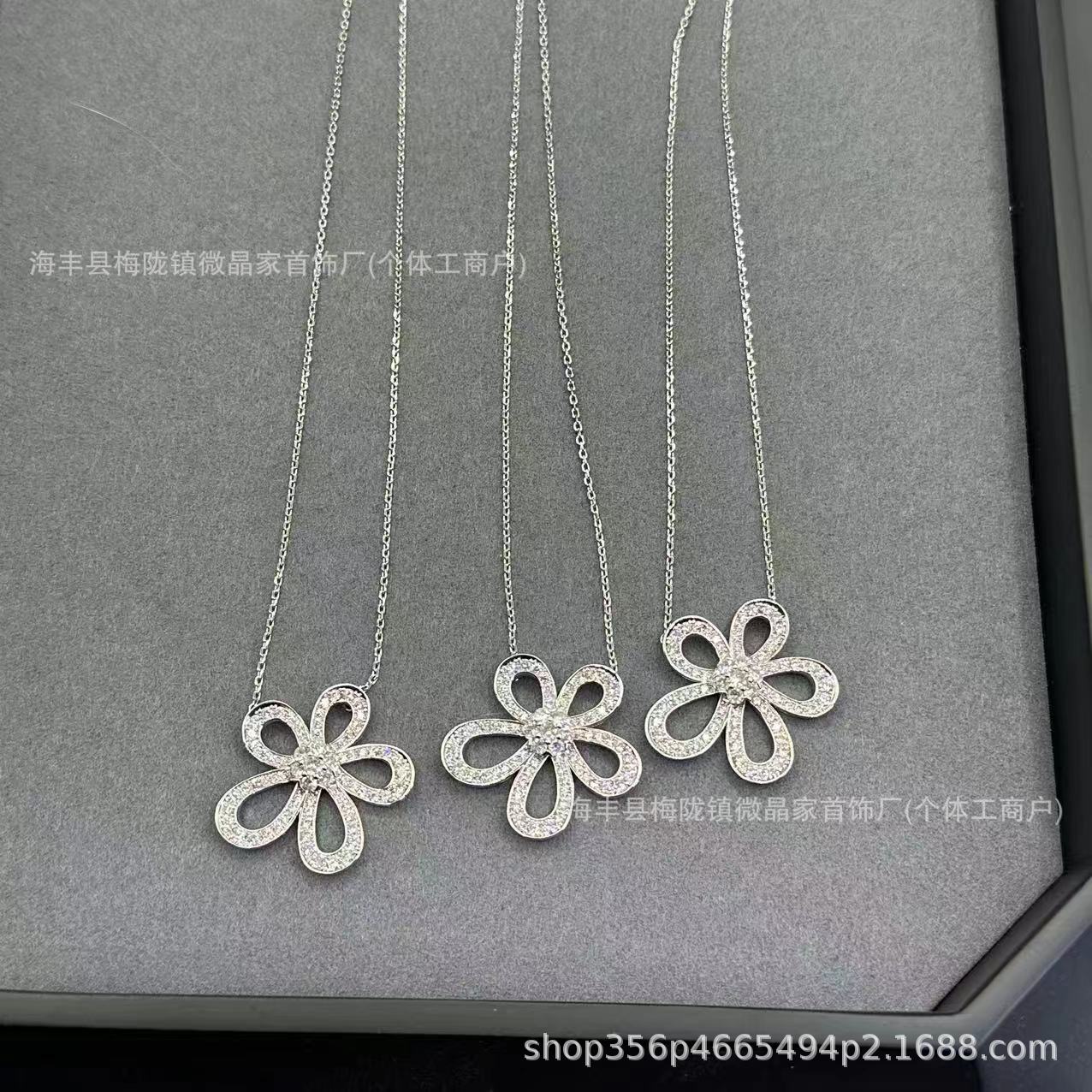 精工高版本网红太阳花满钻项链不掉色925银镀K金大花项链厂家直销