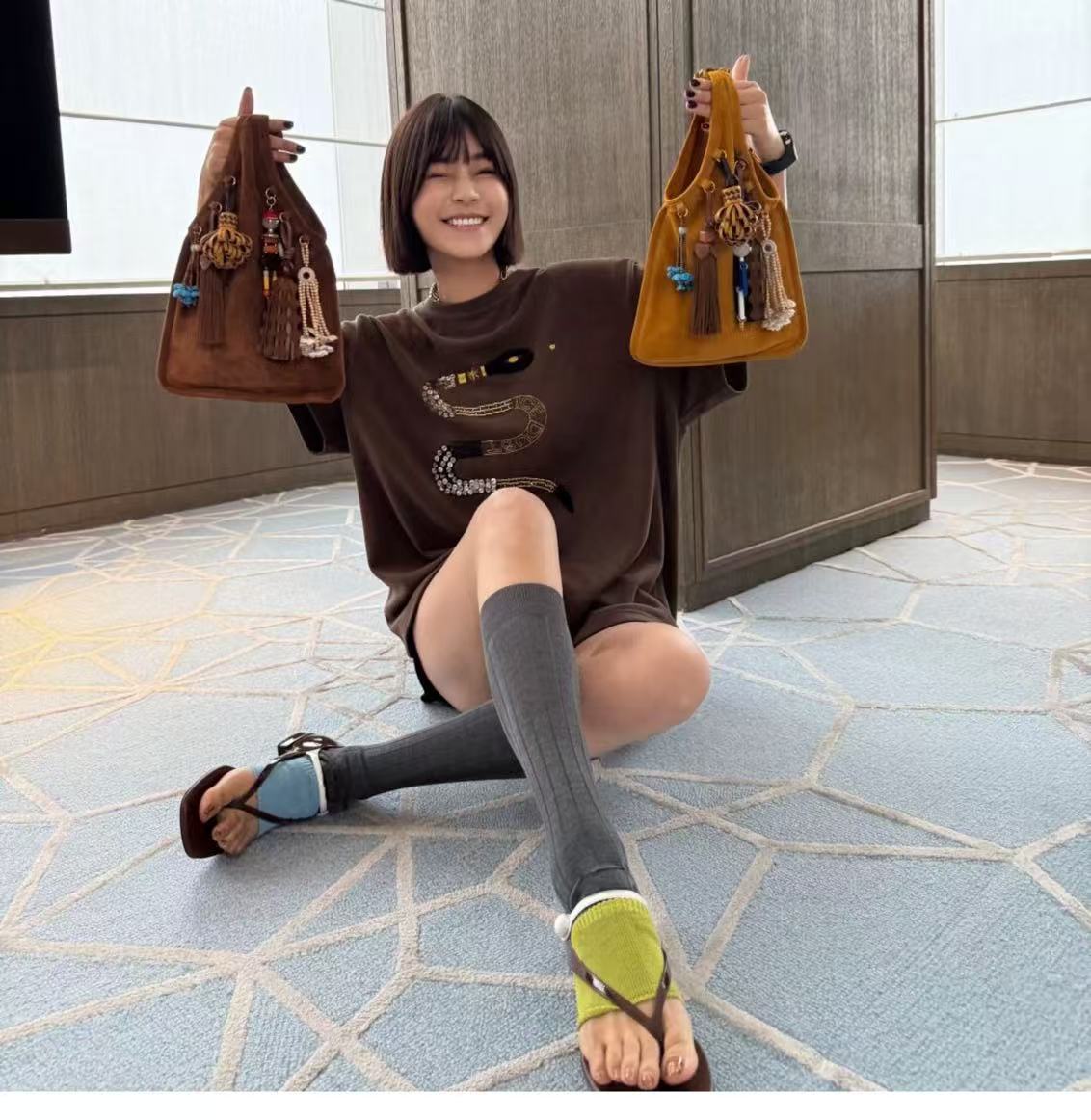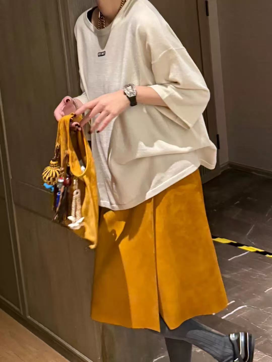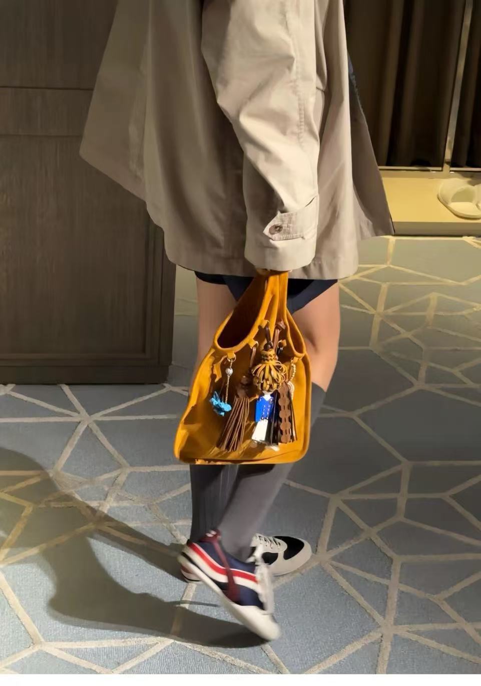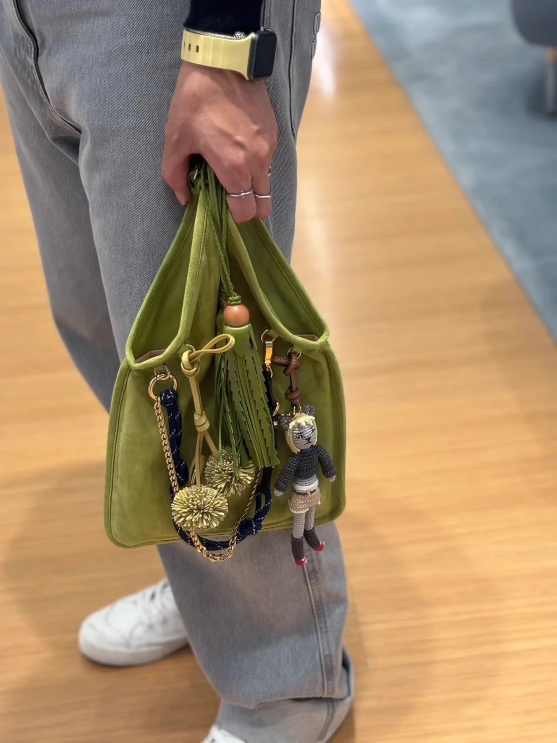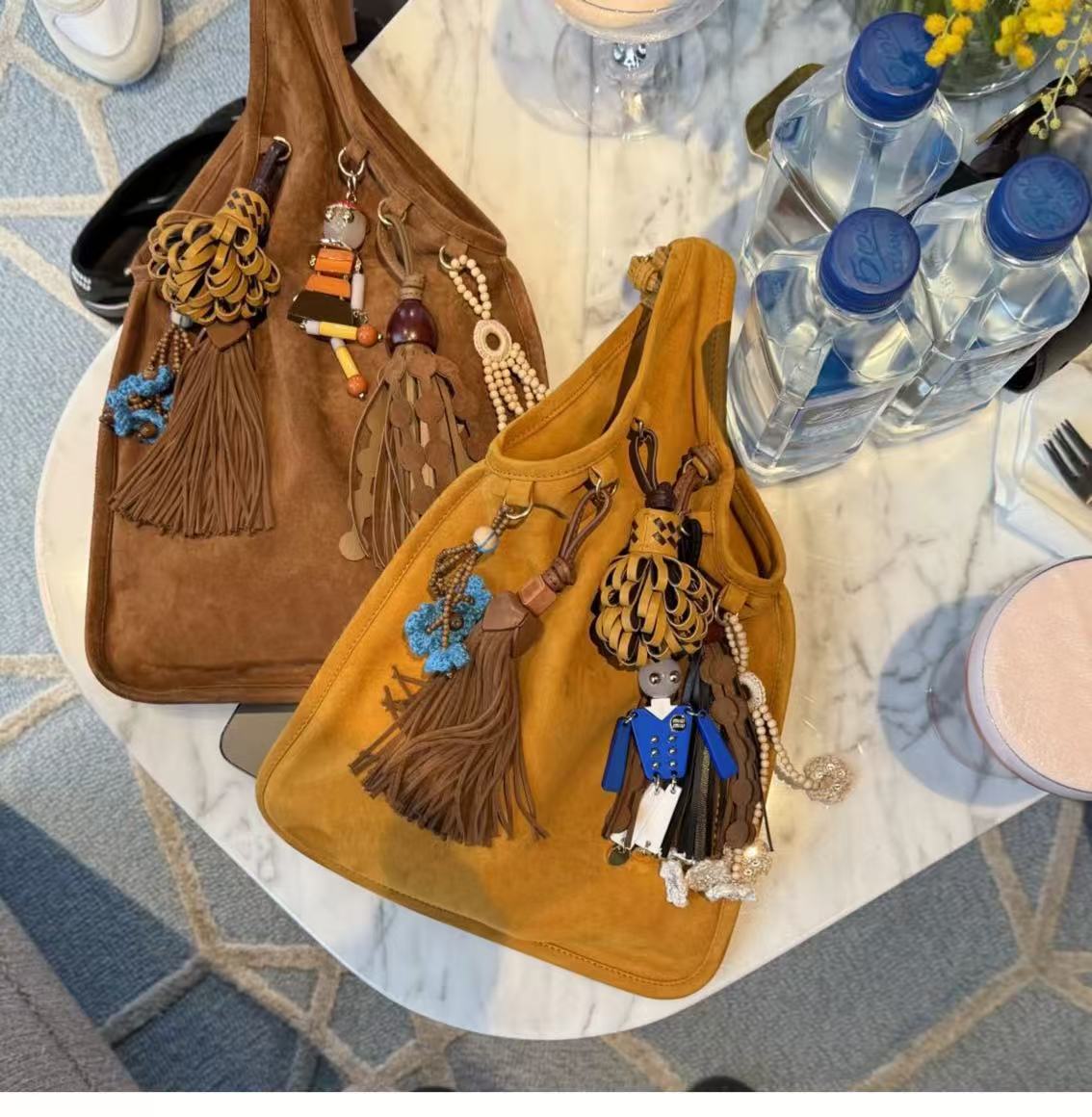 繆家2025新款麂皮流苏腋下包翻毛真皮复古手提包女玩偶挂件手拎包