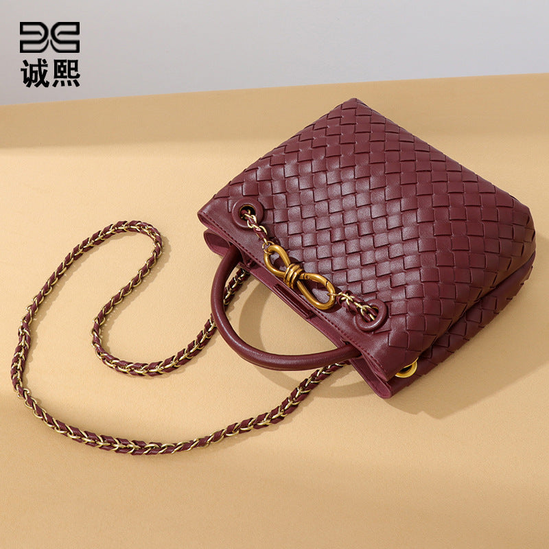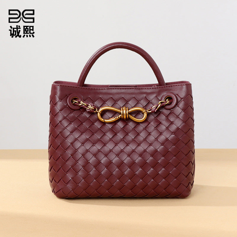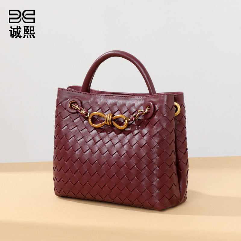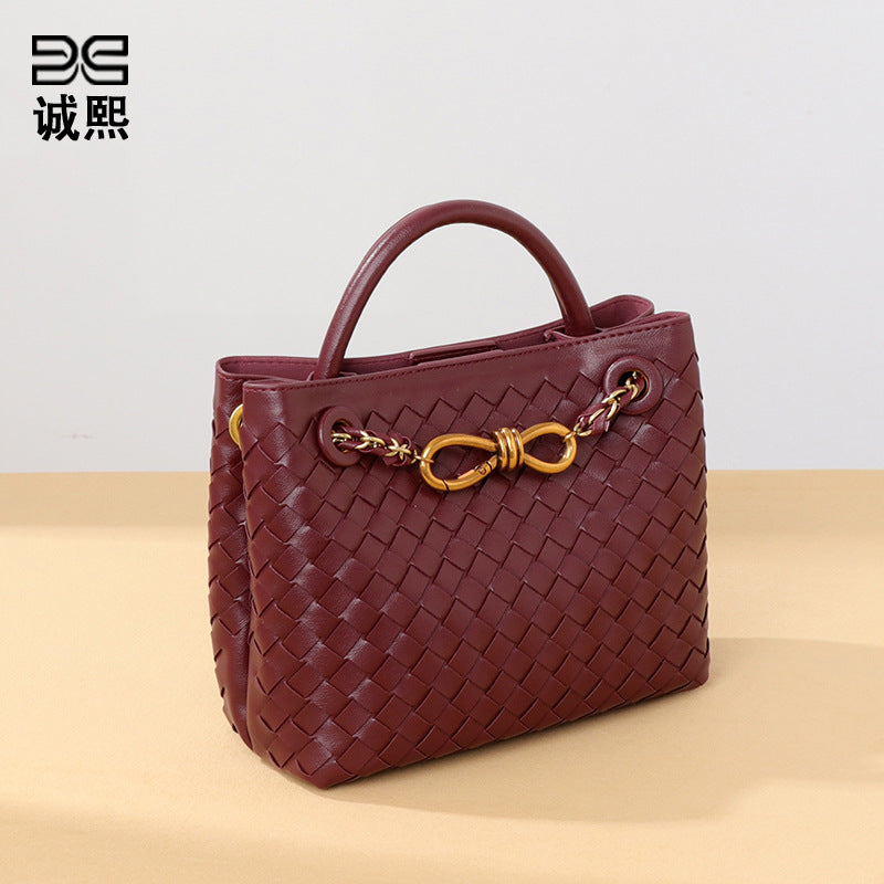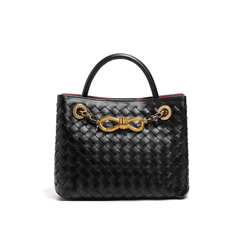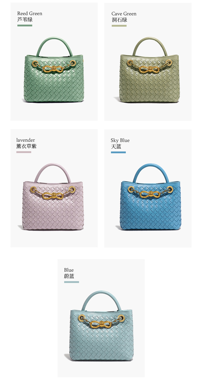 纯色百搭新款手工编织女包时尚通勤手提包链接单肩斜挎托特小方包