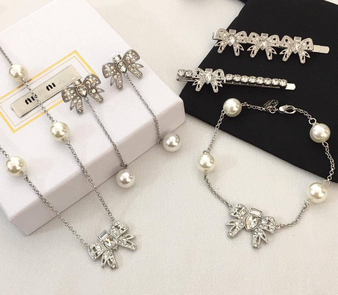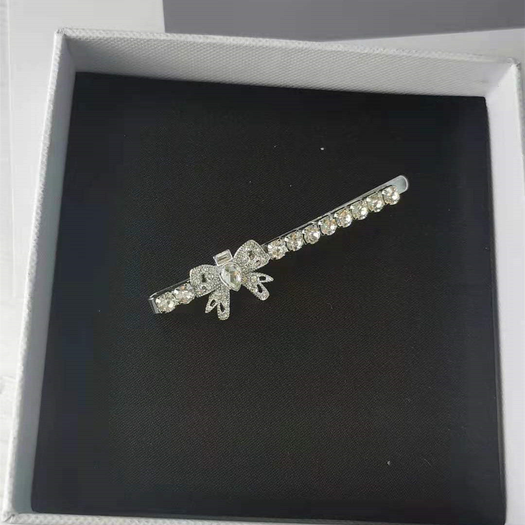 缪家新款仿水晶蝴蝶结发夹满钻甜美气质网红同款高级感一字夹