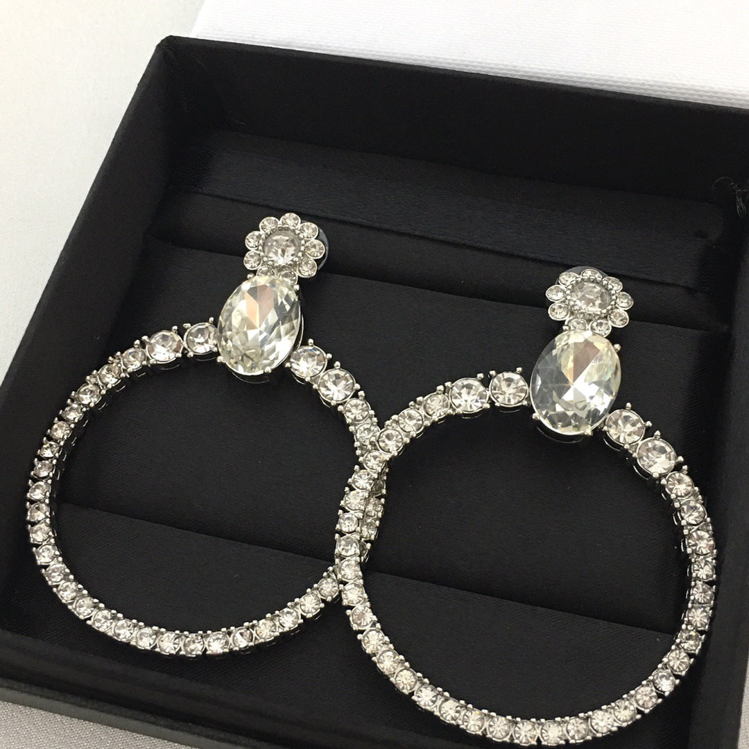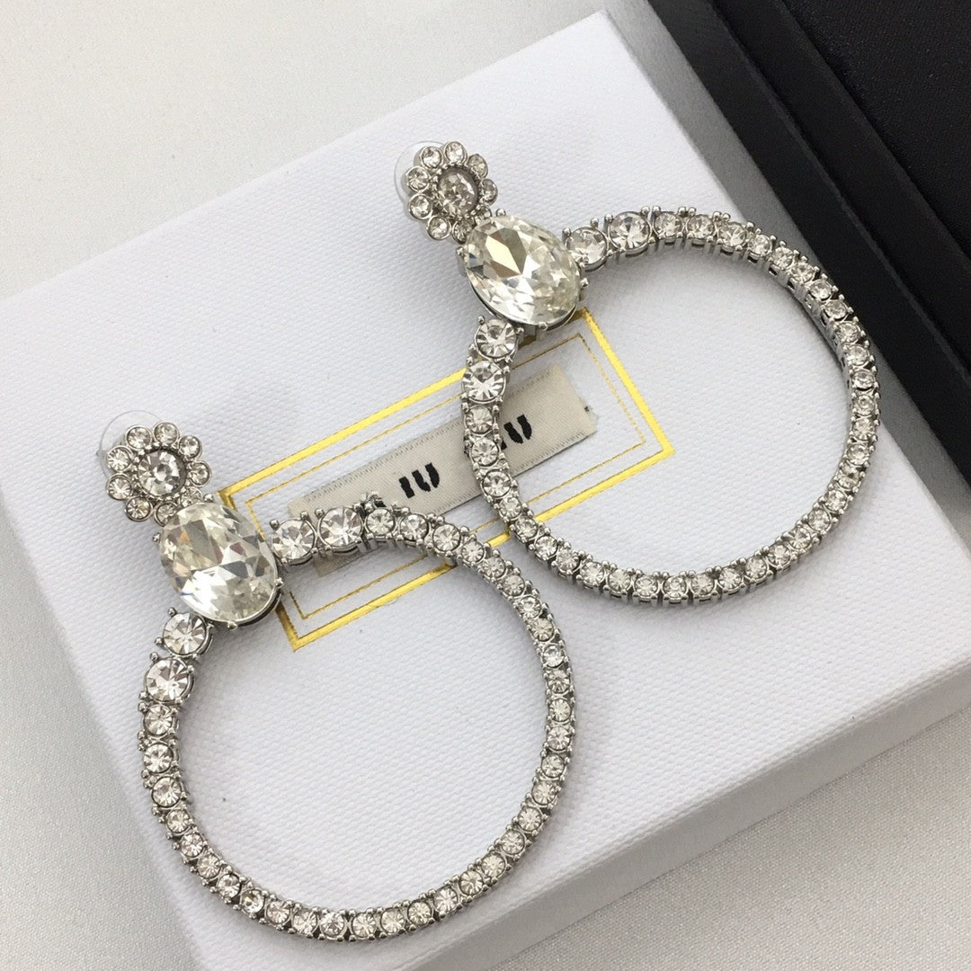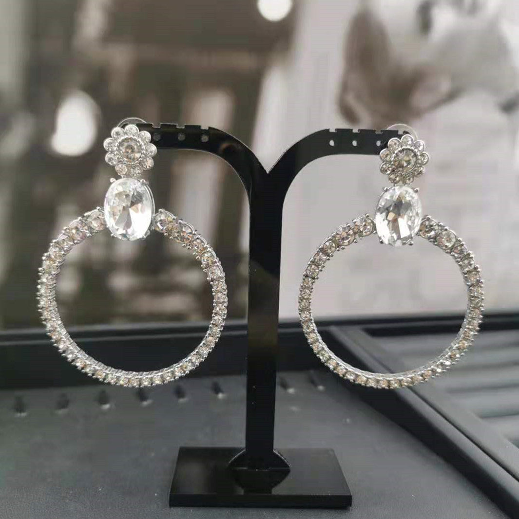 缪家新款太阳花水晶满钻大耳圈耳坠花朵水钻圆圈耳钉女时尚欧美