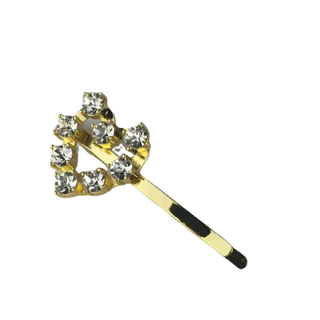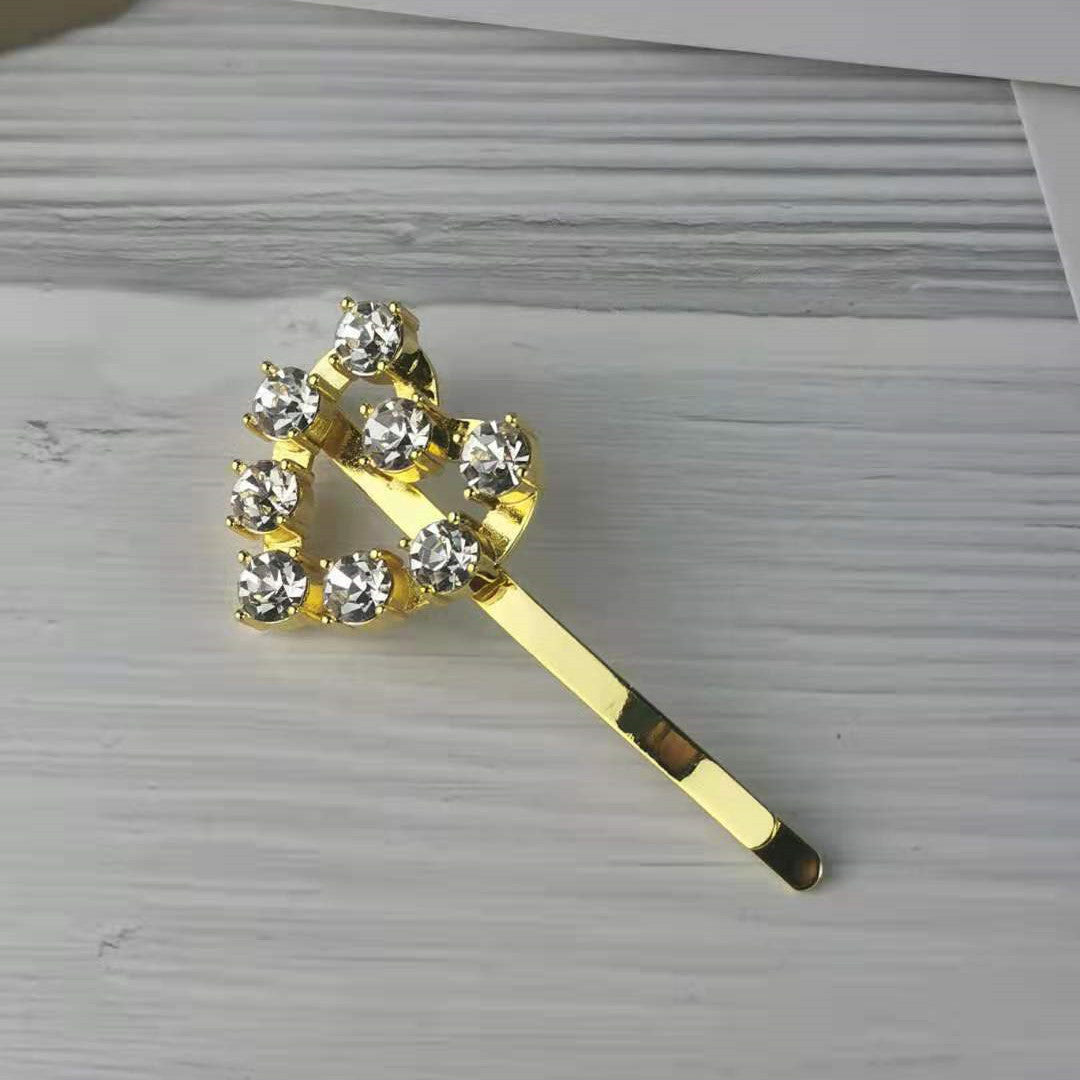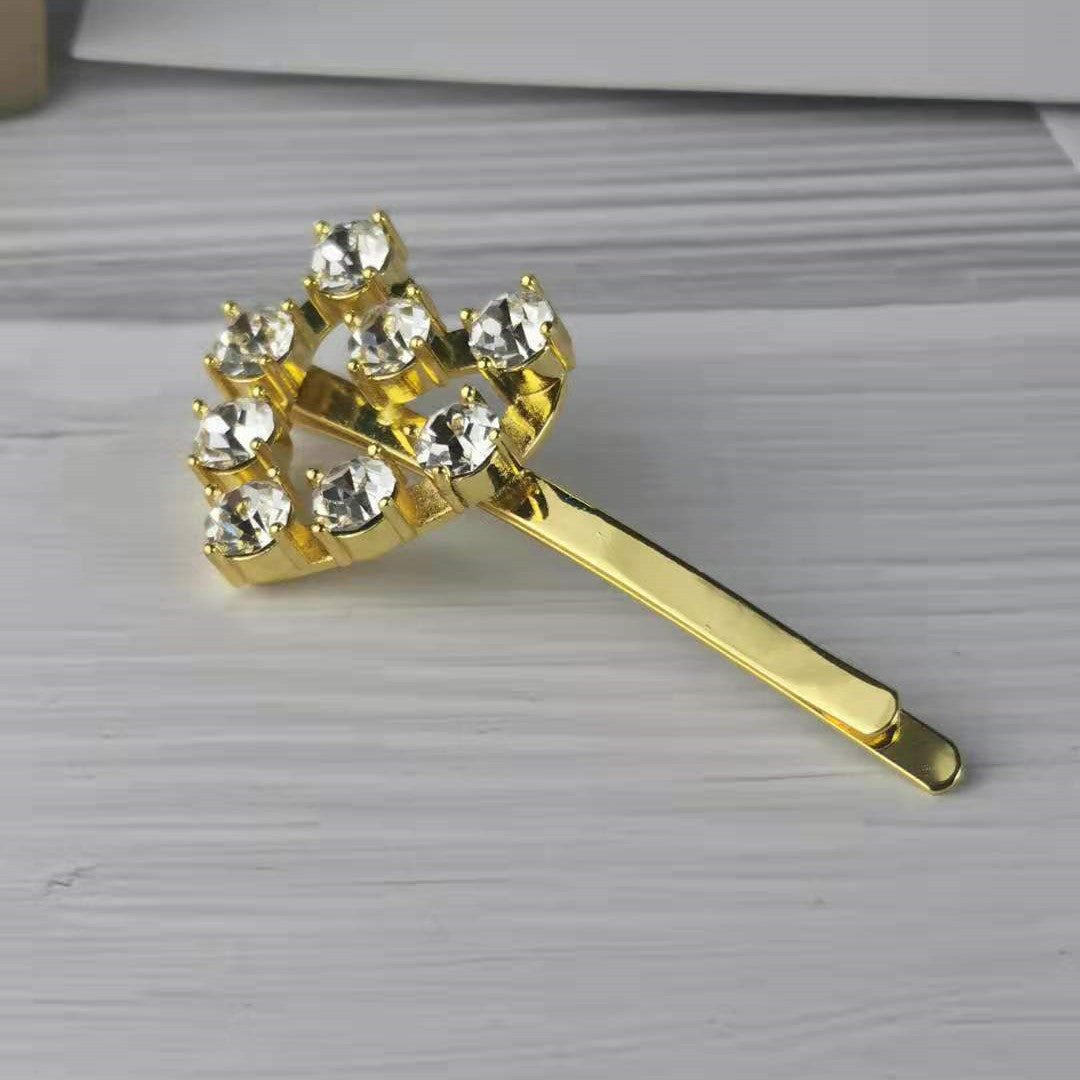 缪家新款法式爱心镶钻发夹心形一字夹时尚甜美气质弯夹镀金发饰品