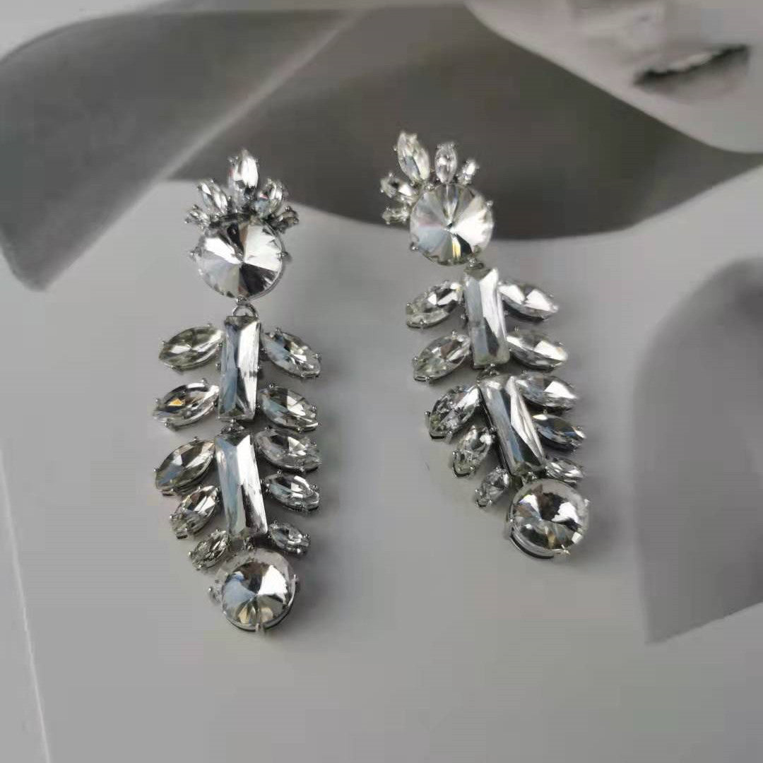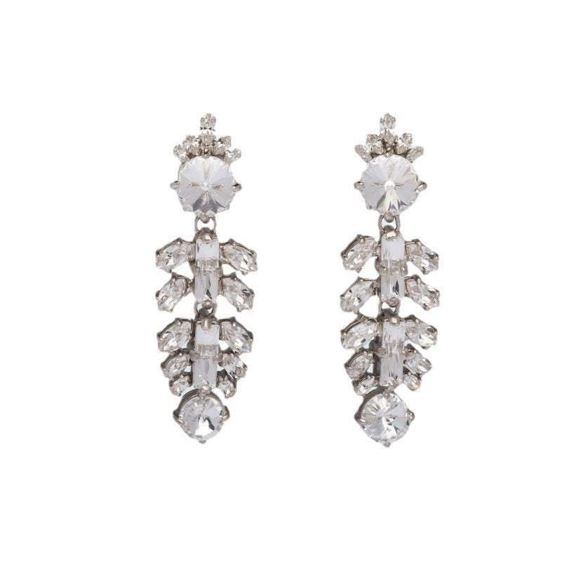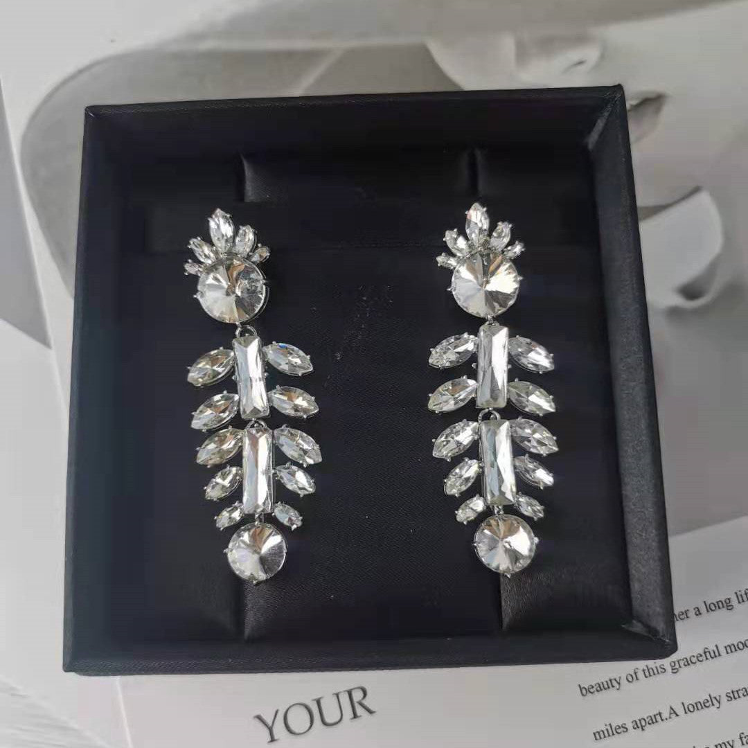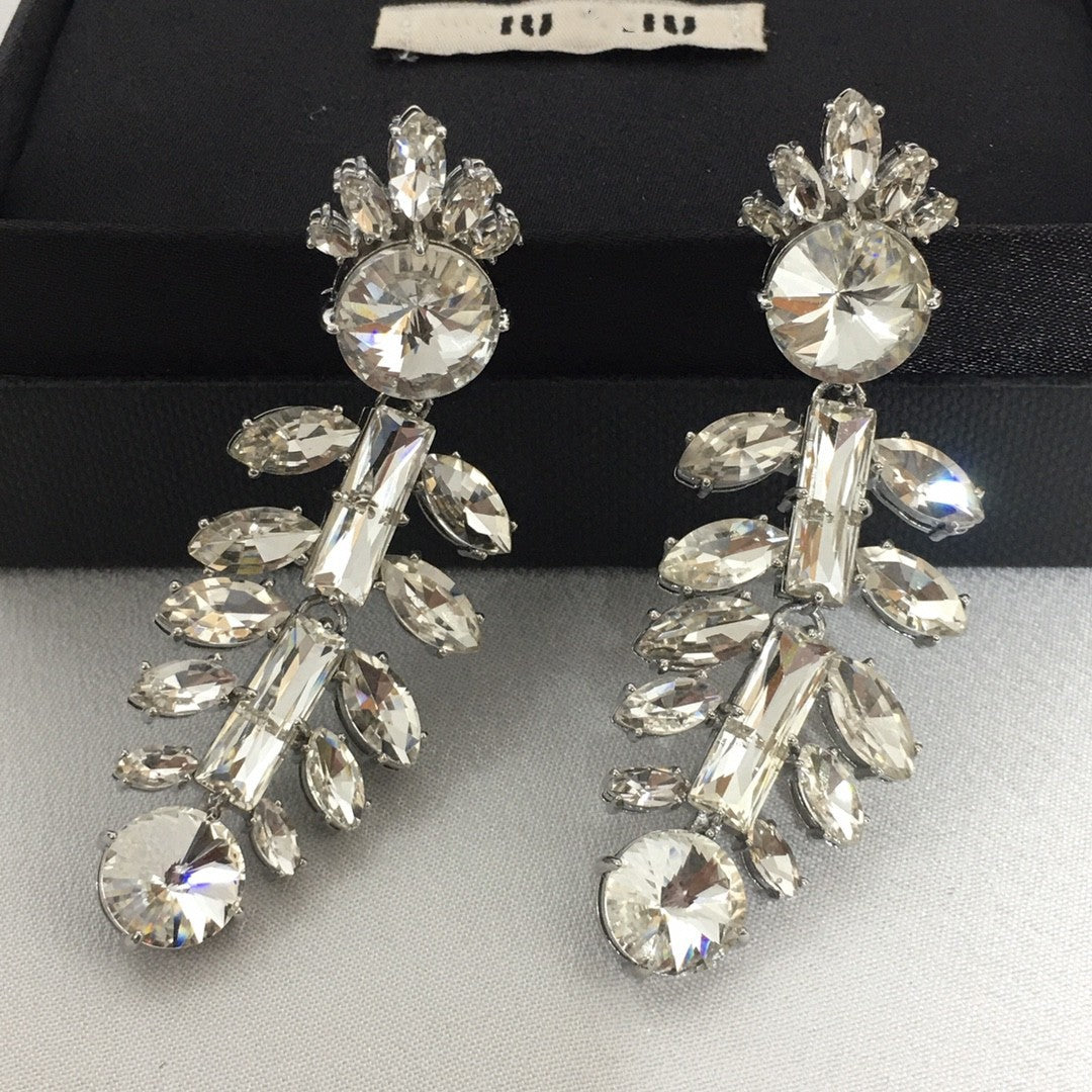 缪家新款耳环仿水晶太阳花鱼骨镶钻耳坠法式高级耳饰长款耳钉女