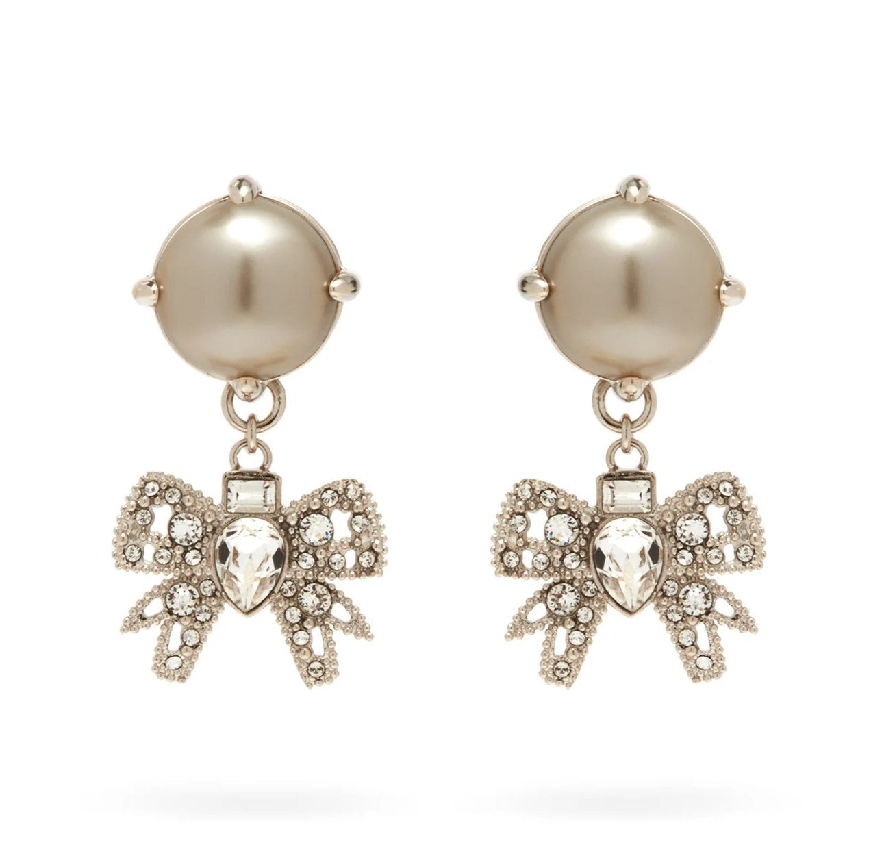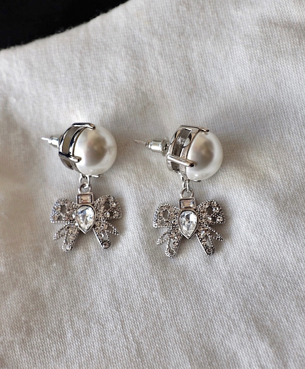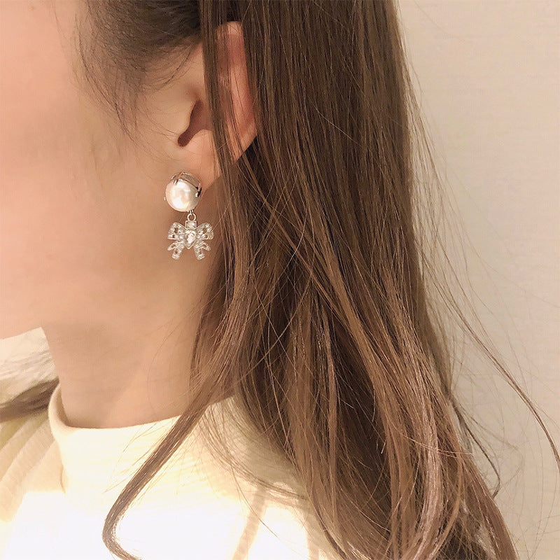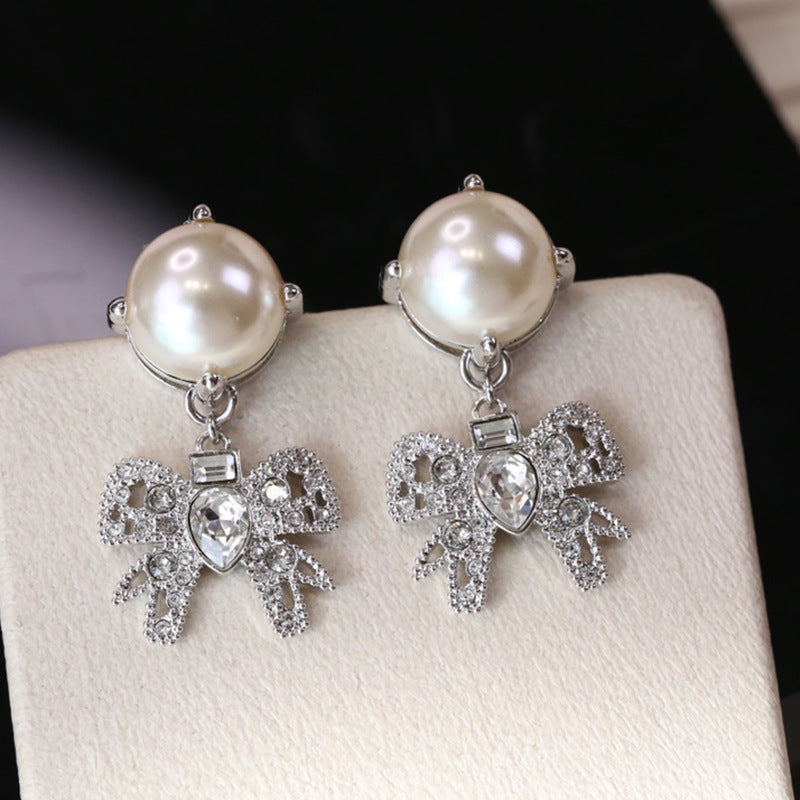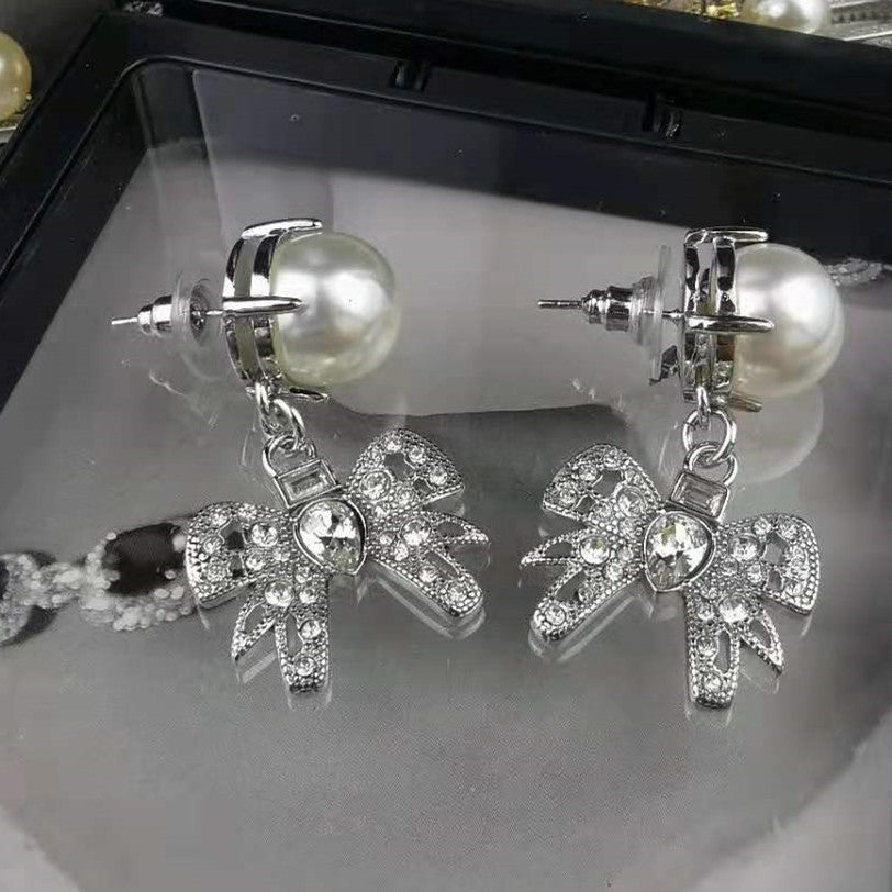 缪家新款耳环时尚甜美气质水晶耳饰品超仙ins风蝴蝶结珍珠耳钉女