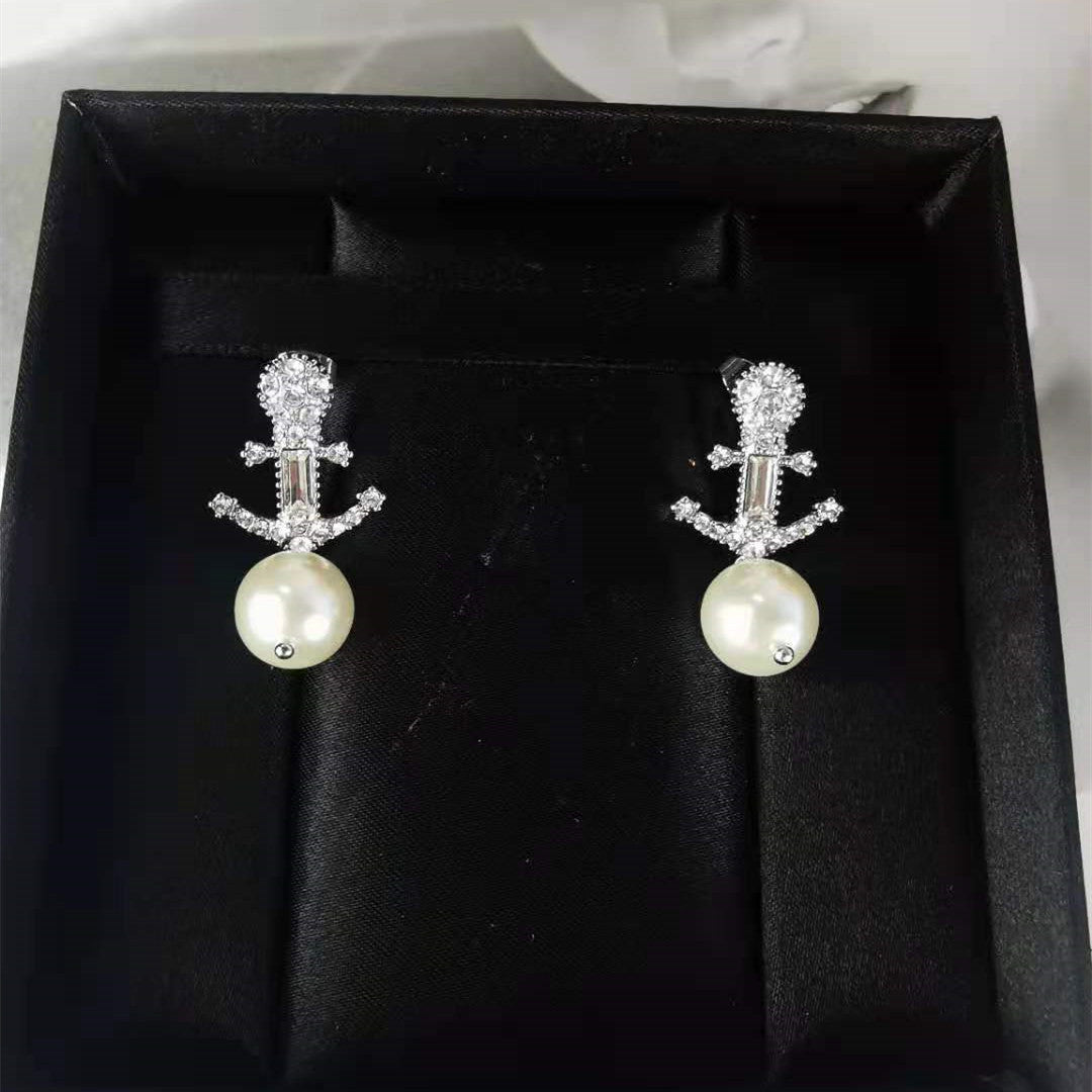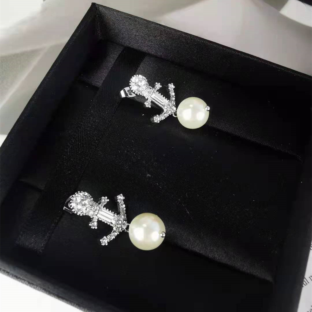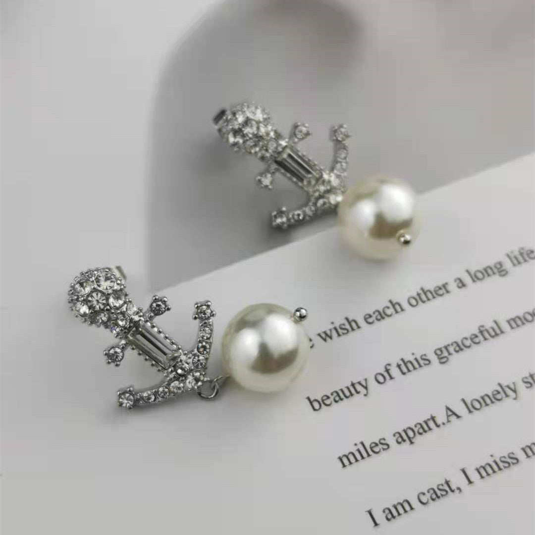 缪家新款设计感微镶珍珠锆石船锚精致耳环耳钉高级感个性气质耳环