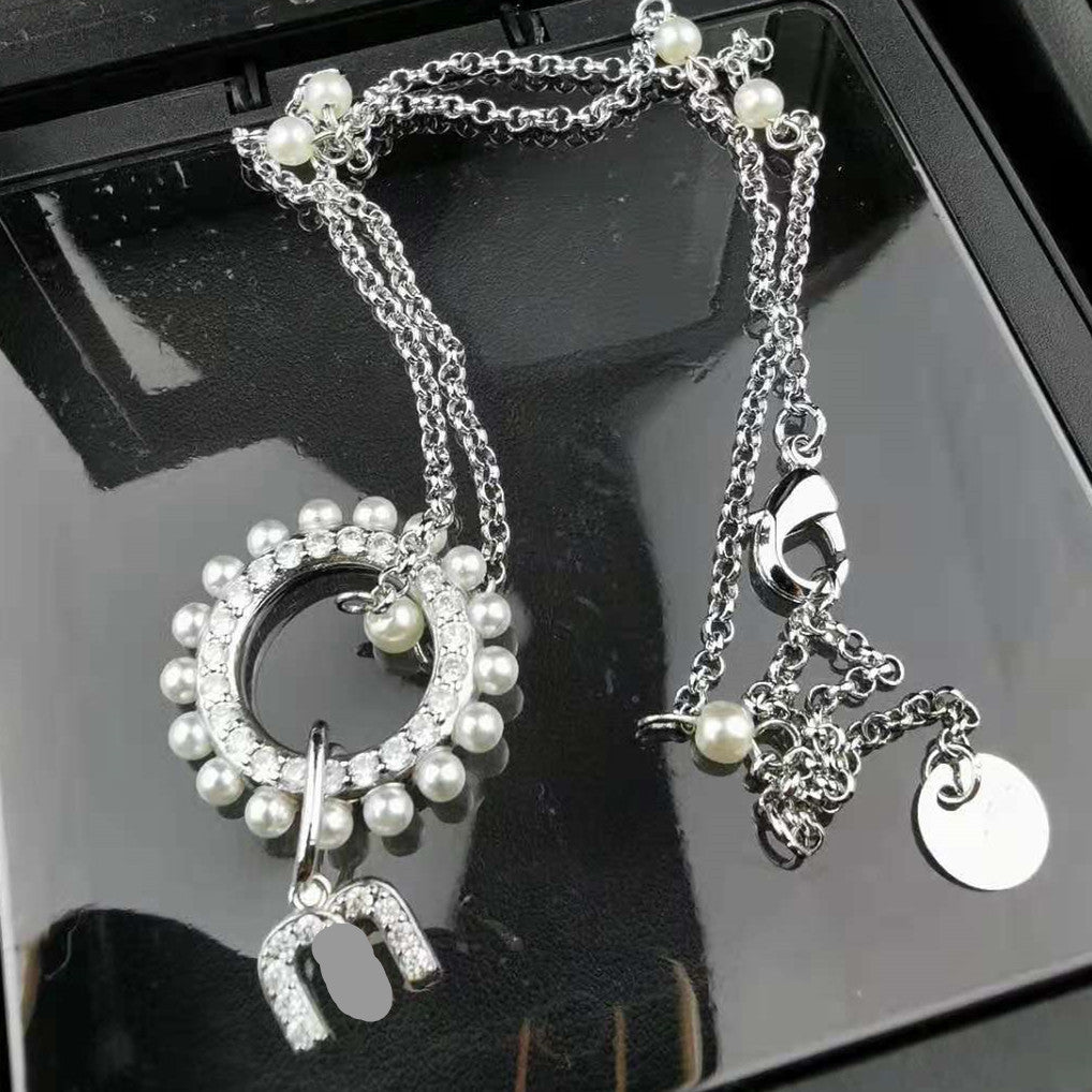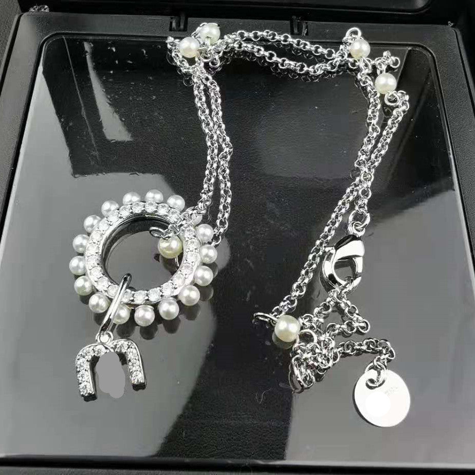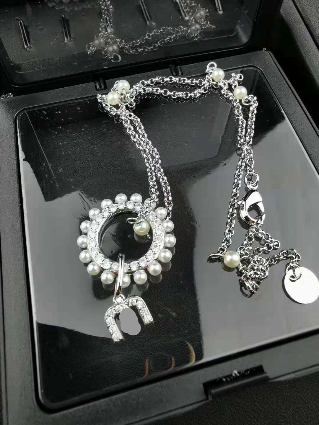 缪家新款锁骨链镶钻m字母吊坠满钻甜美时尚M字母珍珠项链女