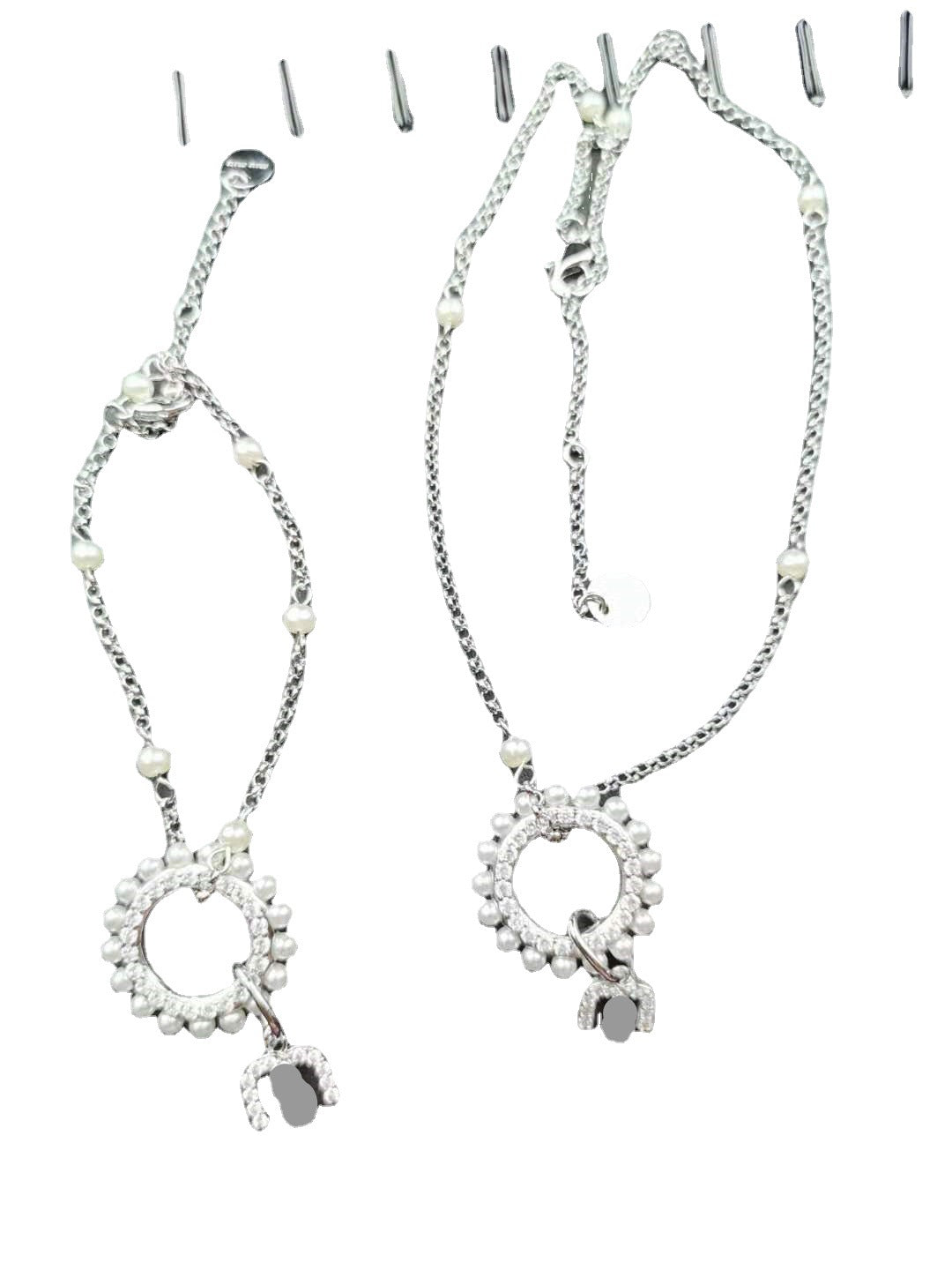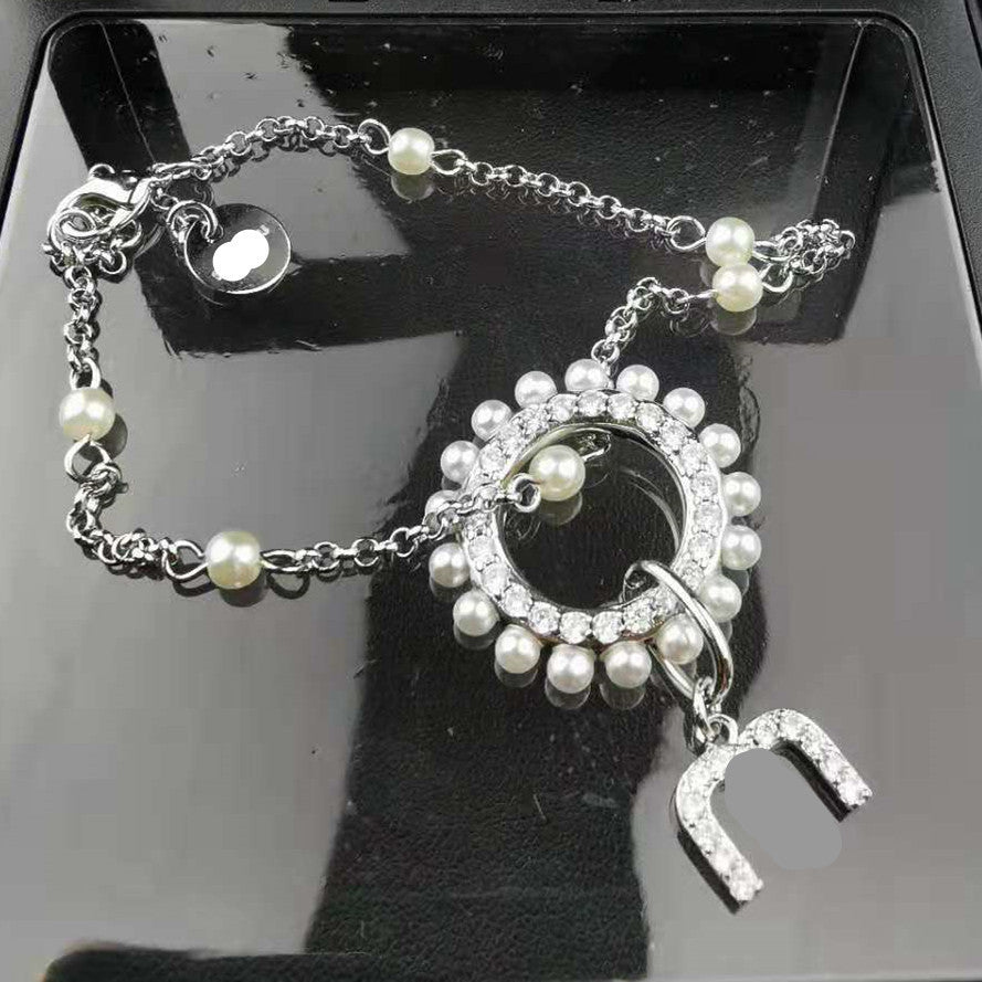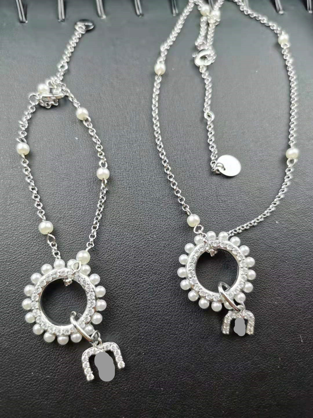 缪家新款锁骨链镶钻m字母吊坠满钻甜美时尚M字母珍珠项链女