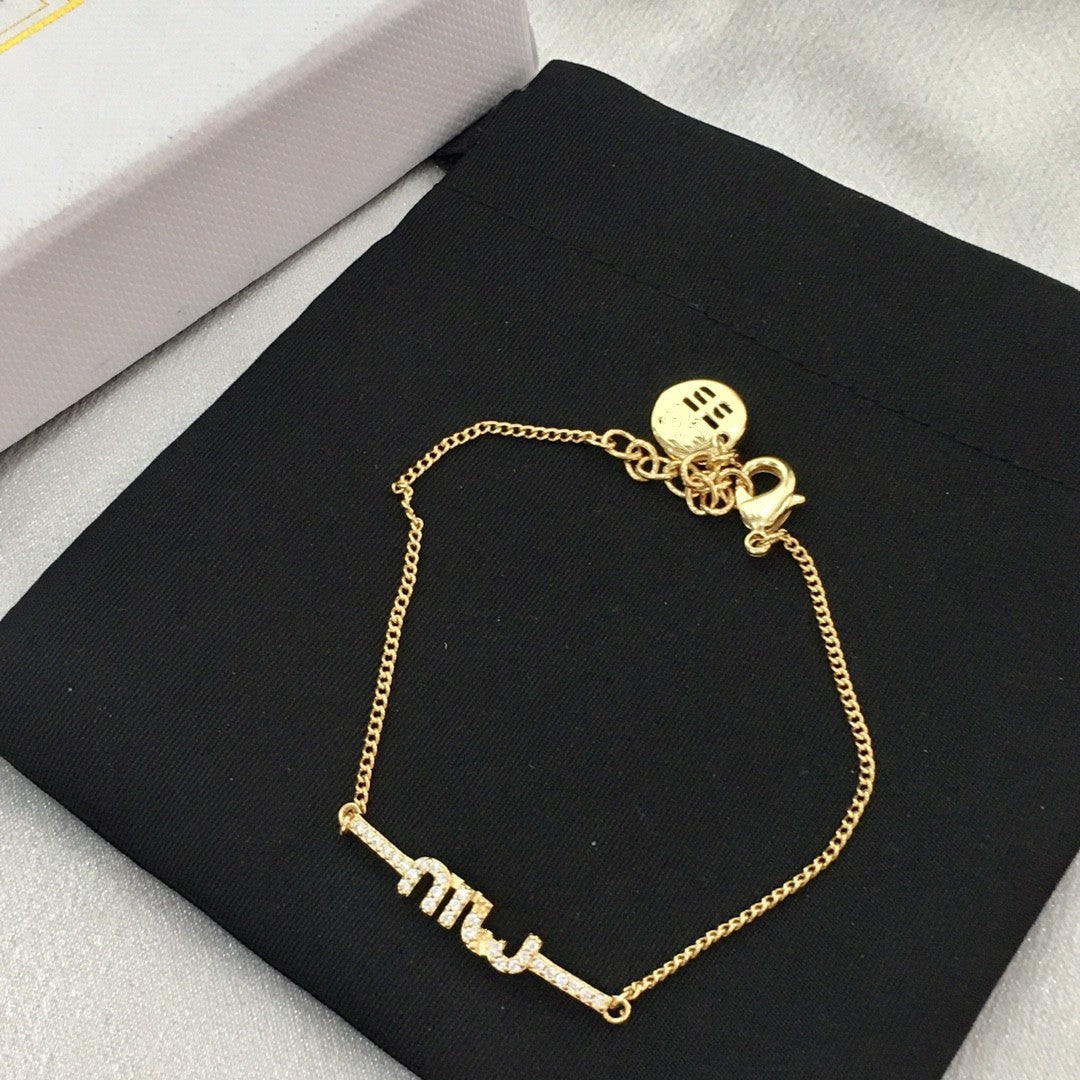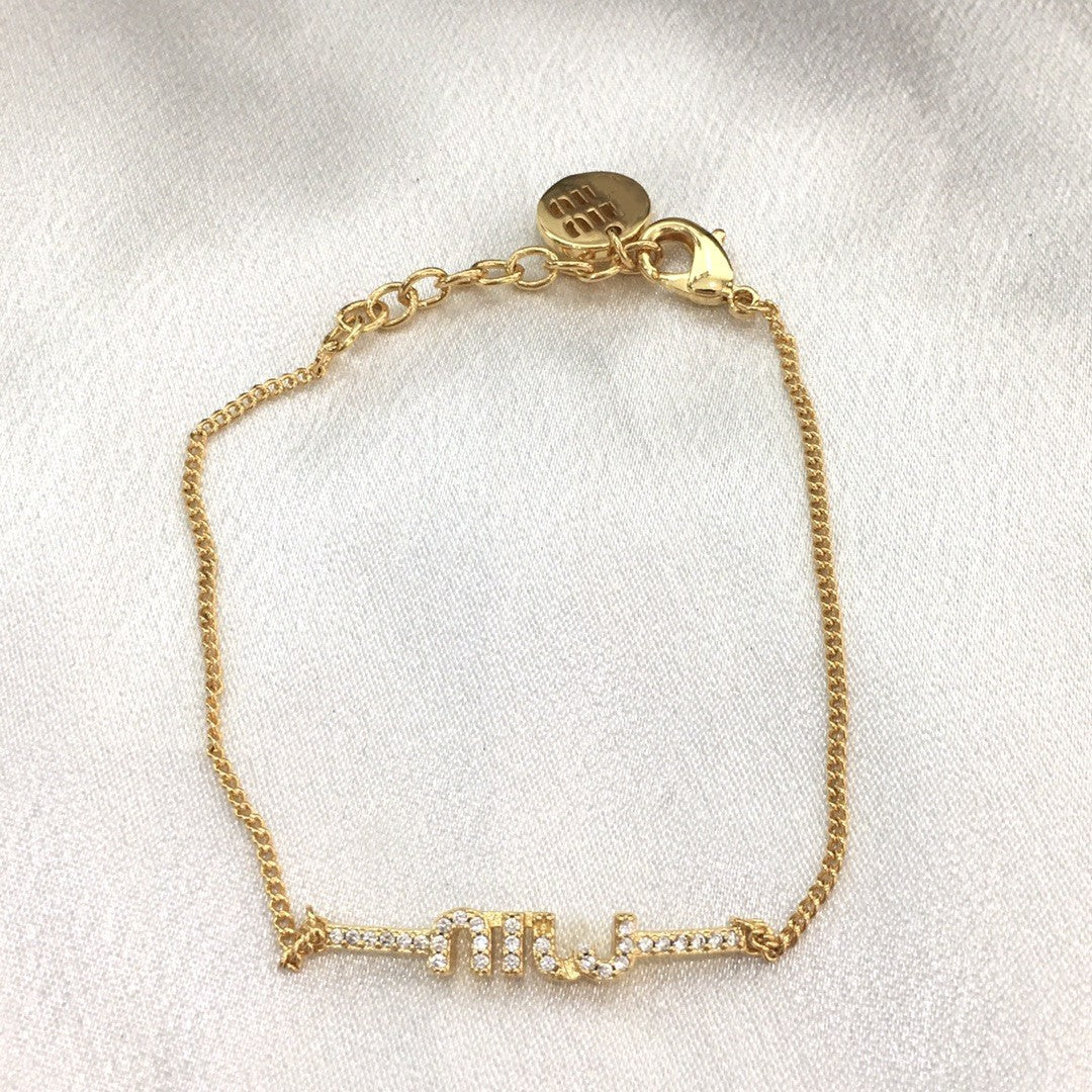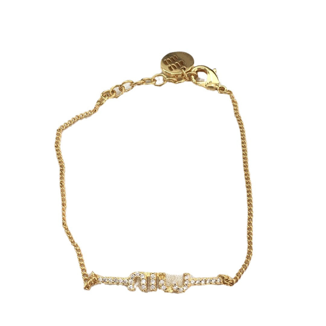 缪家新款MIU字母手链女黄铜镀金镶钻时尚轻奢风高级感满钻手环