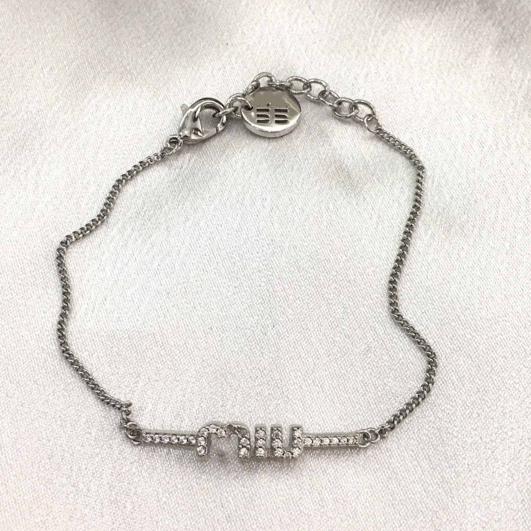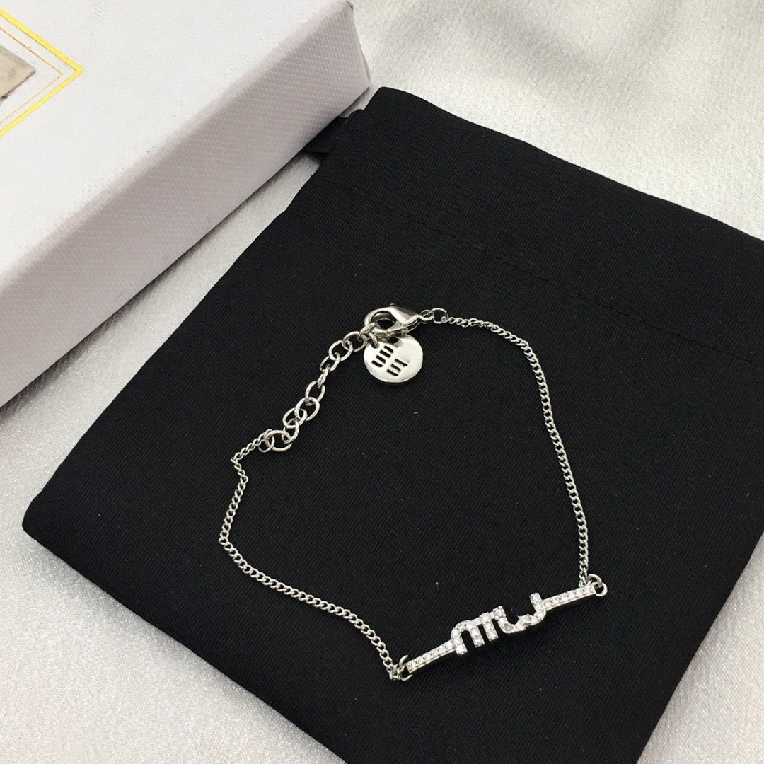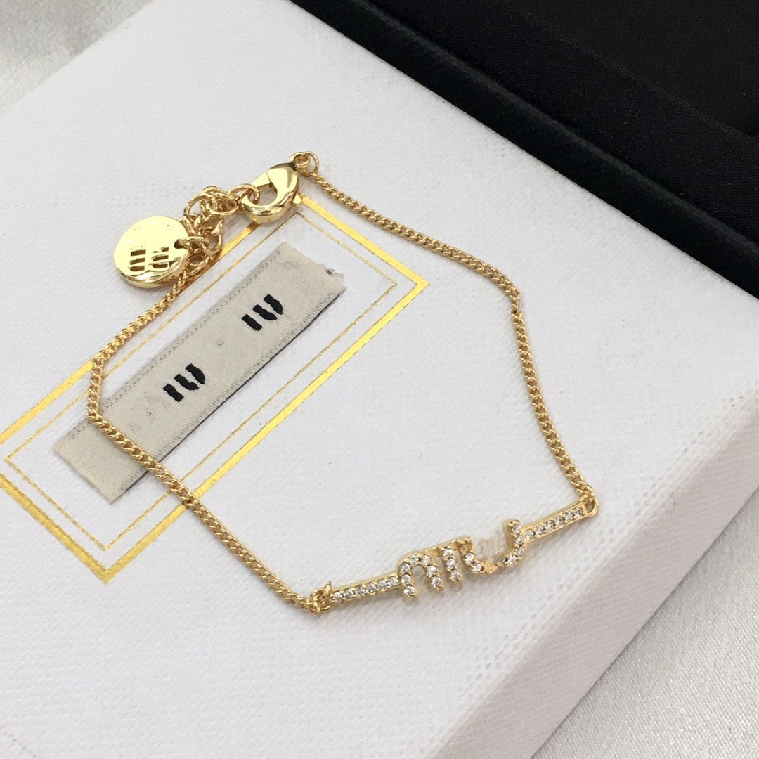 缪家新款MIU字母手链女黄铜镀金镶钻时尚轻奢风高级感满钻手环