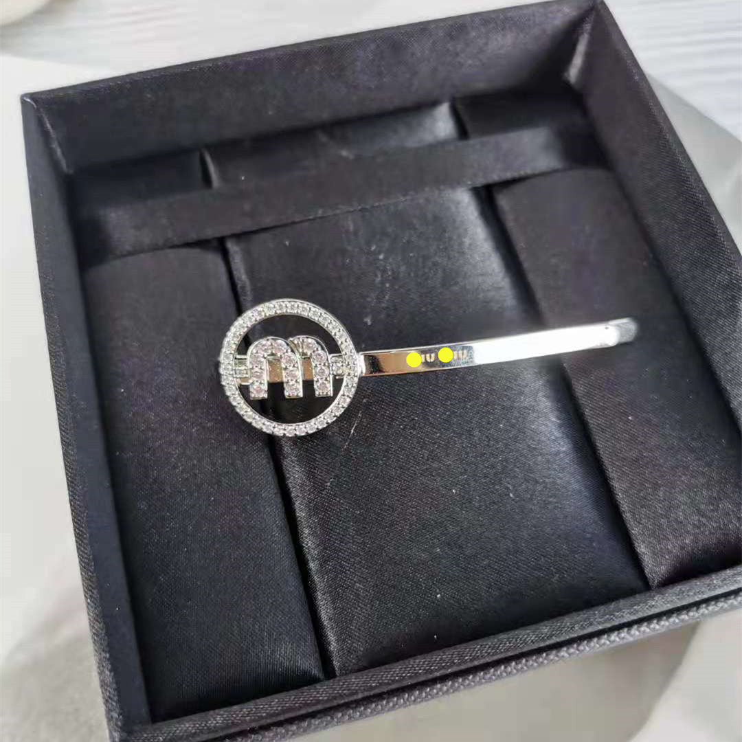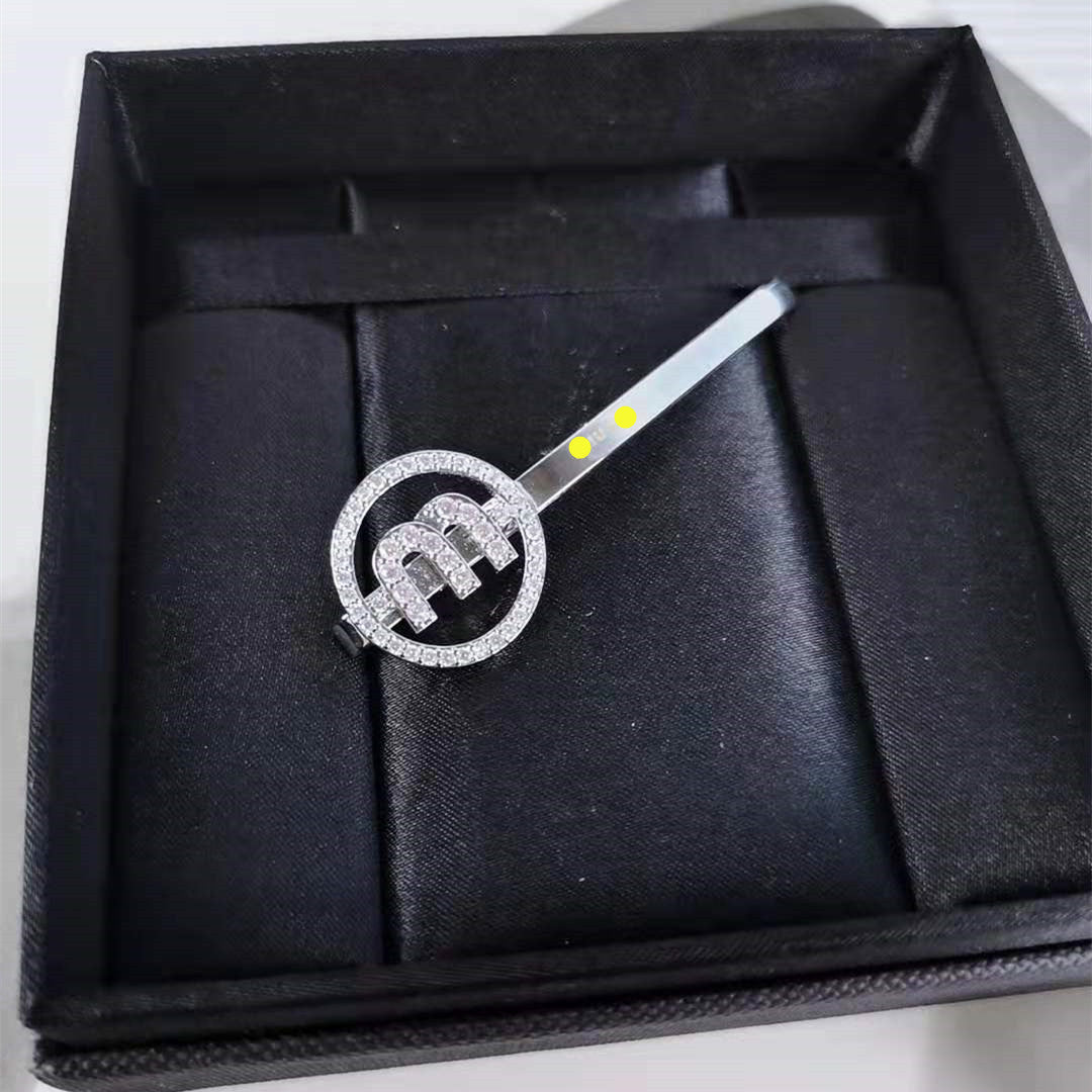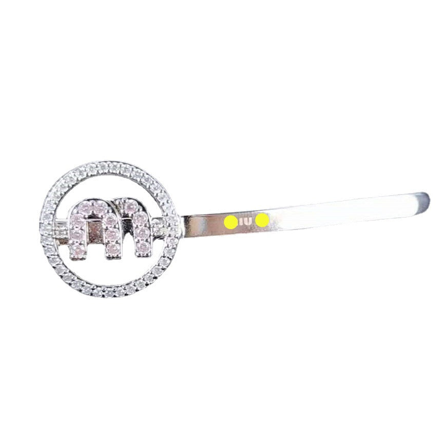 缪家早春新款发夹仿水晶粉色镶钻甜美气质一字弯夹M字母刘海夹