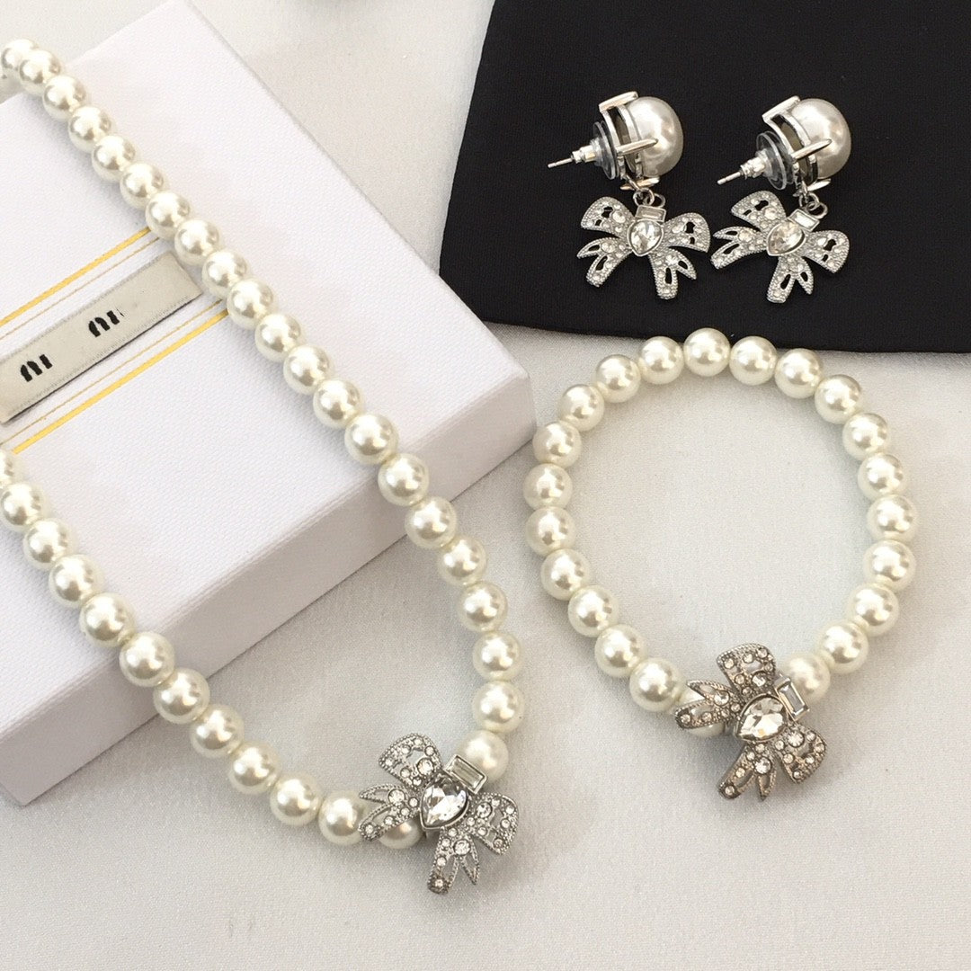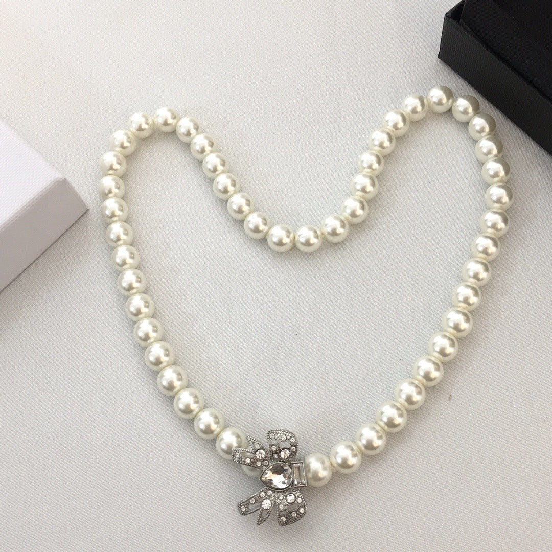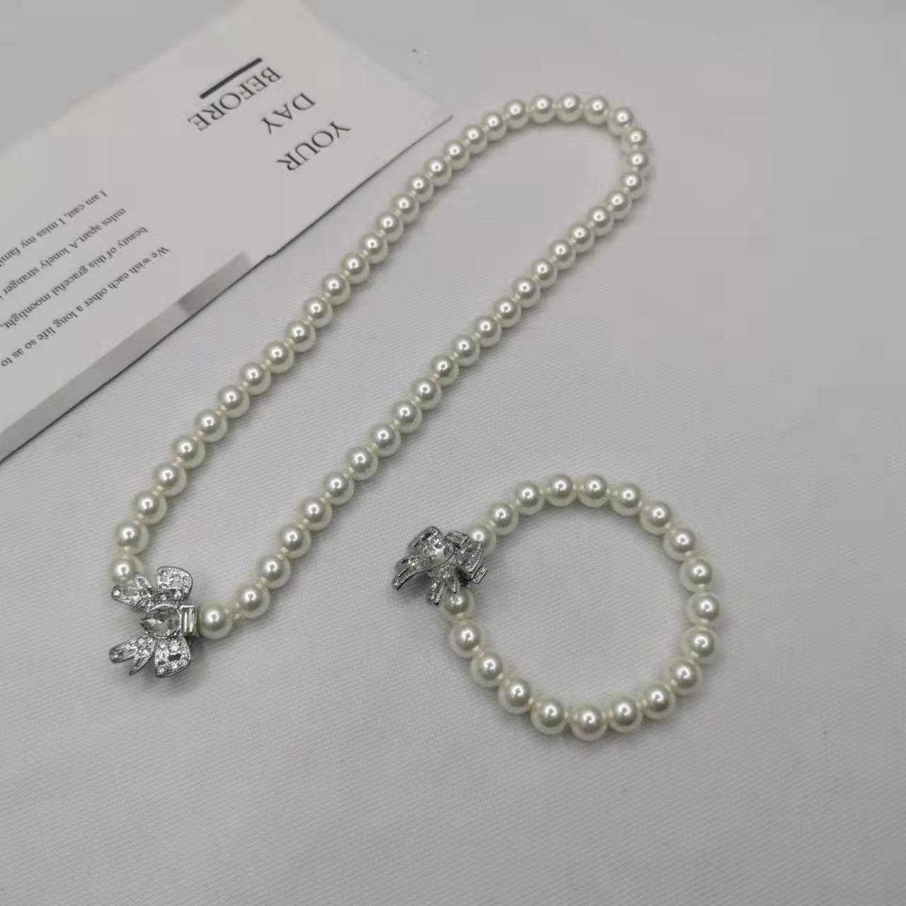 缪家21新款蝴蝶结珍珠项链女手链高级感气质INS风甜美镶钻锁骨链