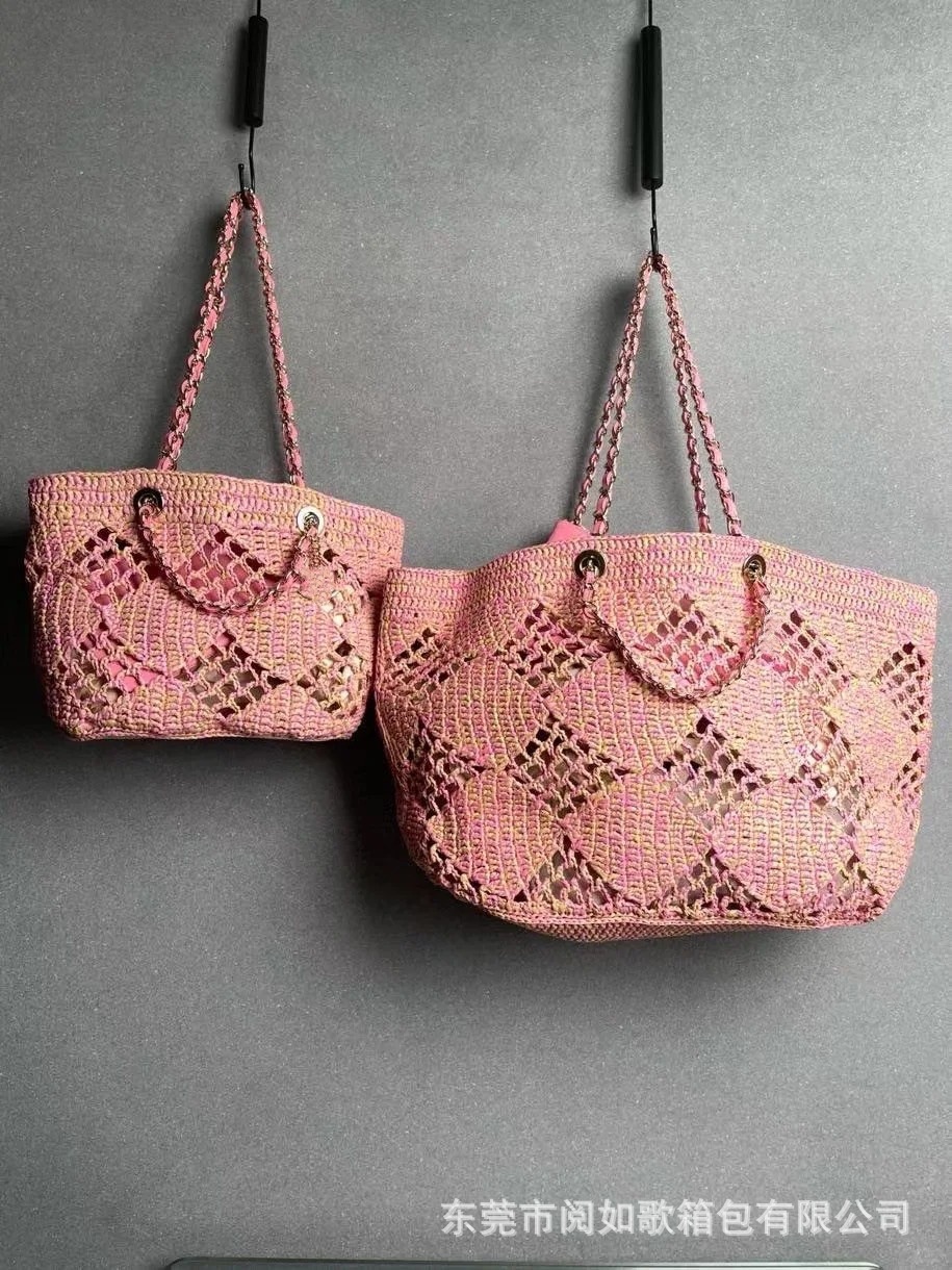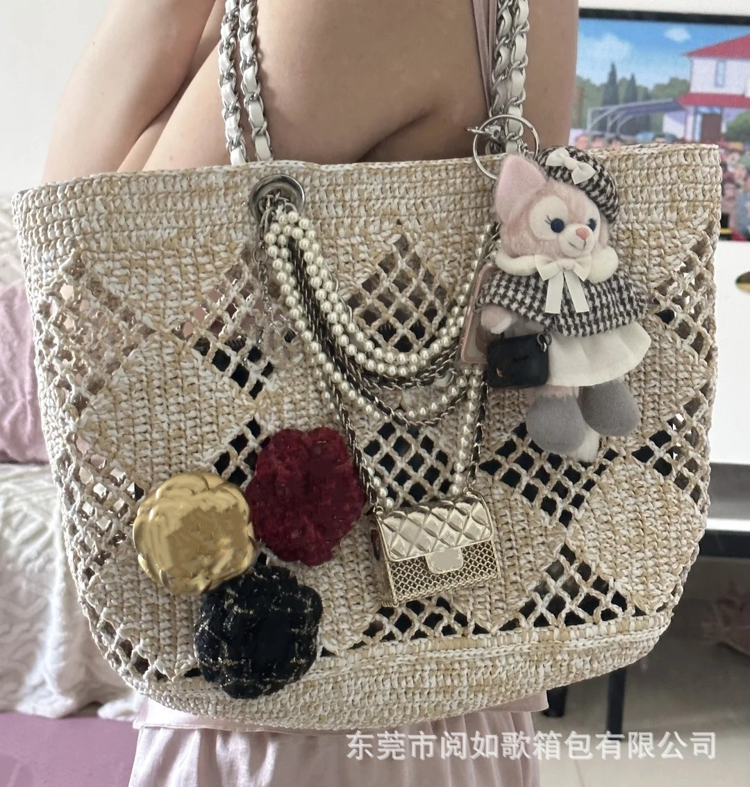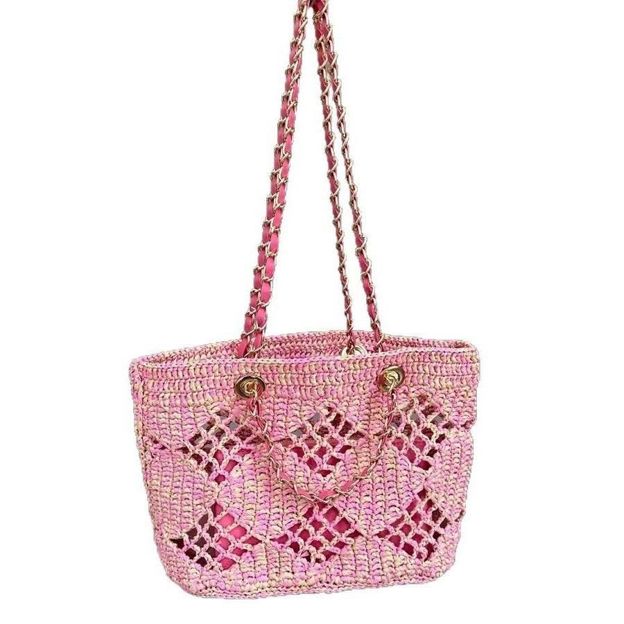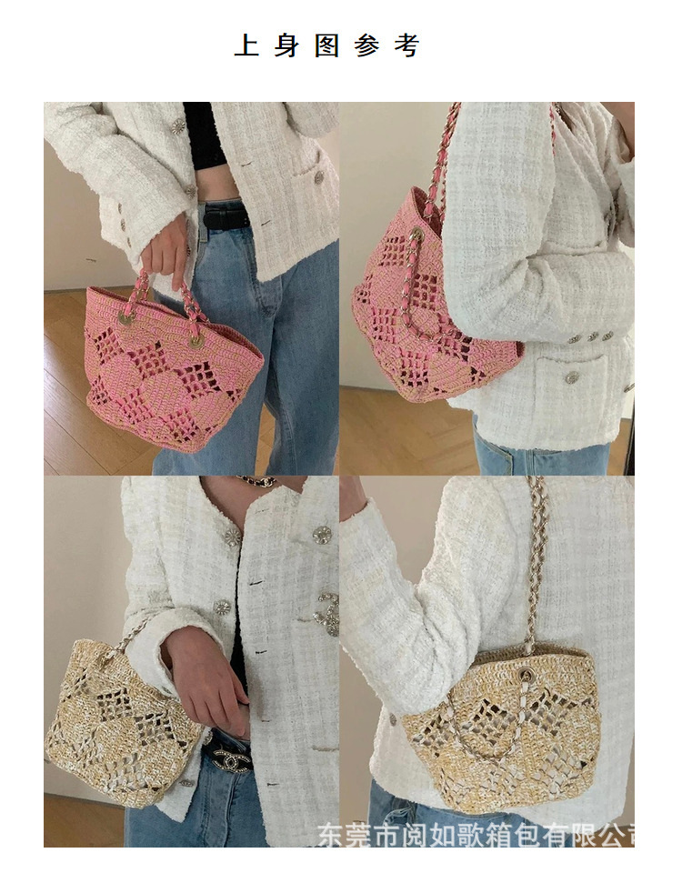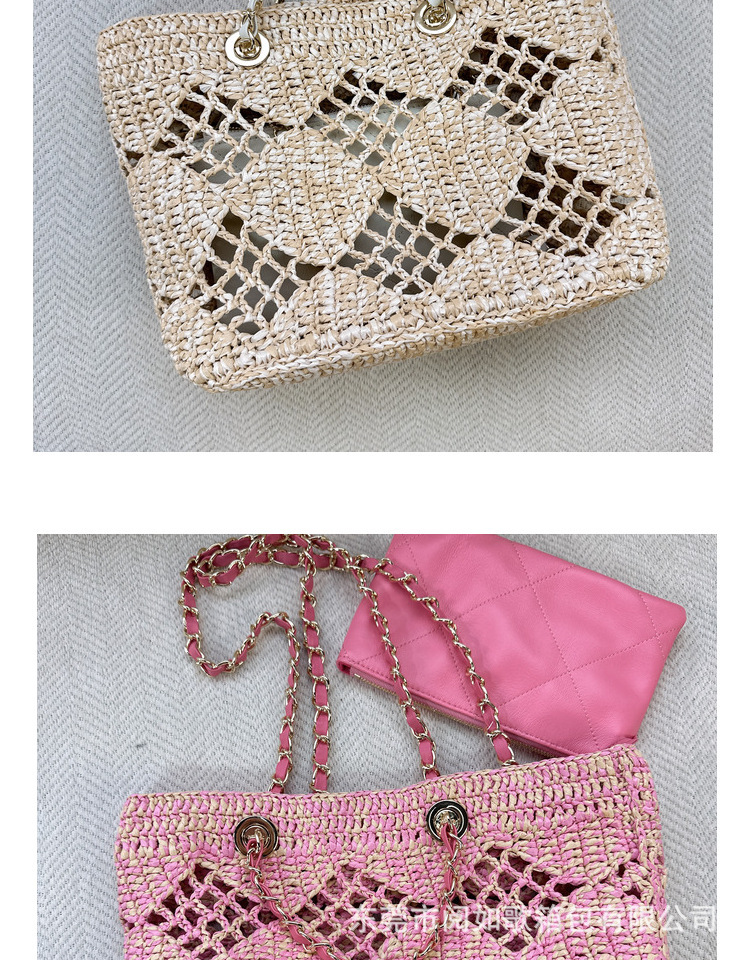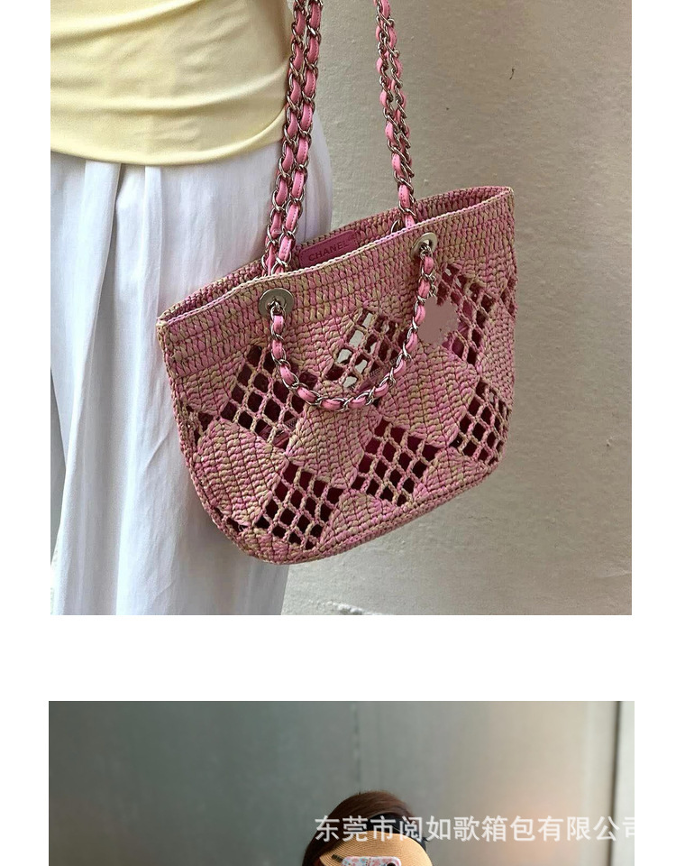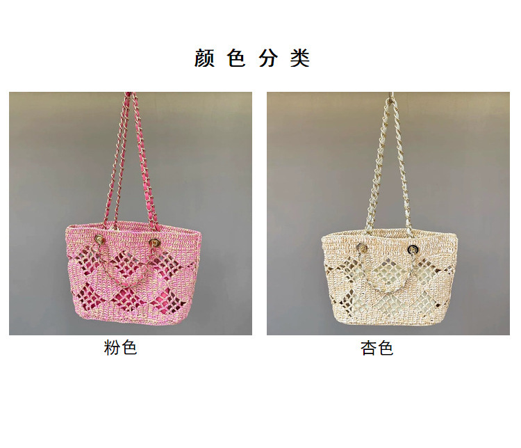 网格拉菲草编织包夏日多巴胺海边沙滩包森系菱格镂空包链条托特包