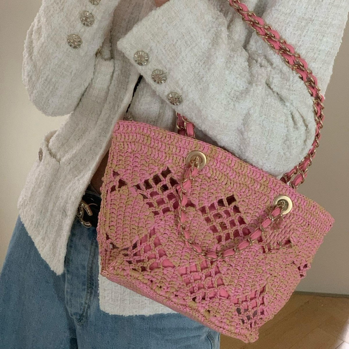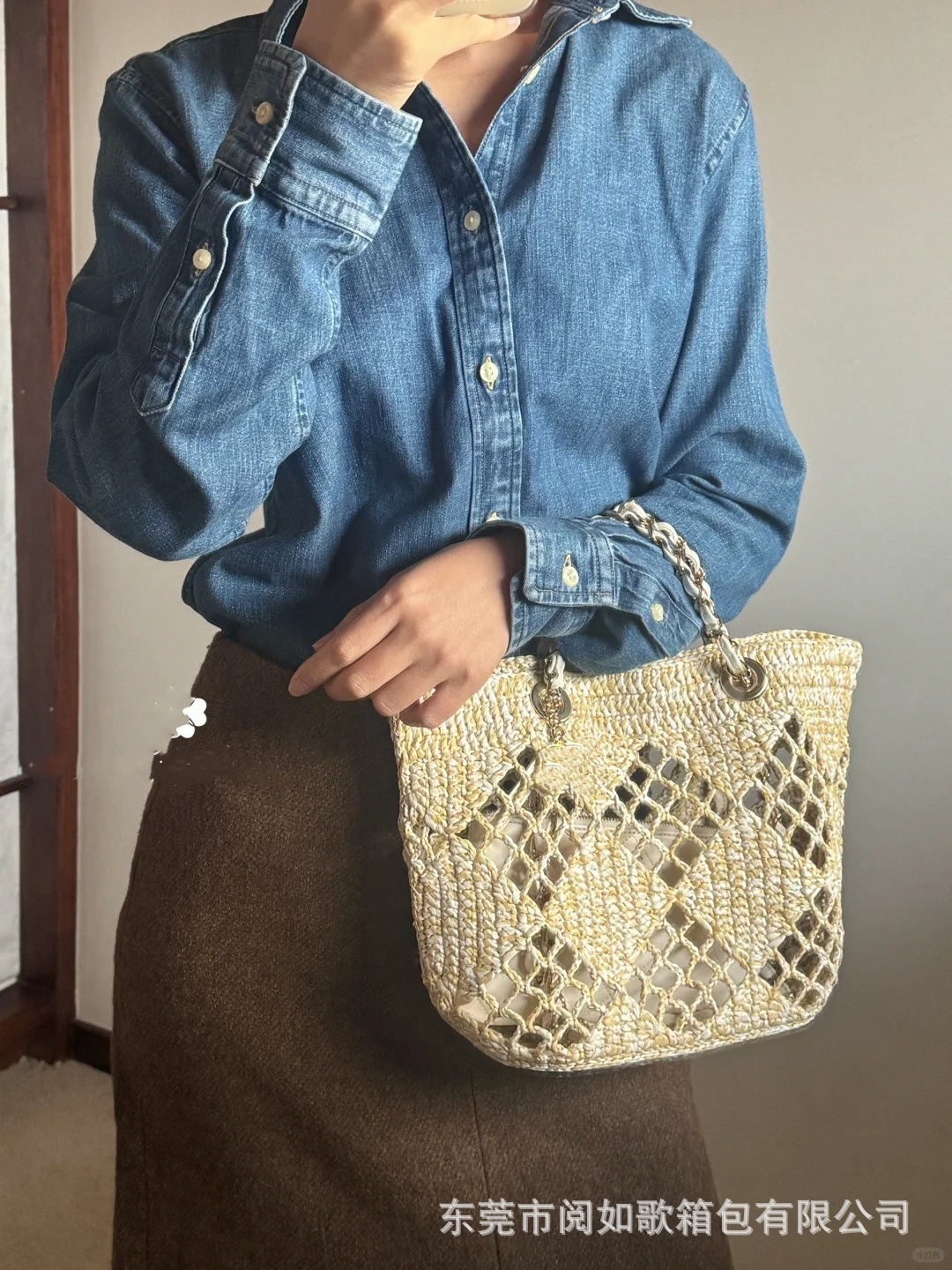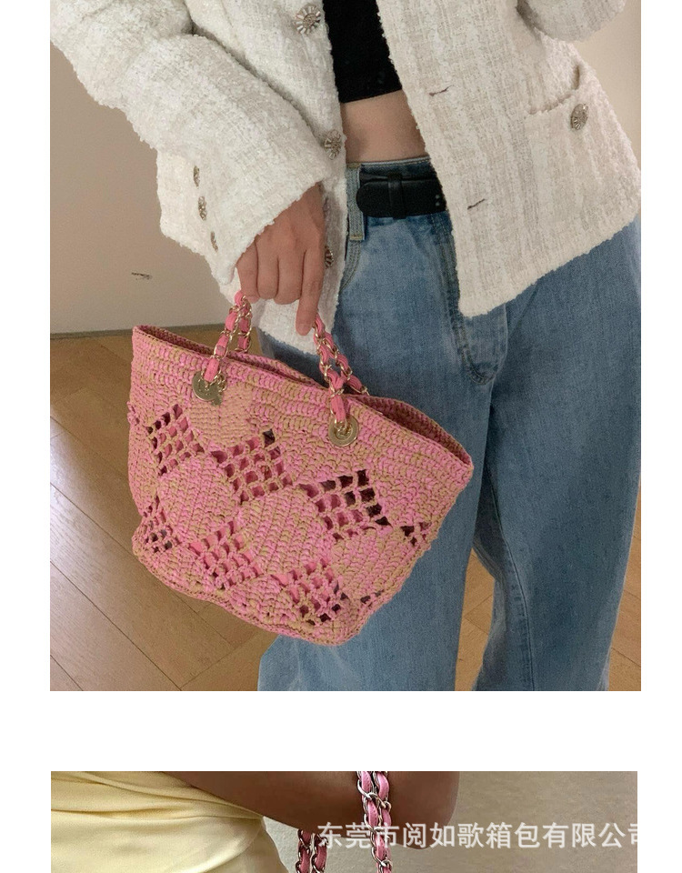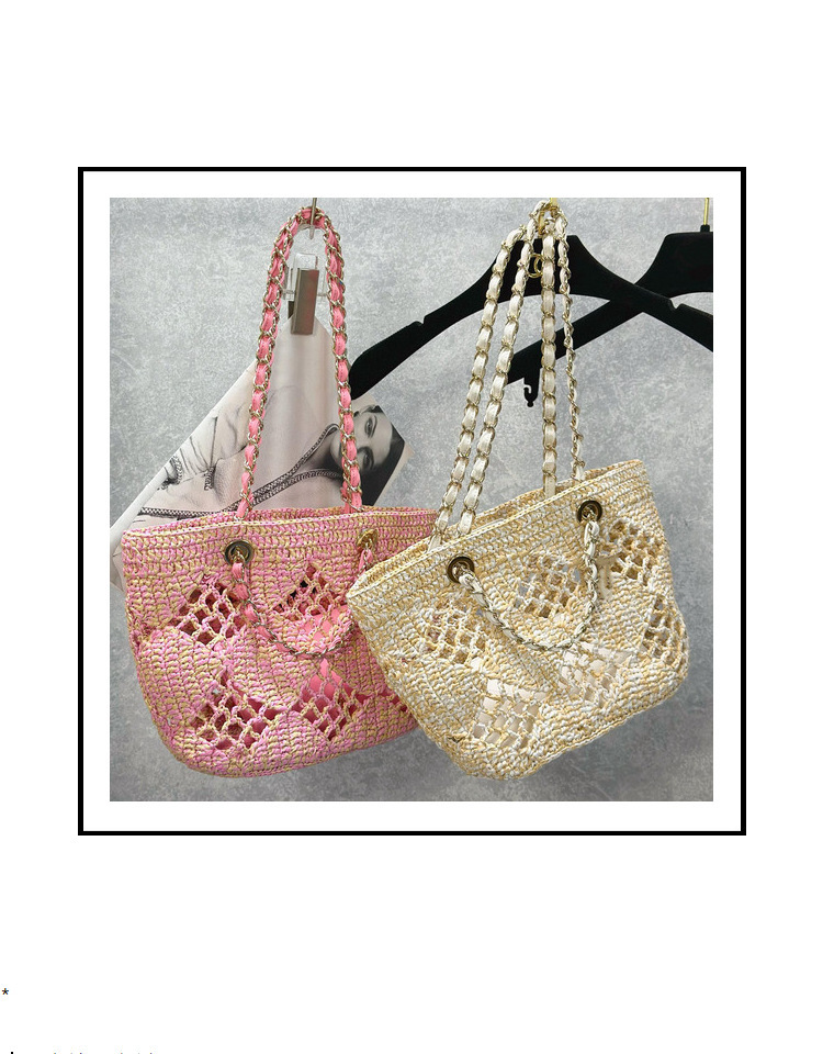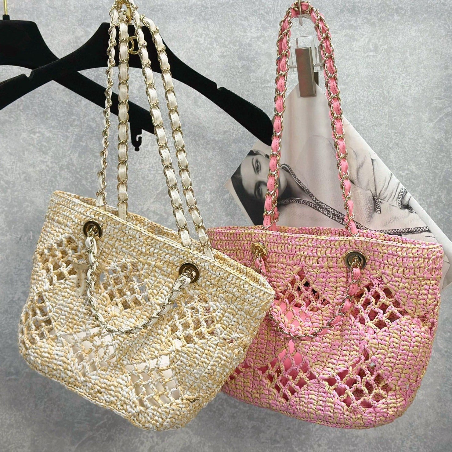 网格拉菲草编织包夏日多巴胺海边沙滩包森系菱格镂空包链条托特包