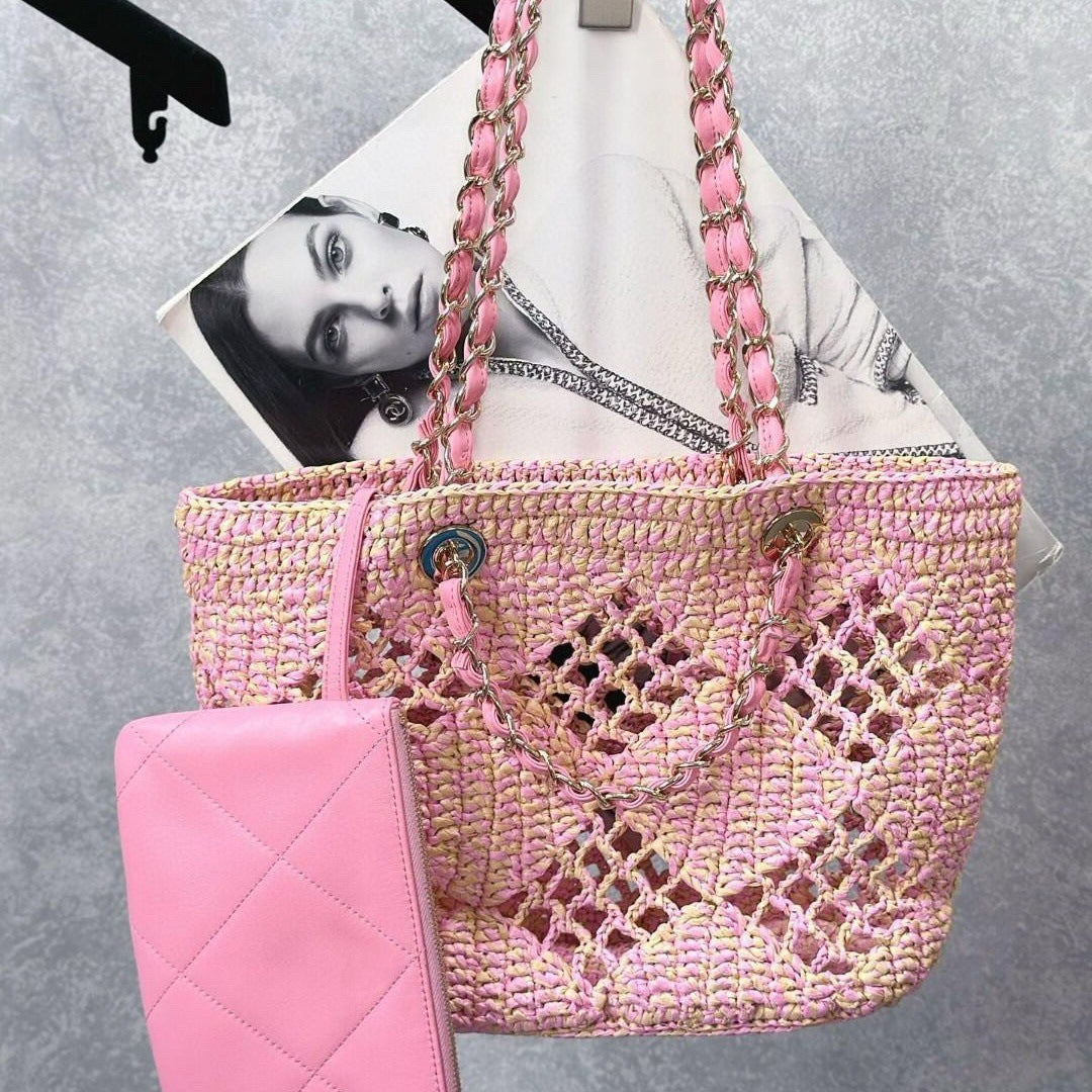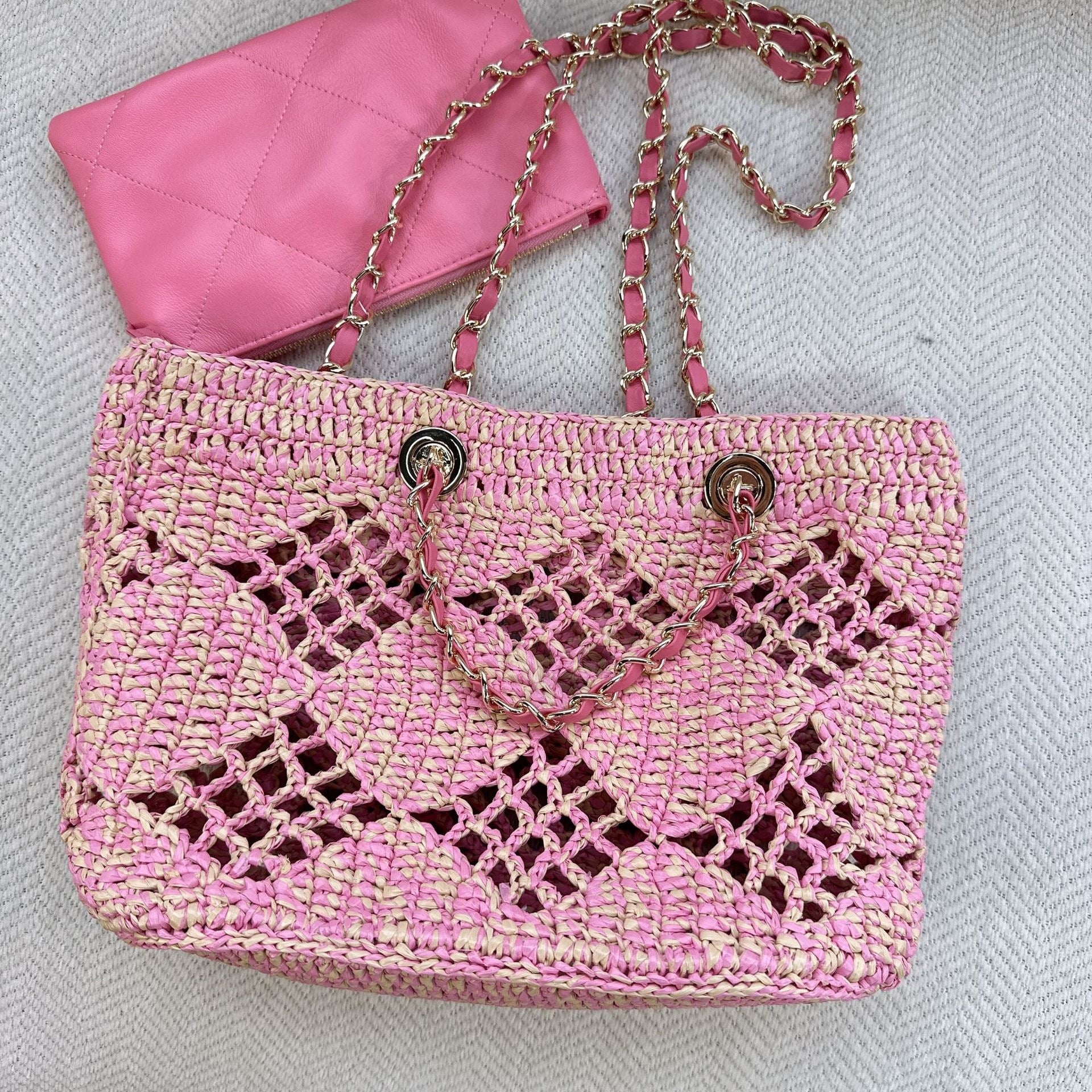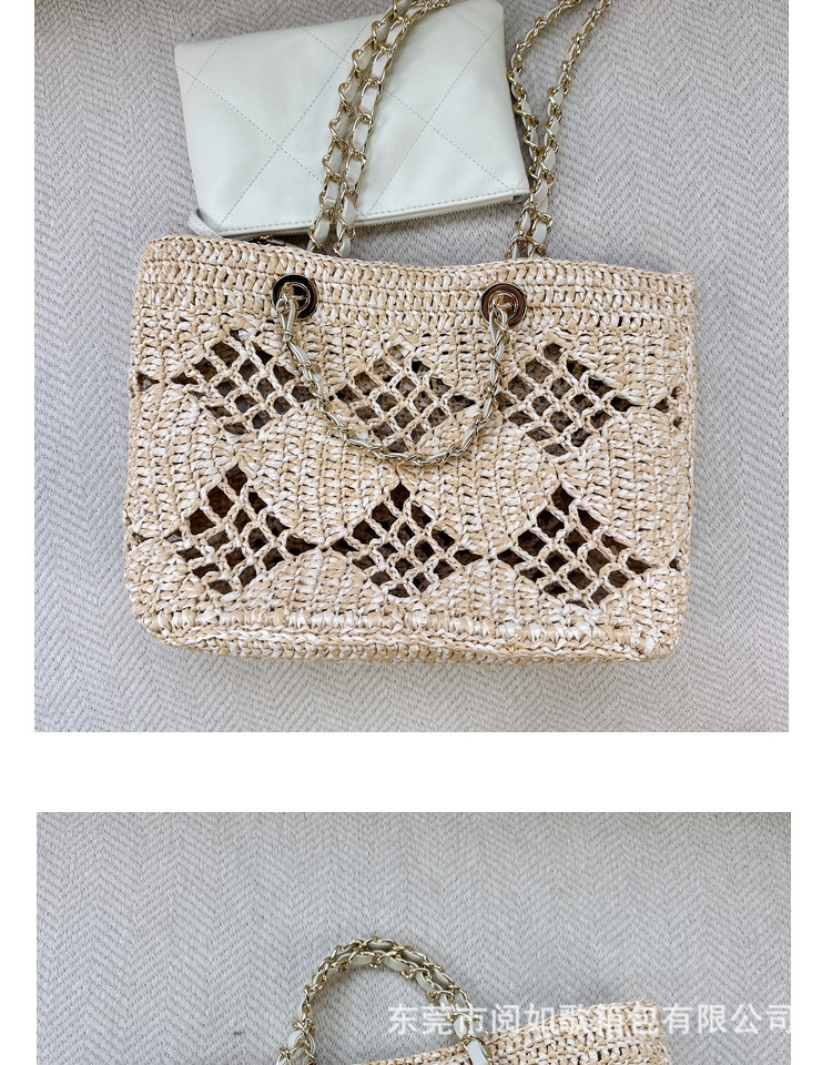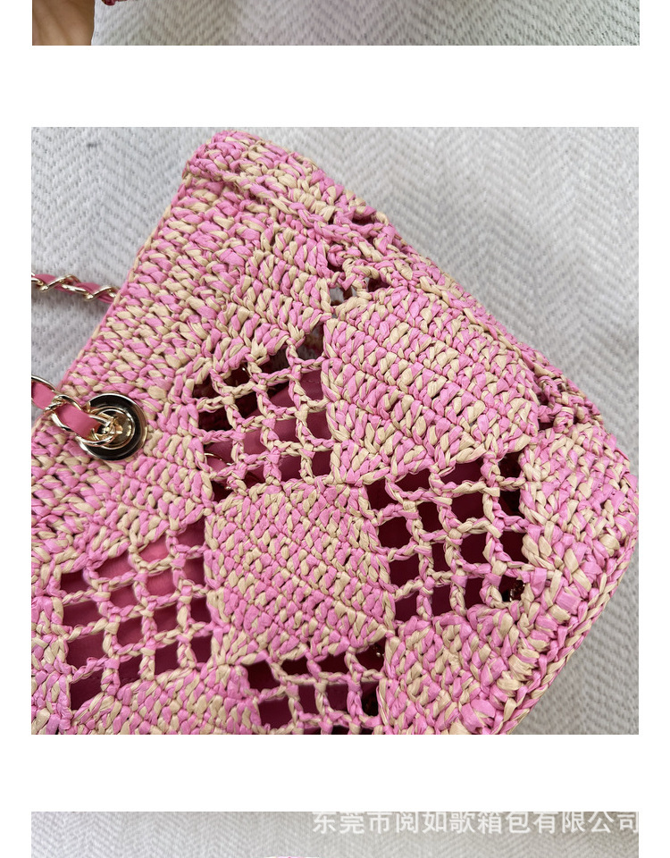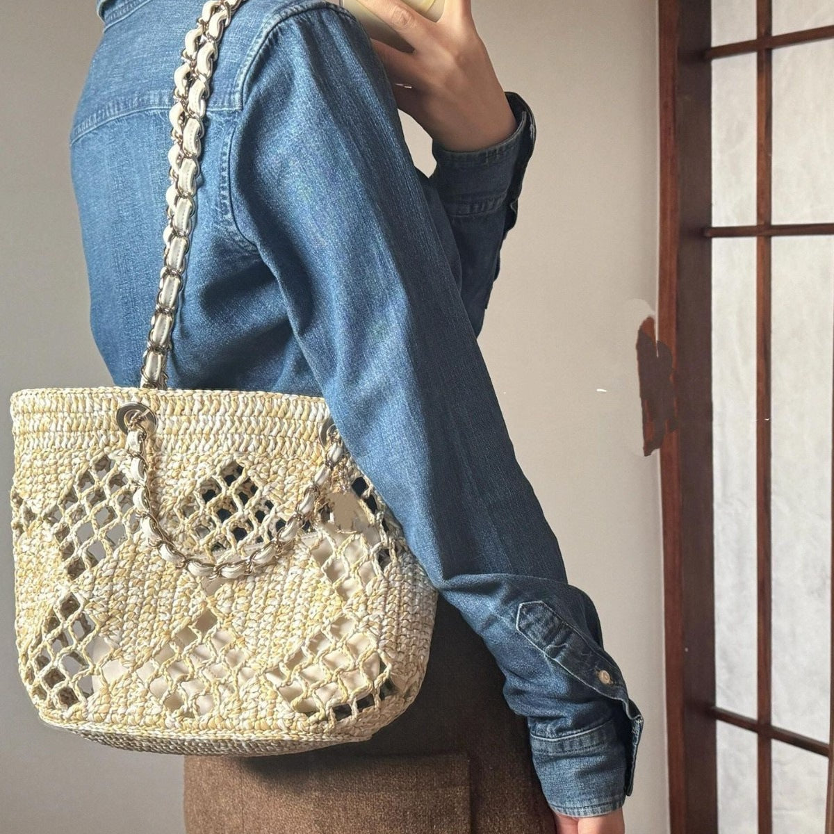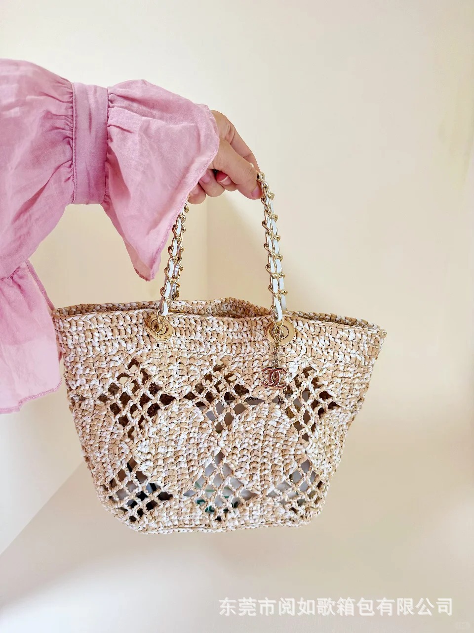 网格拉菲草编织包夏日多巴胺海边沙滩包森系菱格镂空包链条托特包