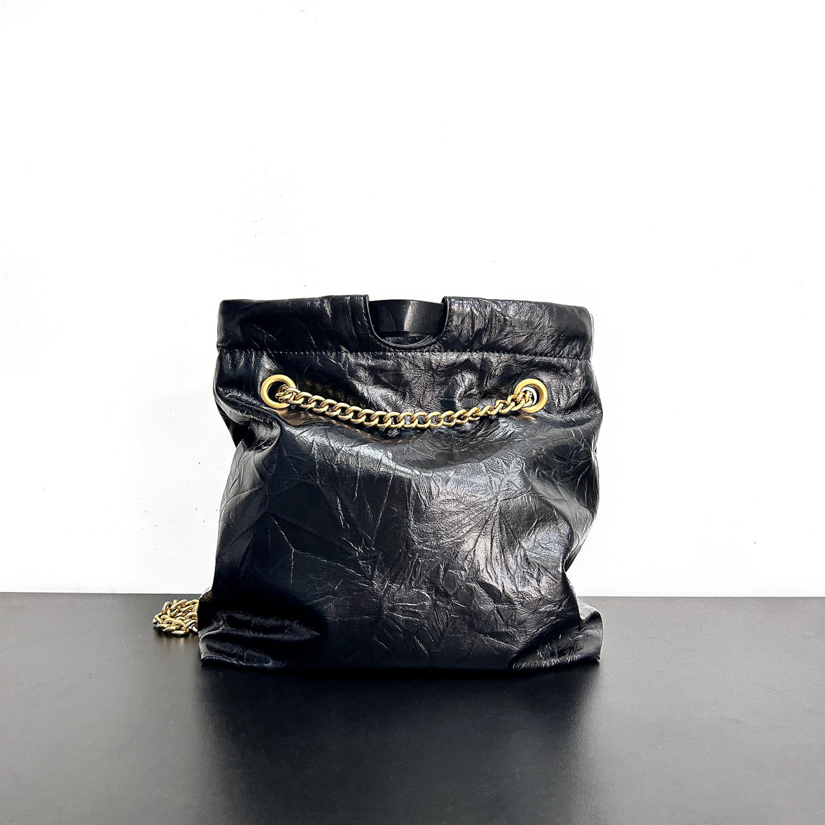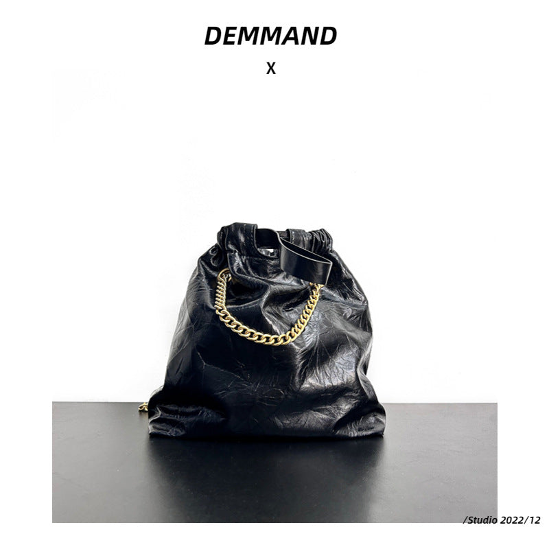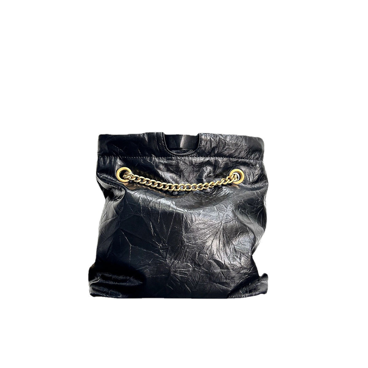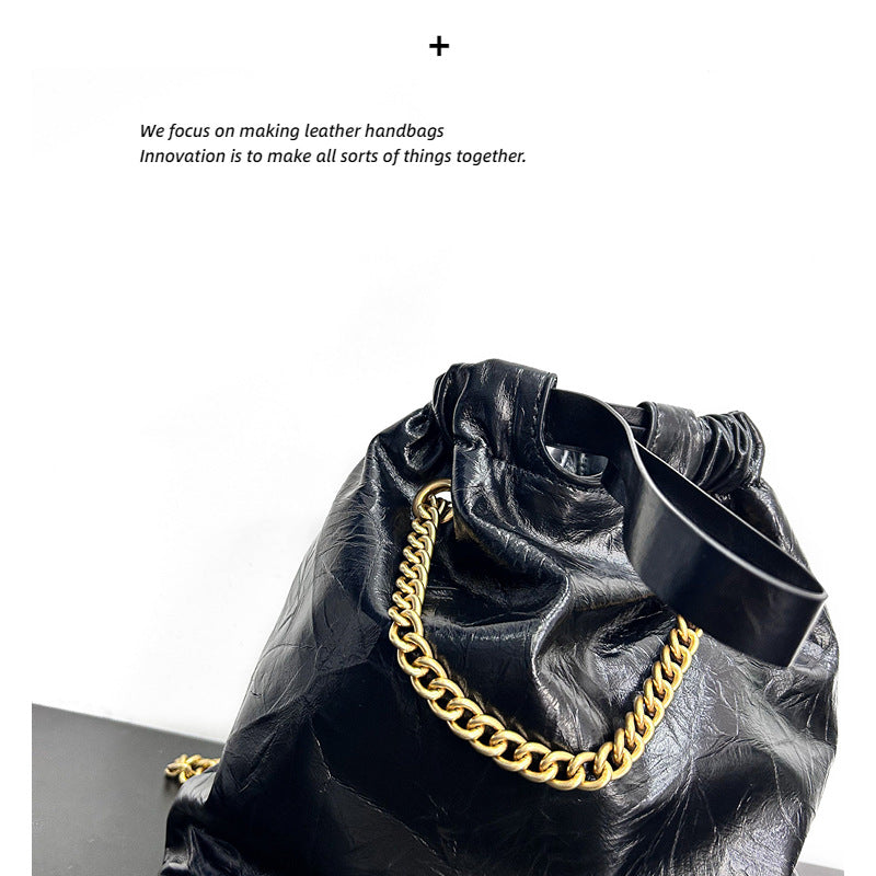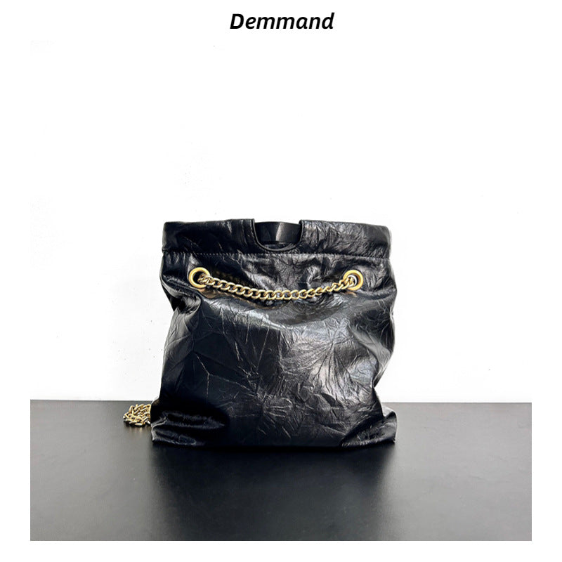 网红同款质感牛皮爆裂纹垃圾袋链条包暗黑潮酷百搭单肩斜挎包