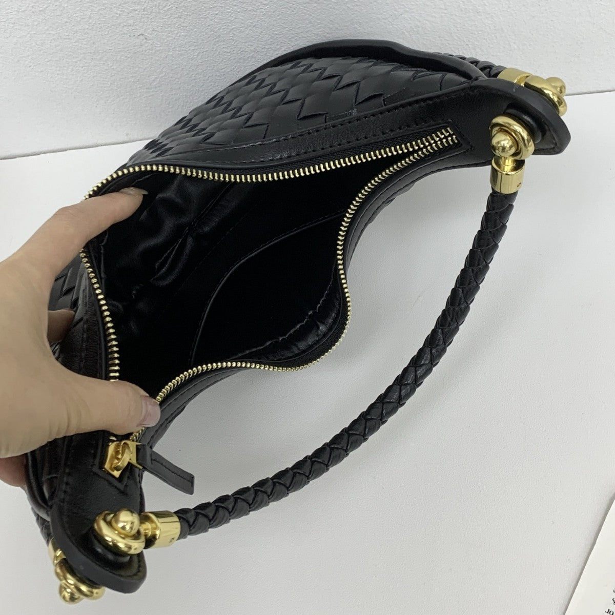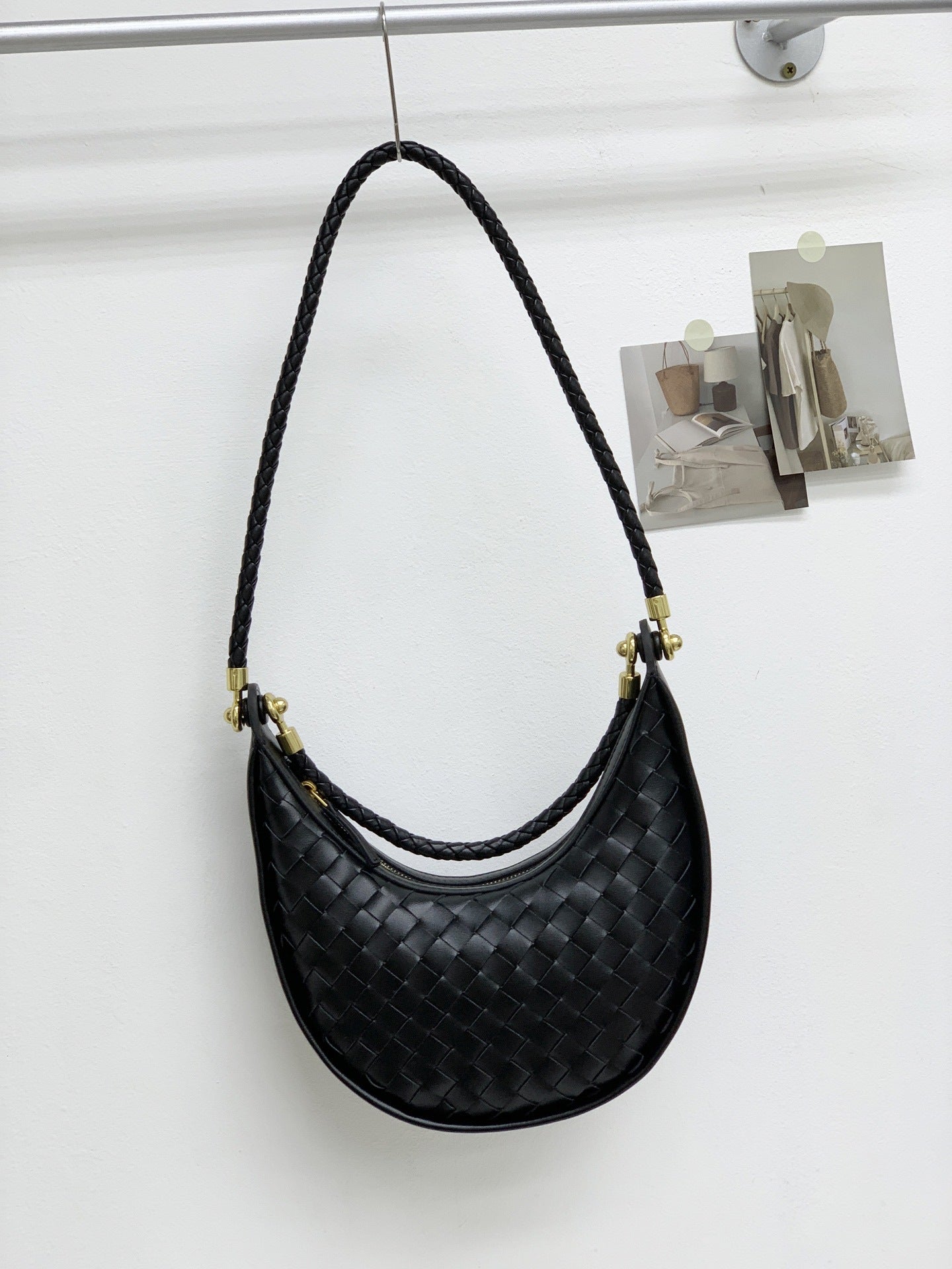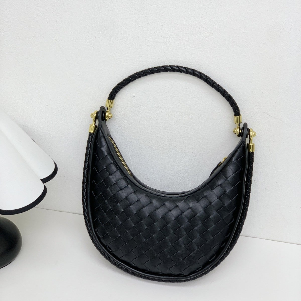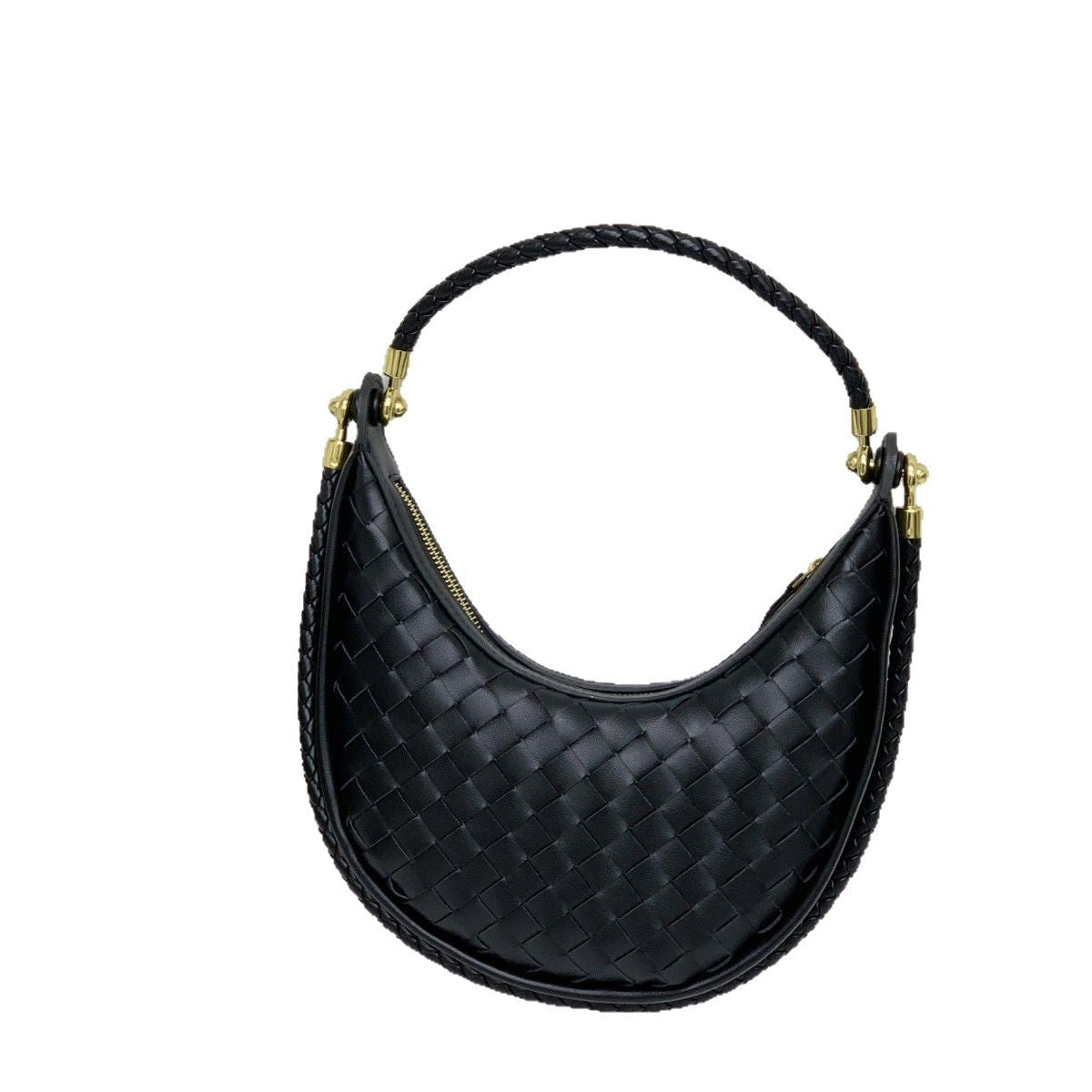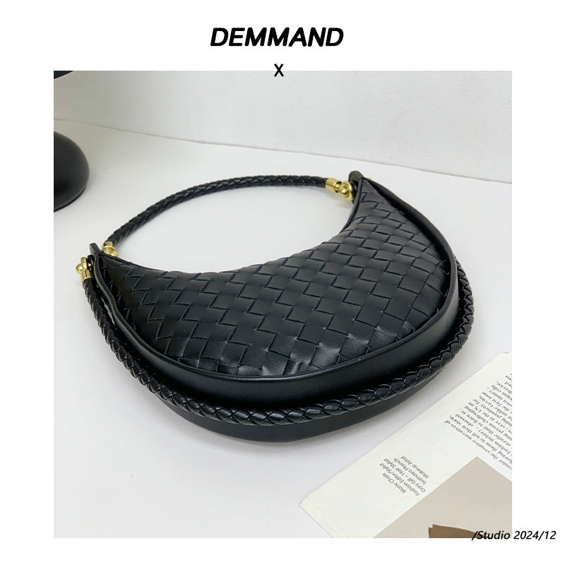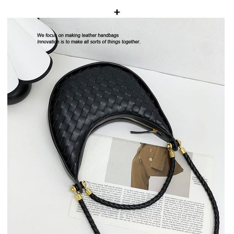 网红爆款编织纹真皮腋下包女百搭2025春季新款牛皮单肩斜跨饺子包