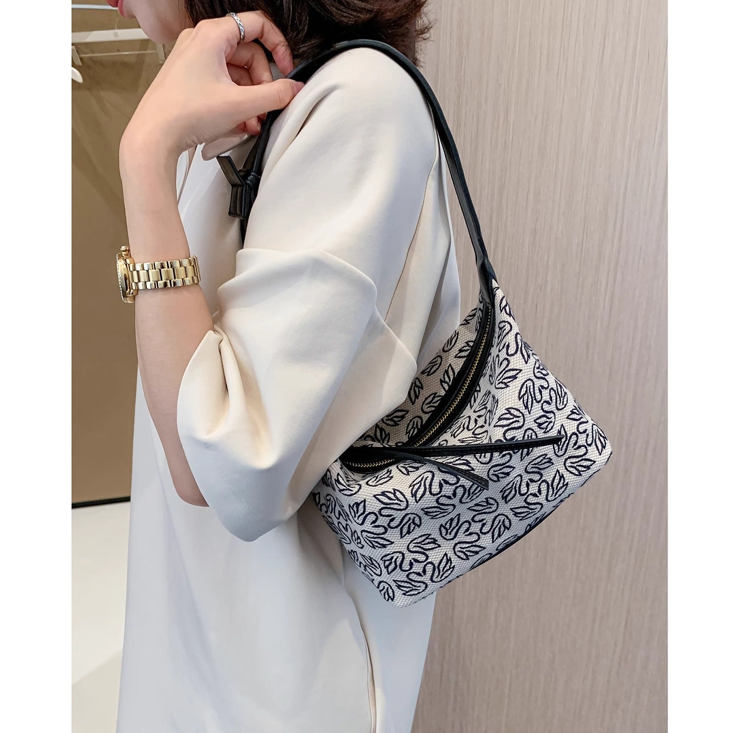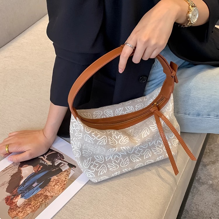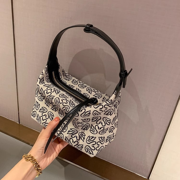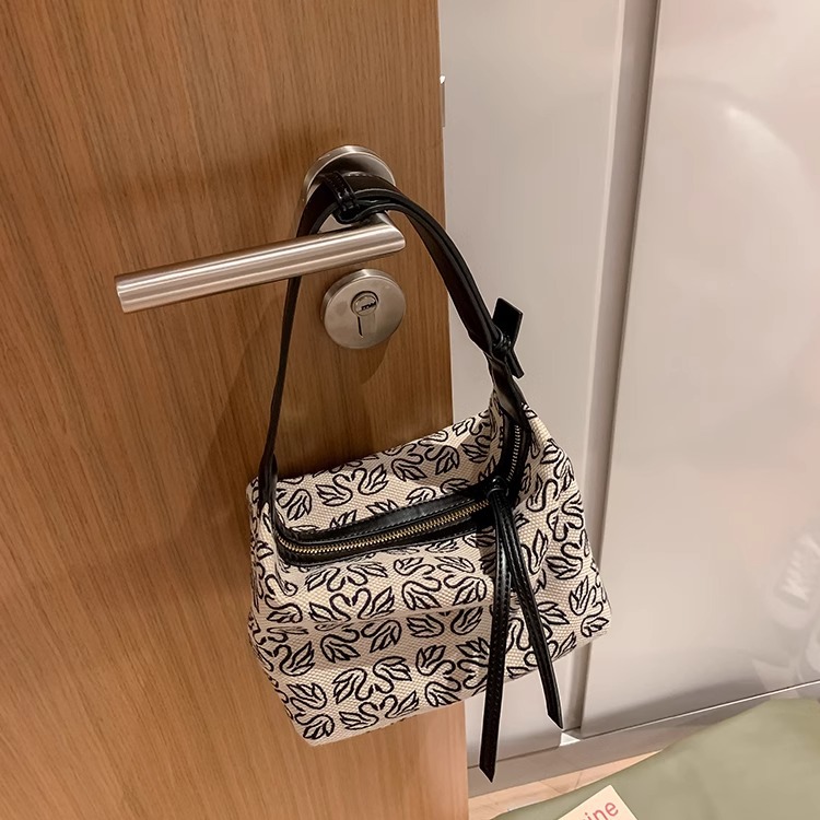罗家时尚天鹅刺绣医生包包2023秋冬款女包帆布单肩手提休闲秋腋下