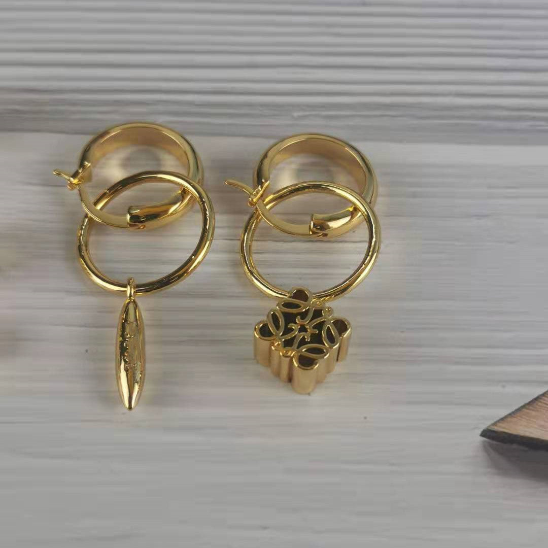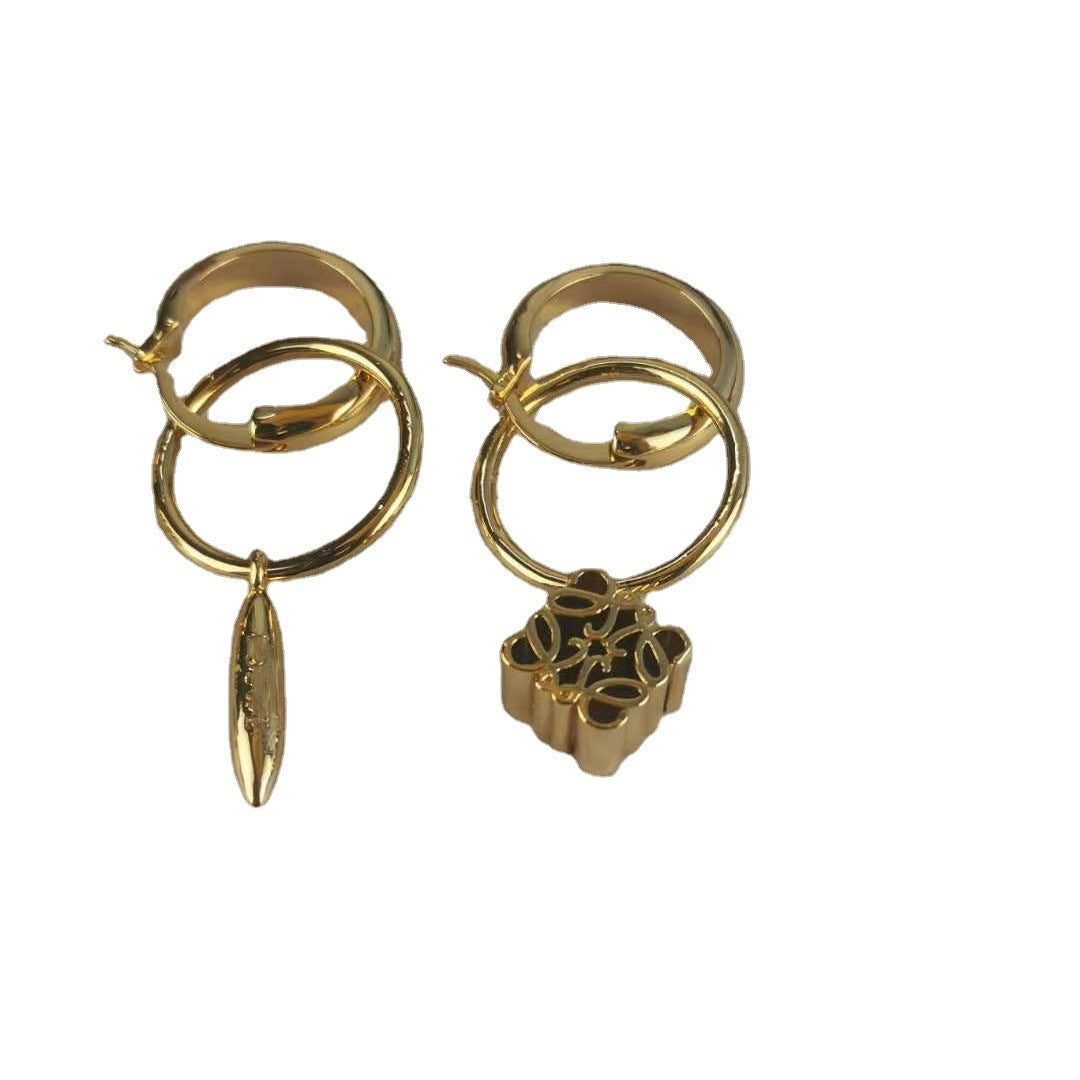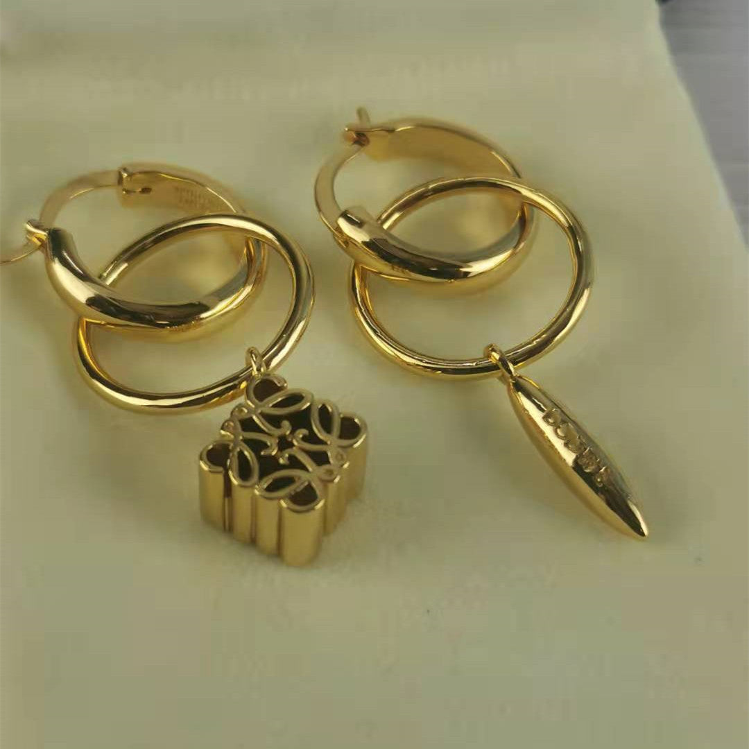 罗家立体镂空月饼方块耳环可拆卸耳钉复古高级感耳饰不对称耳圈