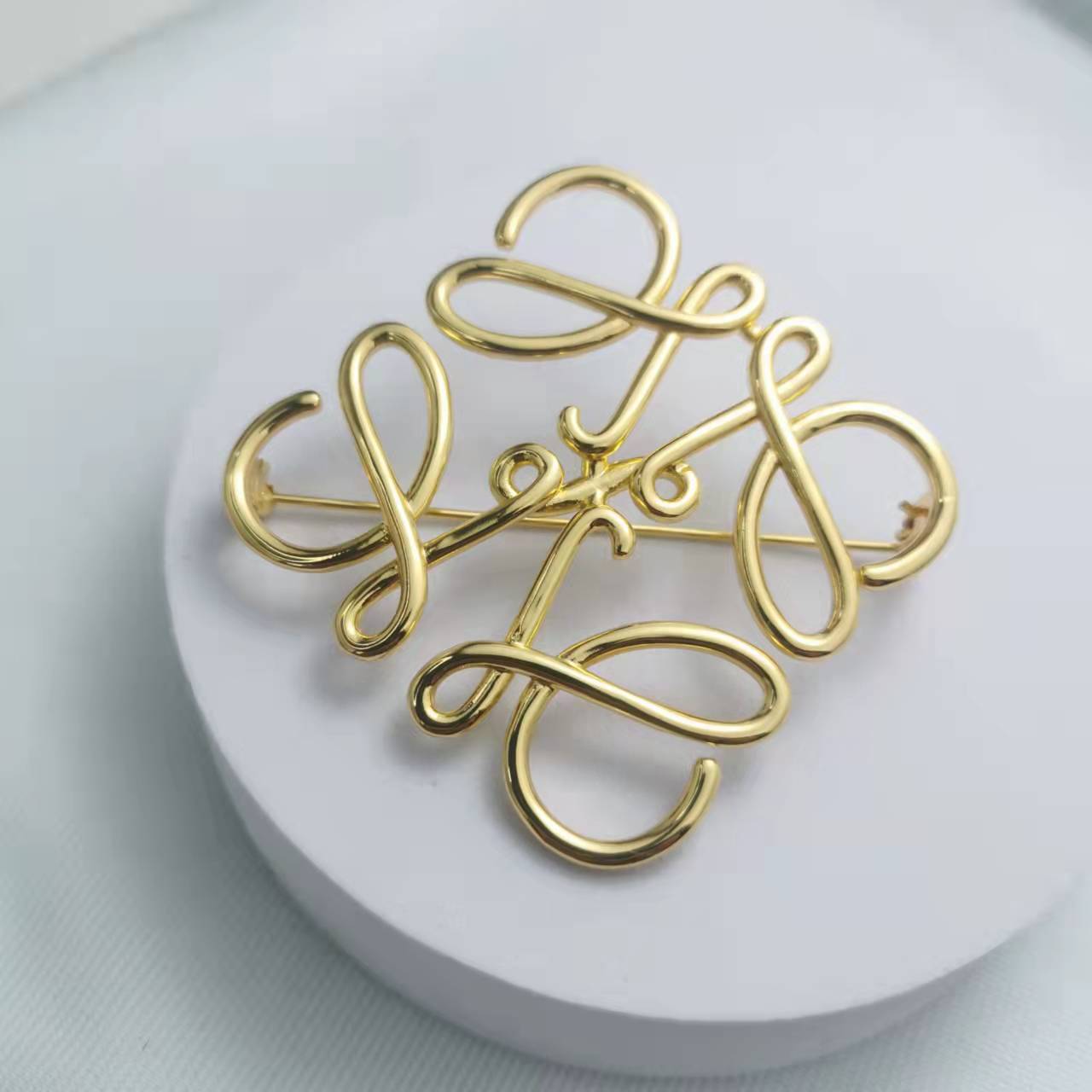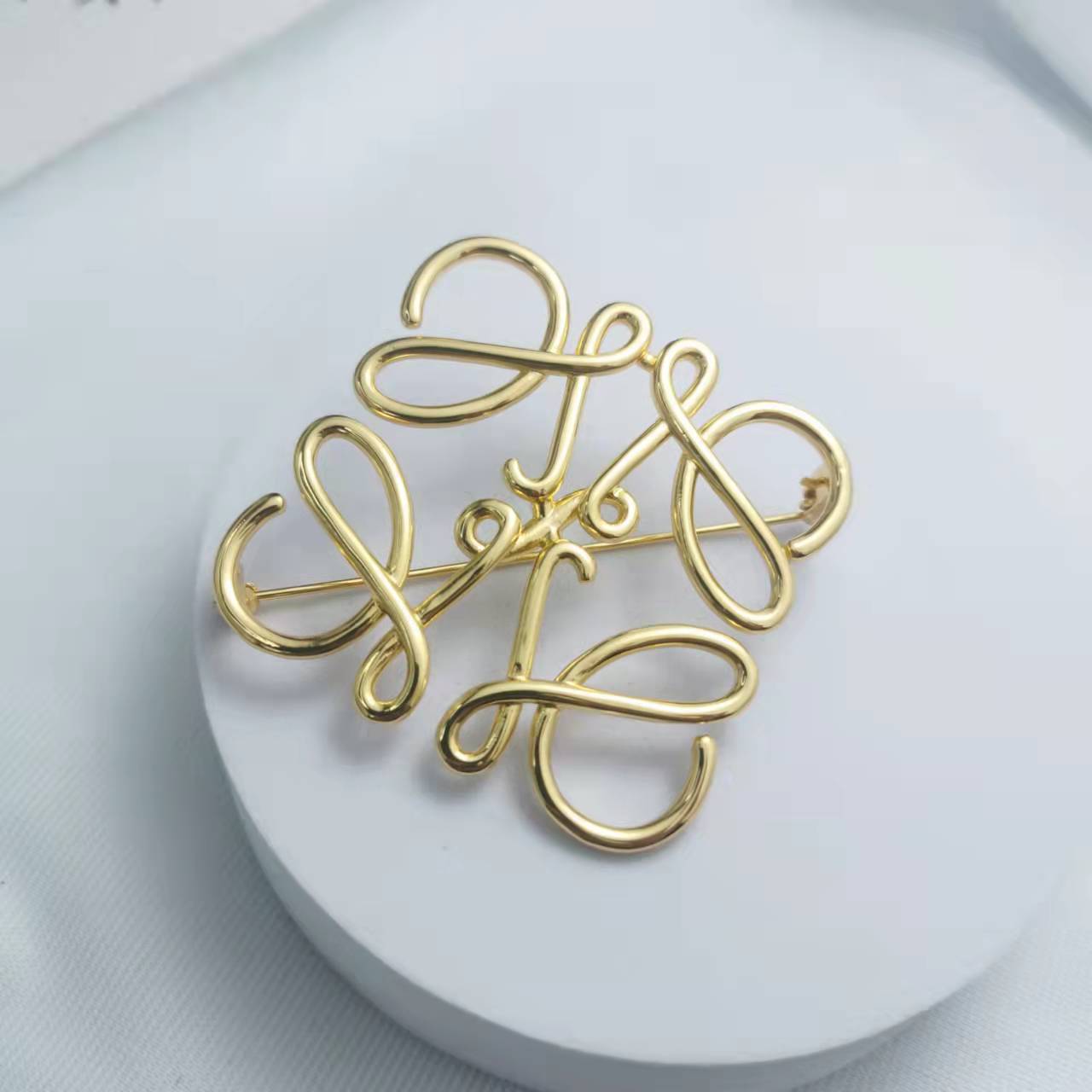 罗家21新款几何形镂空logo胸针女高级感气质欧美金色高档装饰别针