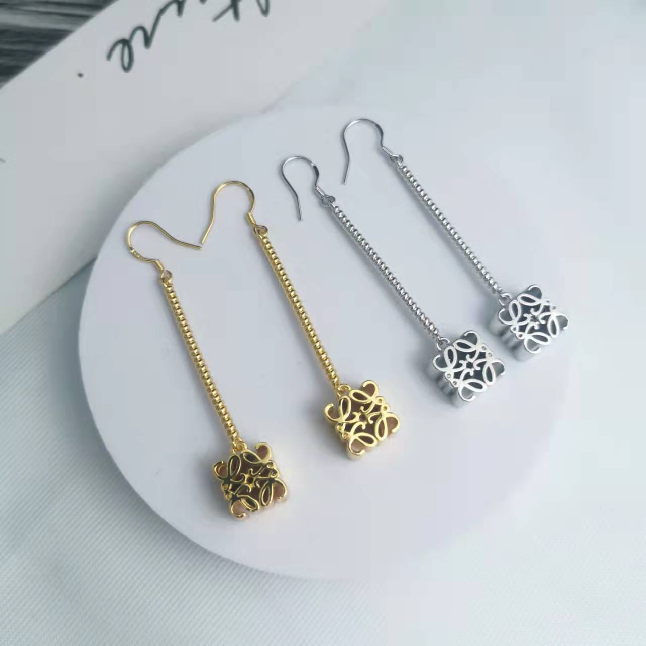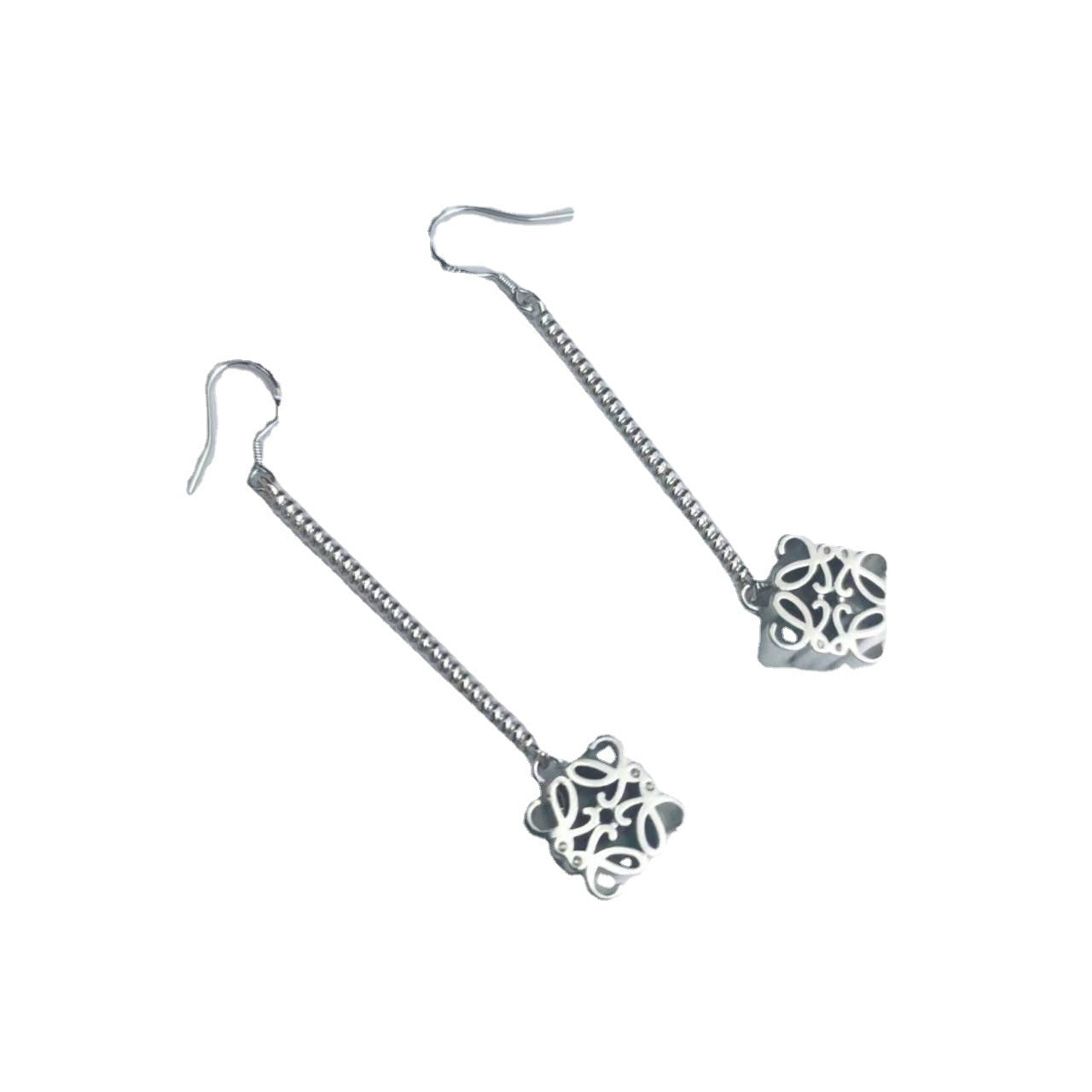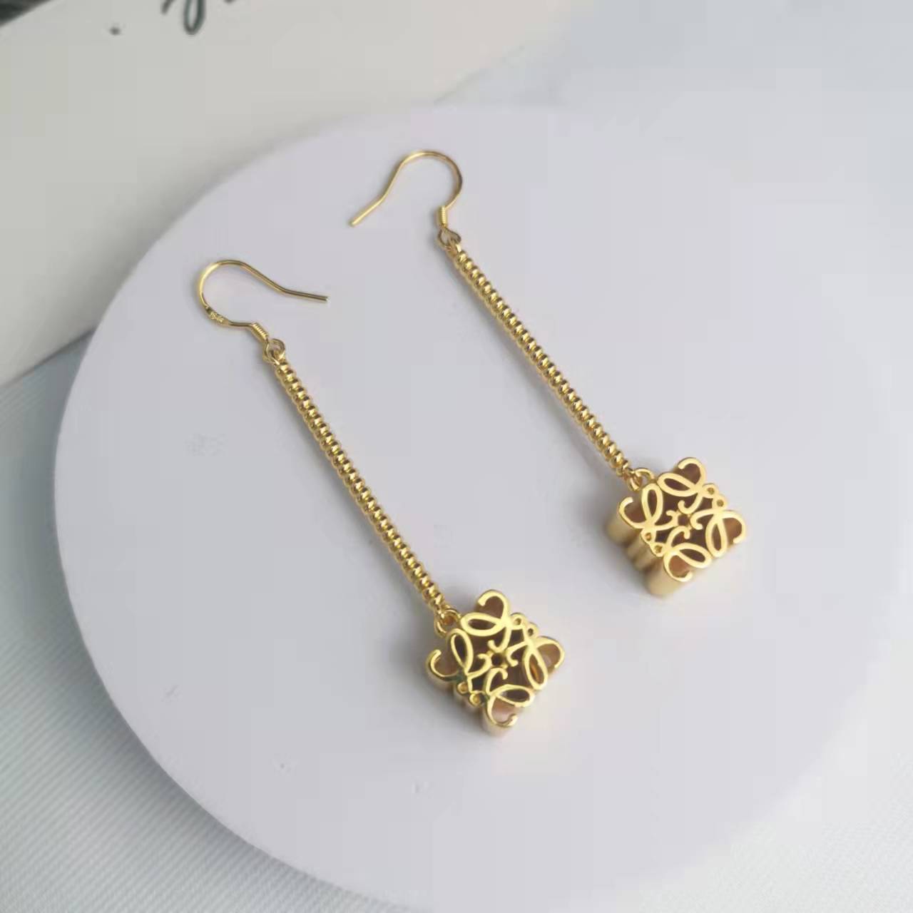 罗家21新款月饼长款耳环女高级感气质光面镀金几何印花链条耳坠