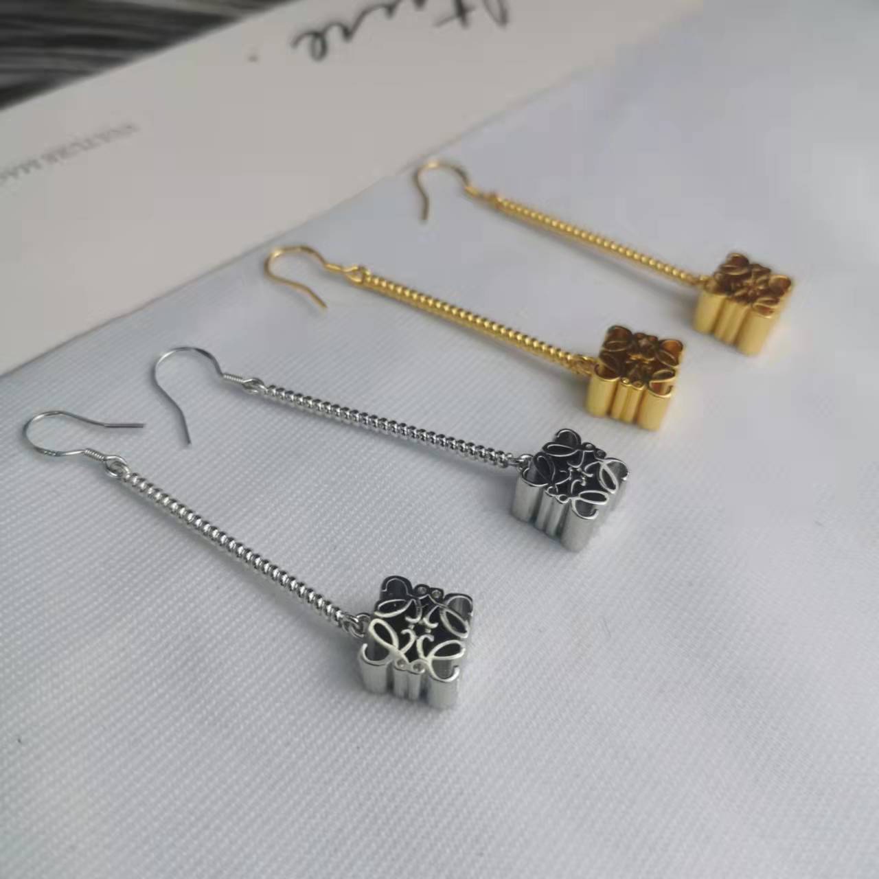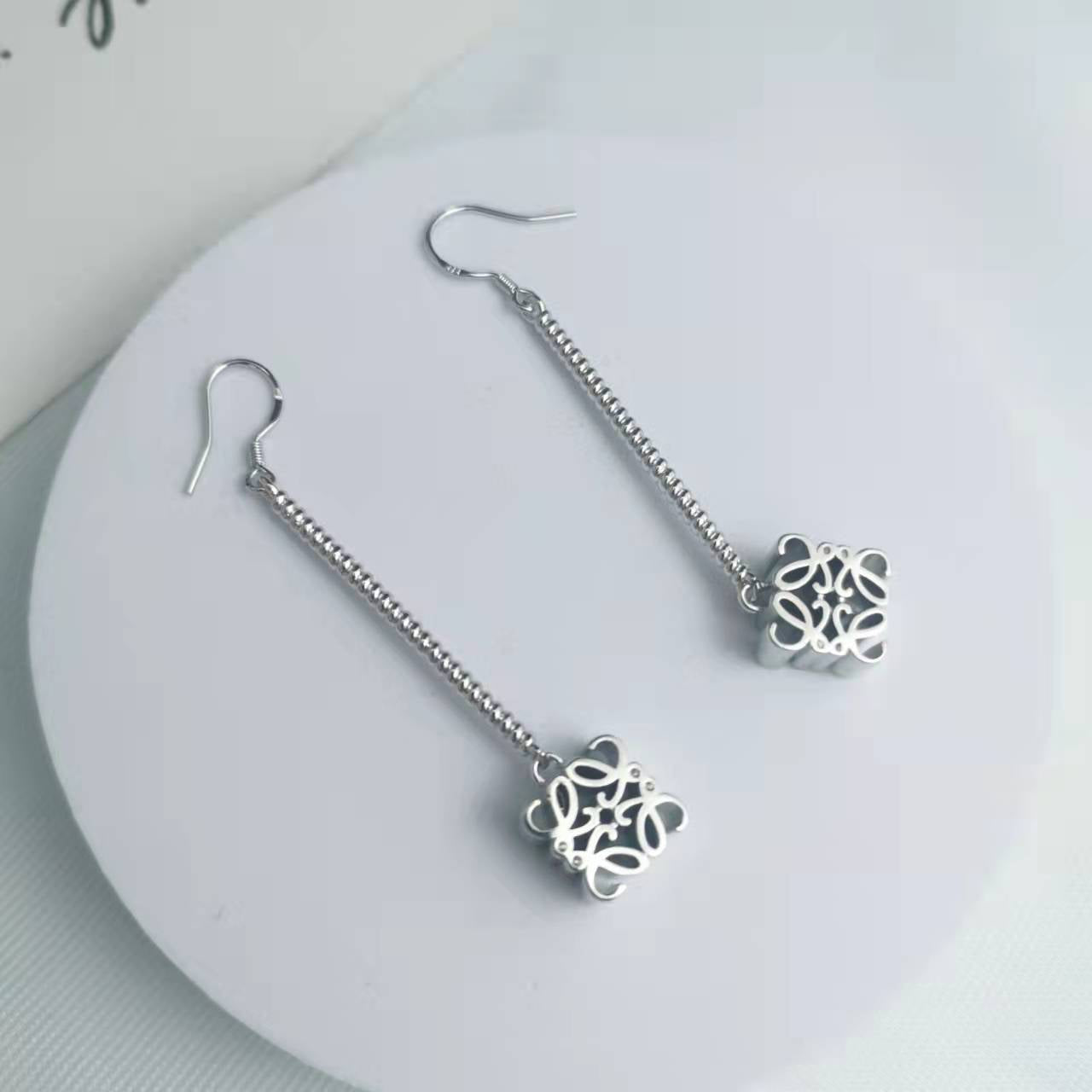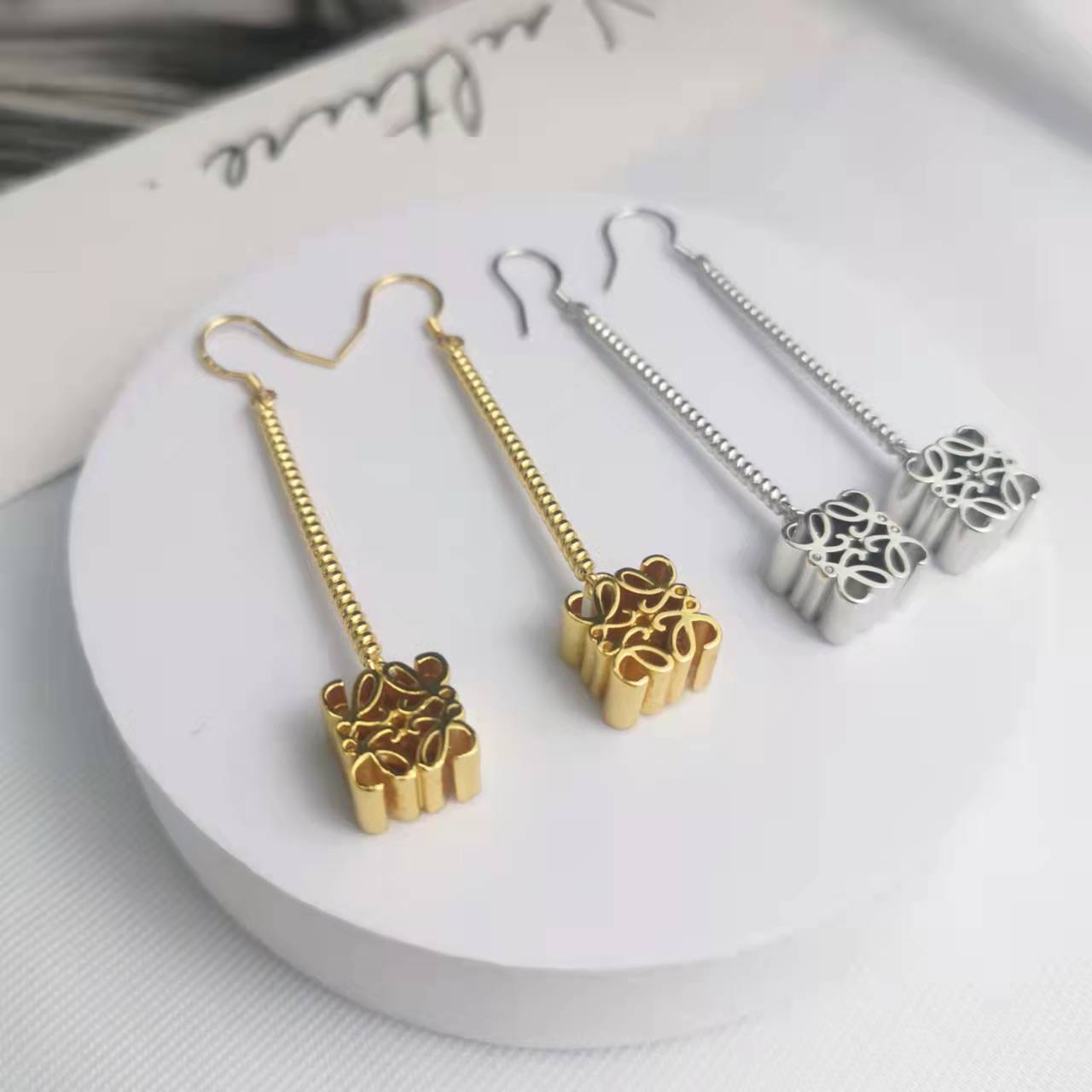 罗家21新款月饼长款耳环女高级感气质光面镀金几何印花链条耳坠
