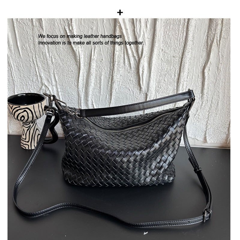 羊皮编织饭盒包饺子包遛狗包慵懒风双肩带腋下包手挽手提斜挎女包