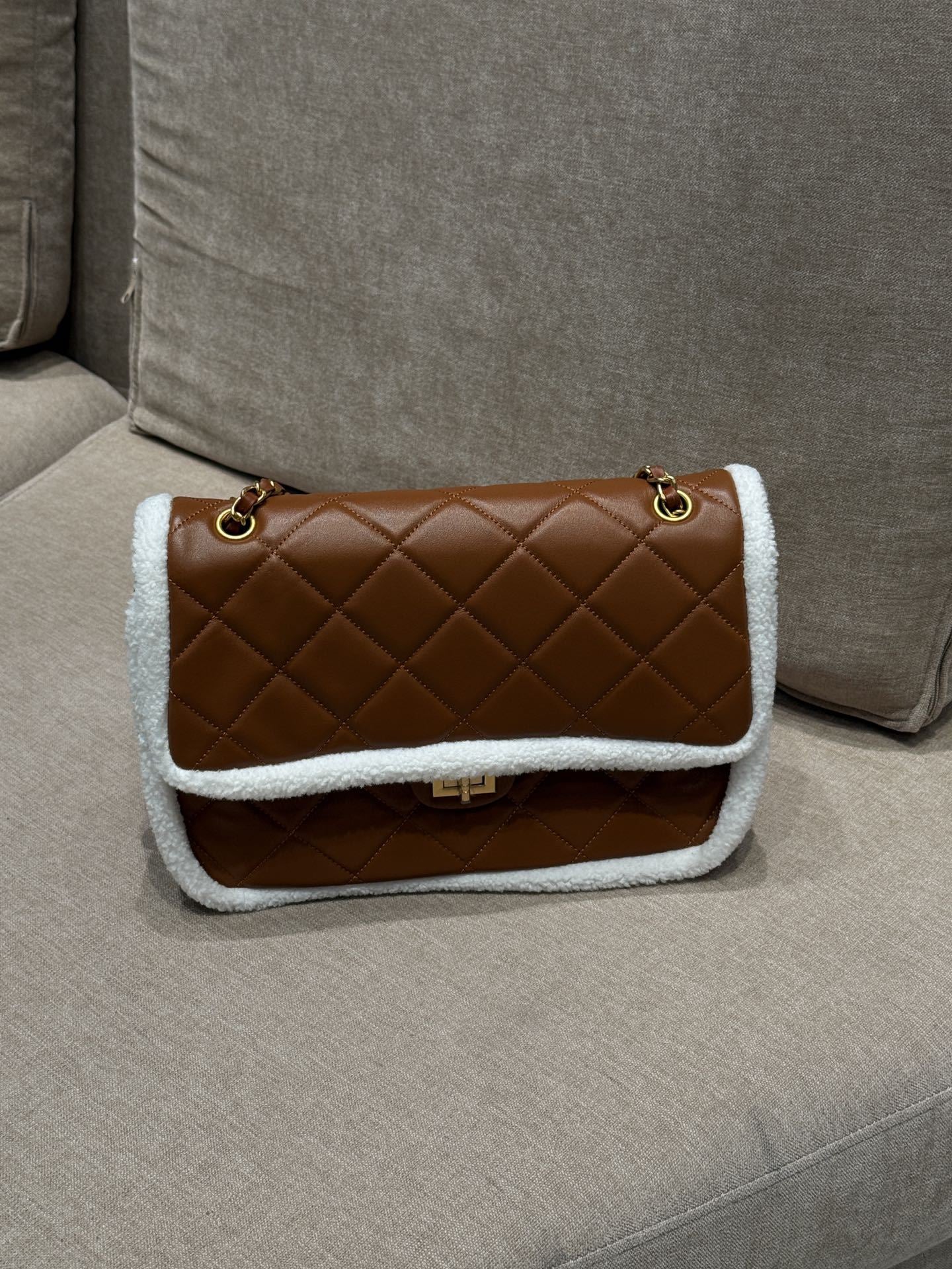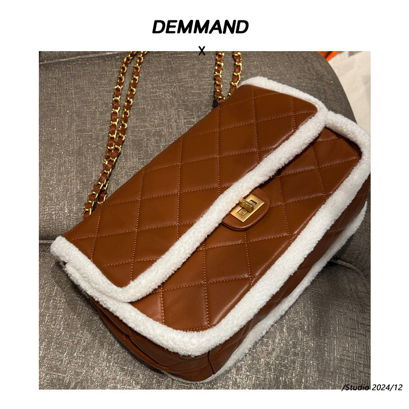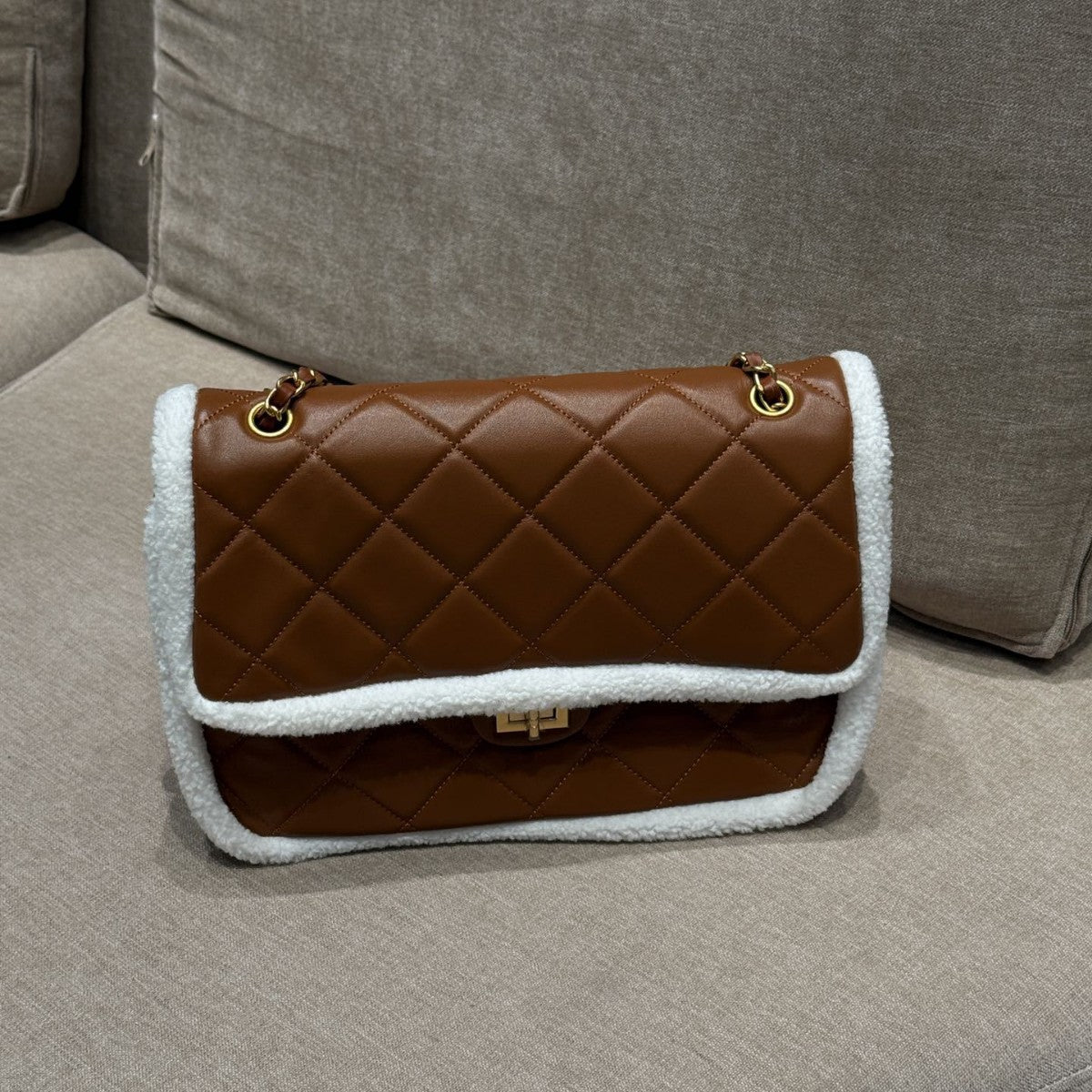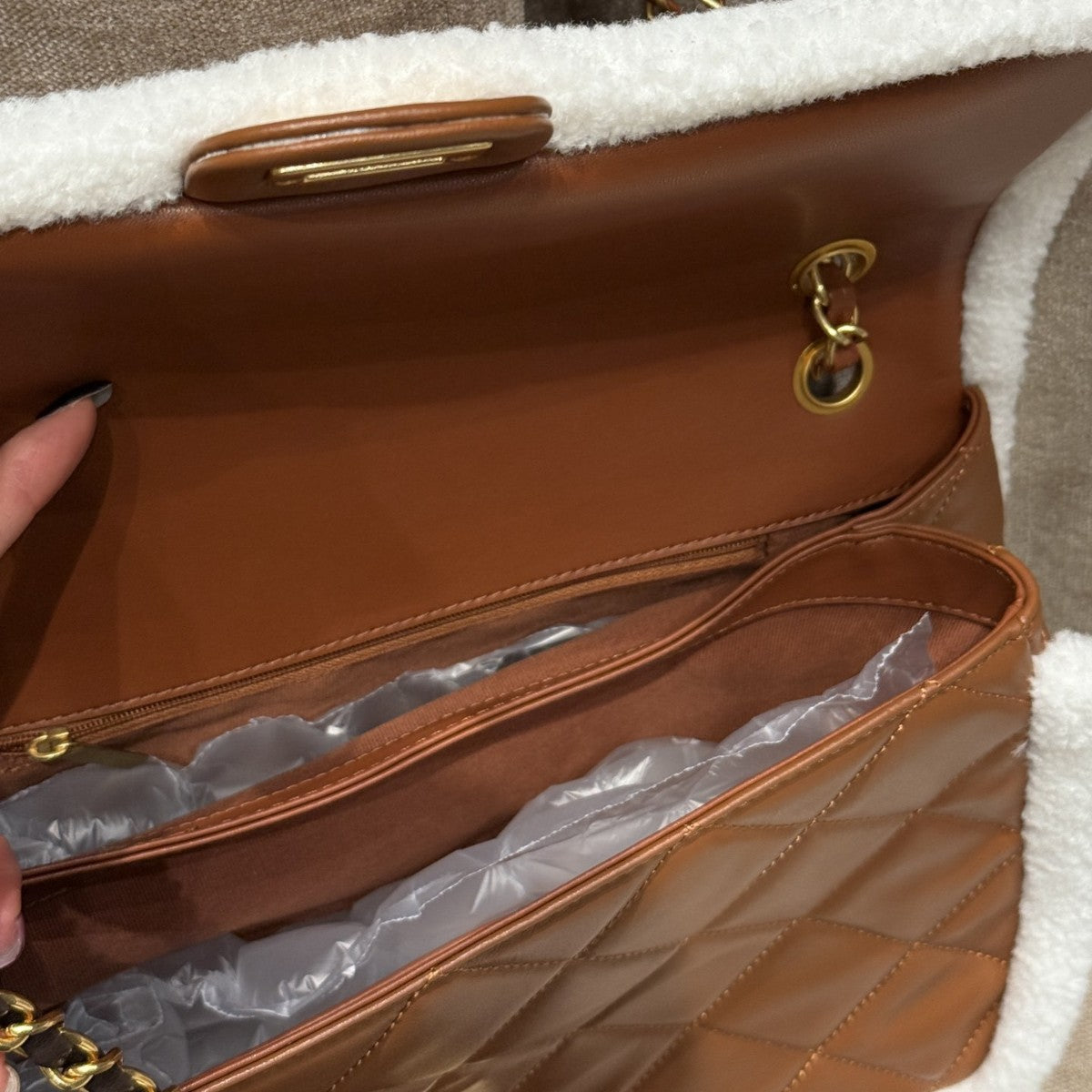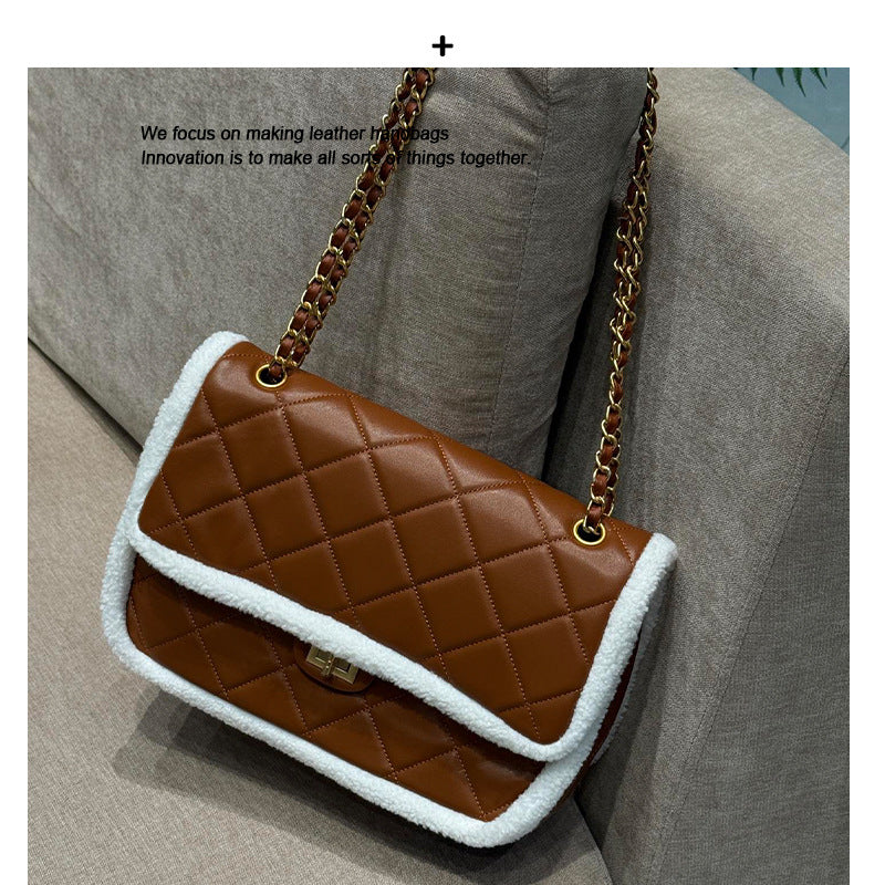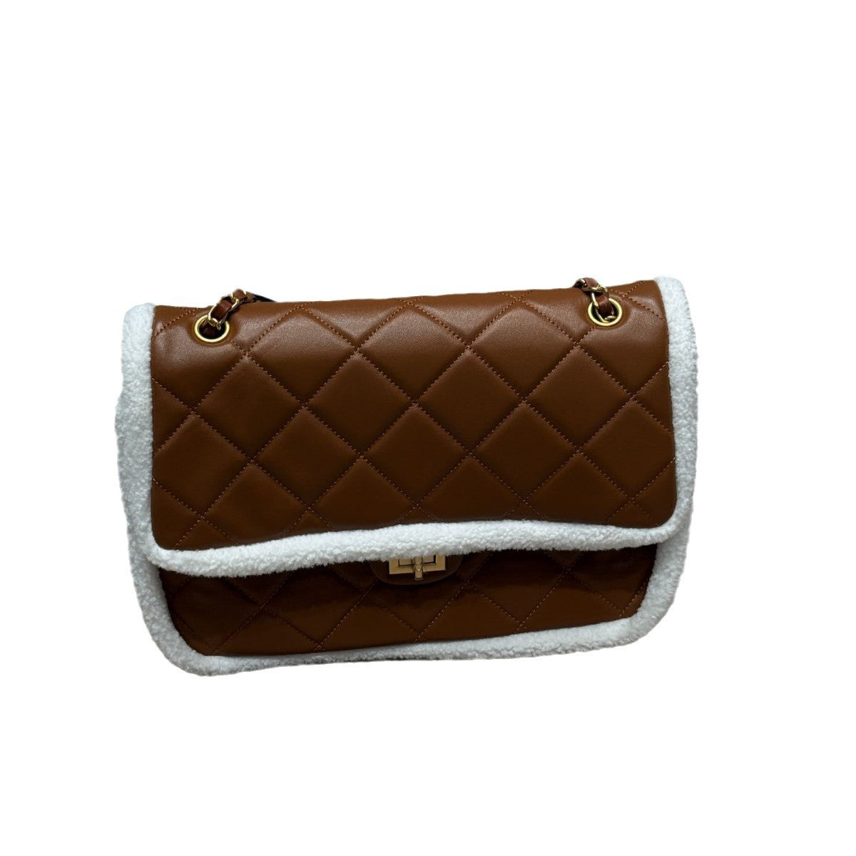 羊羔毛磨砂皮包2024秋冬新款时尚毛绒单肩包真皮锁扣托特包手提包