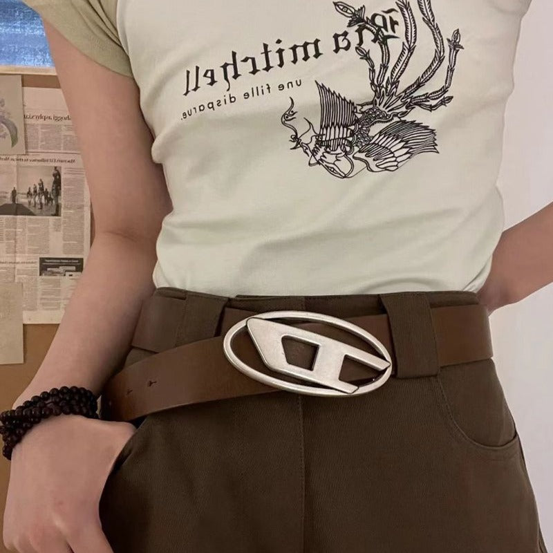 美式复古银色扣D字母腰带男女通用百搭装饰连衣裙牛仔裤皮带工厂