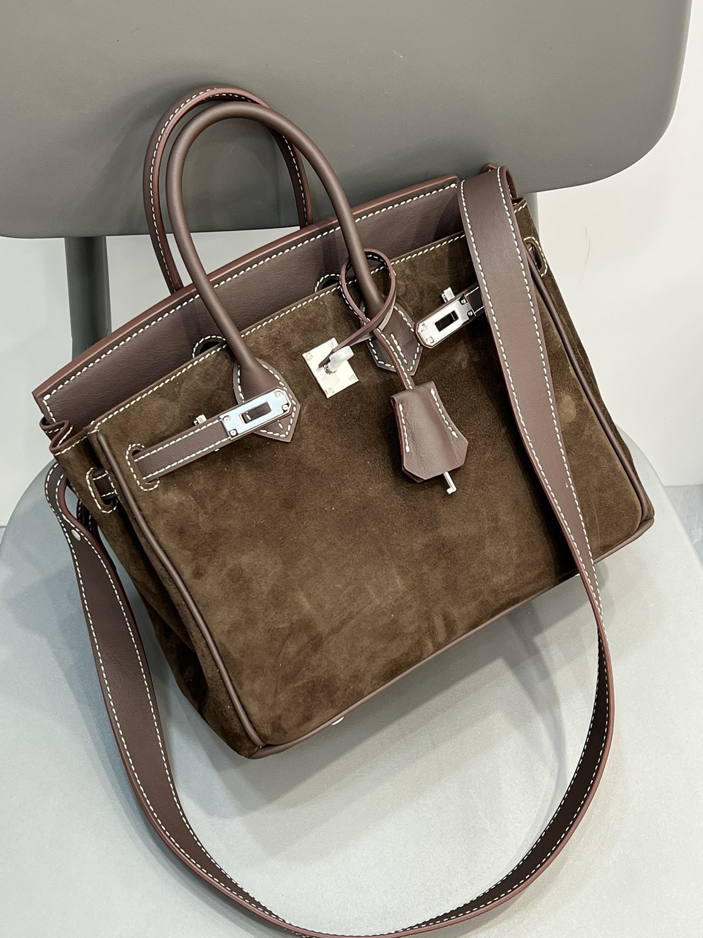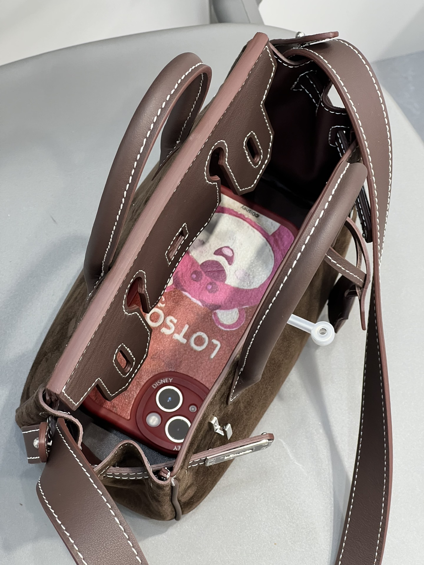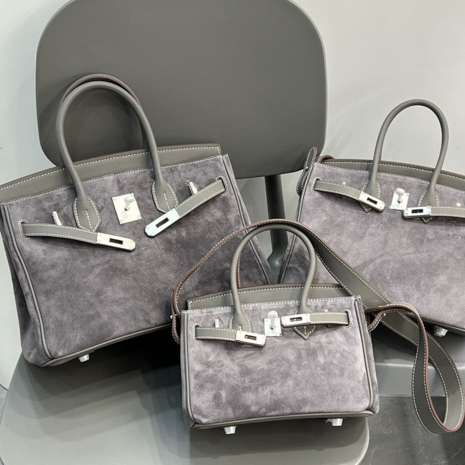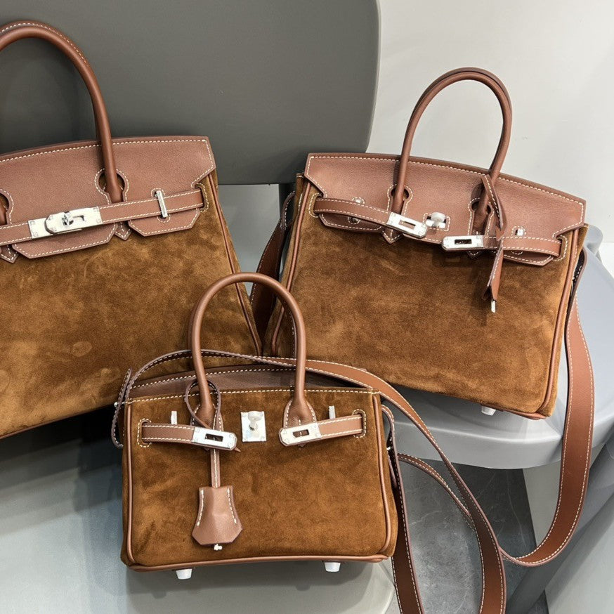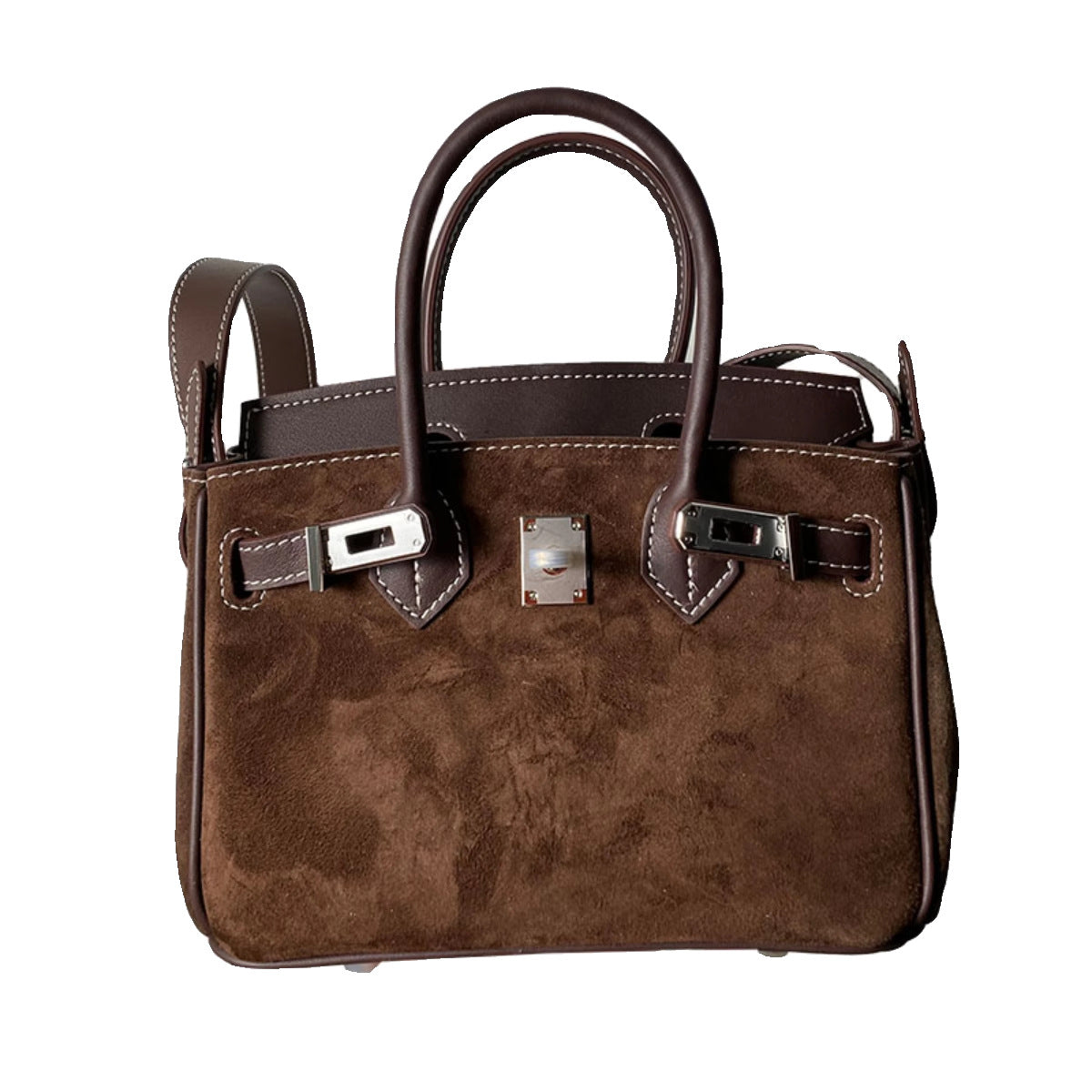 美拉德 铂金麂皮配牛皮包包女秋冬高级感手提包 潮百搭单肩斜挎包
