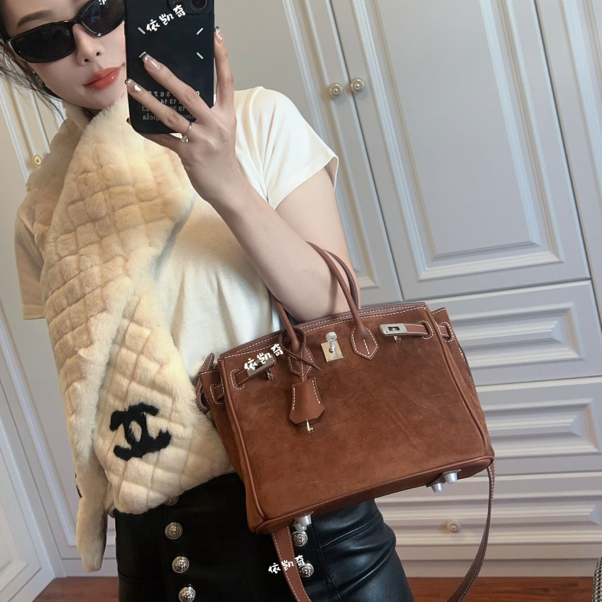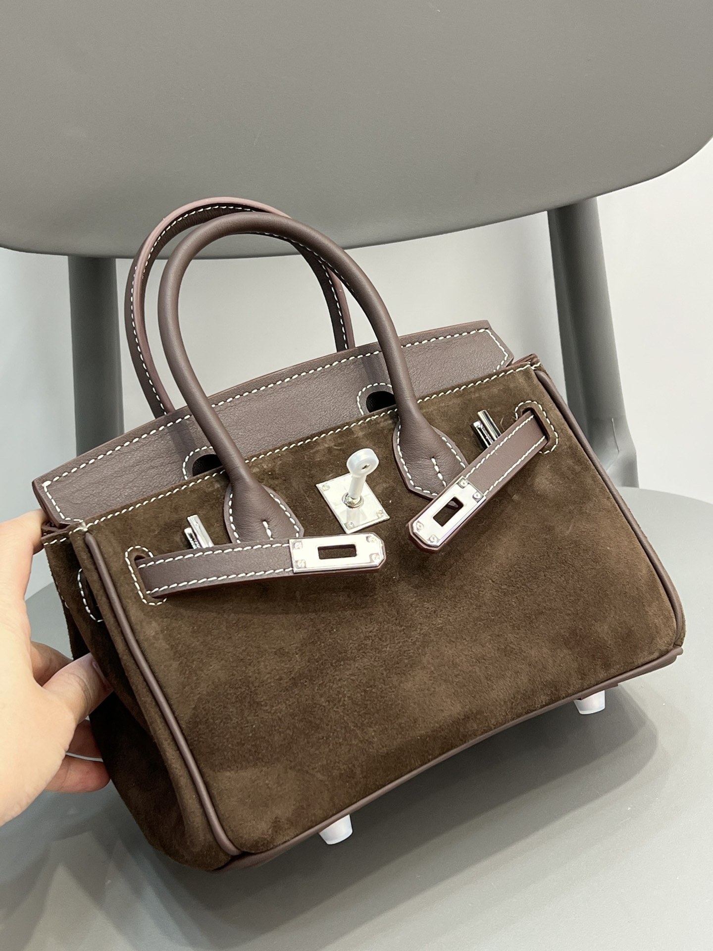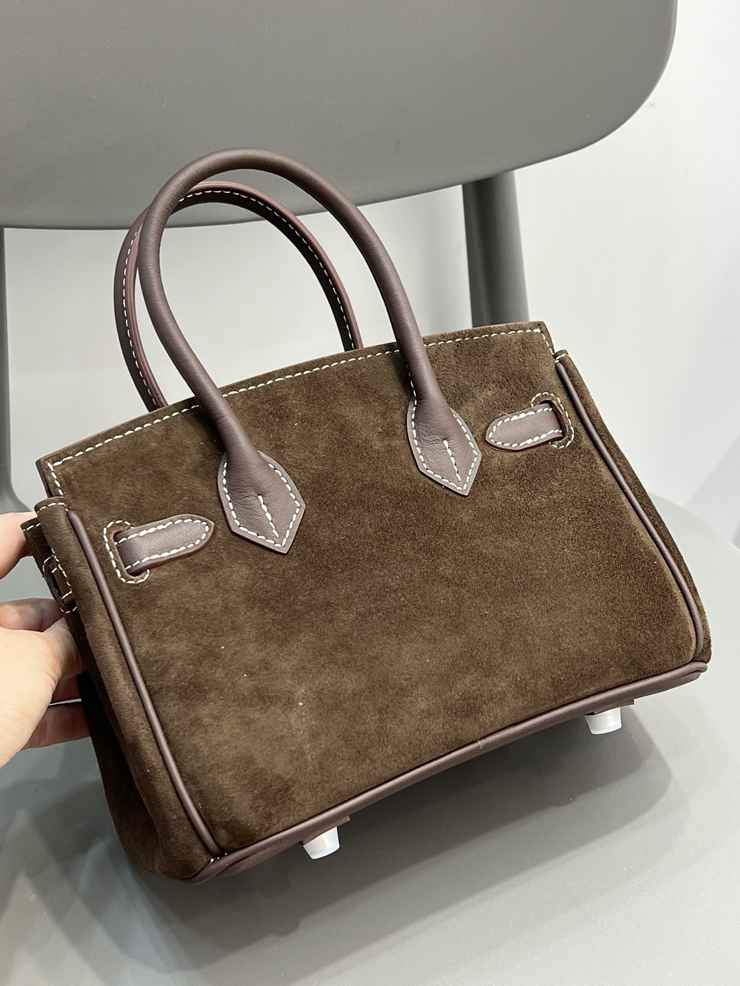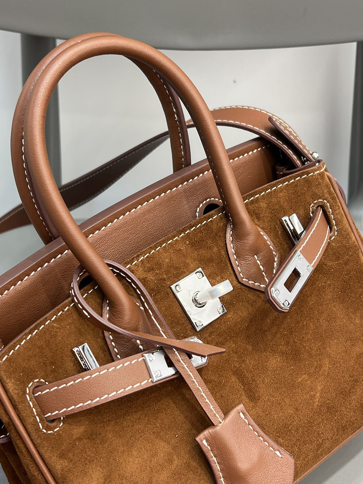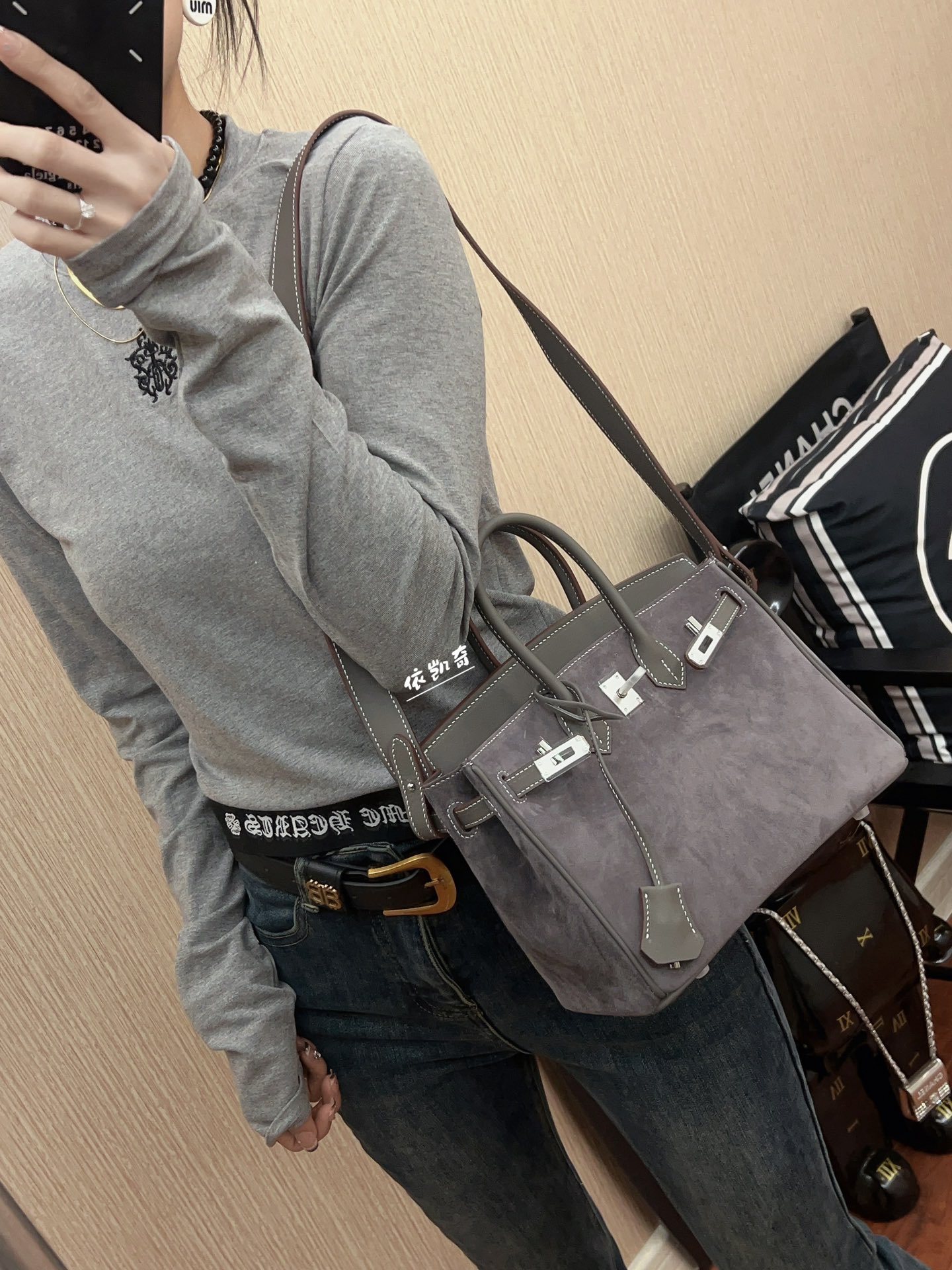 美拉德 铂金麂皮配牛皮包包女秋冬高级感手提包 潮百搭单肩斜挎包