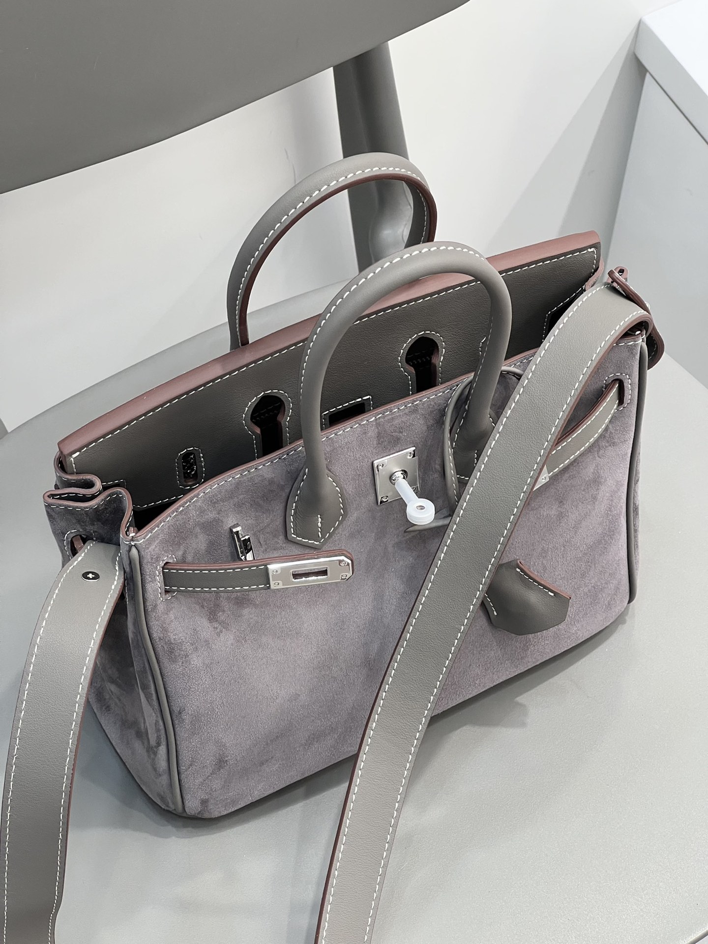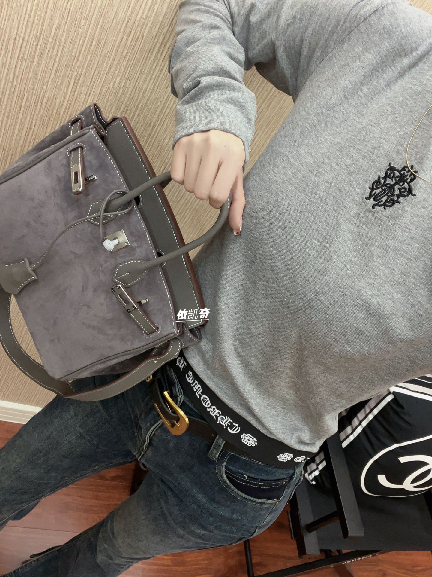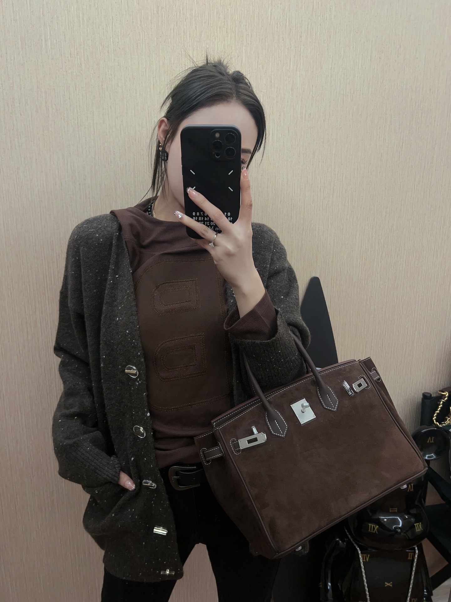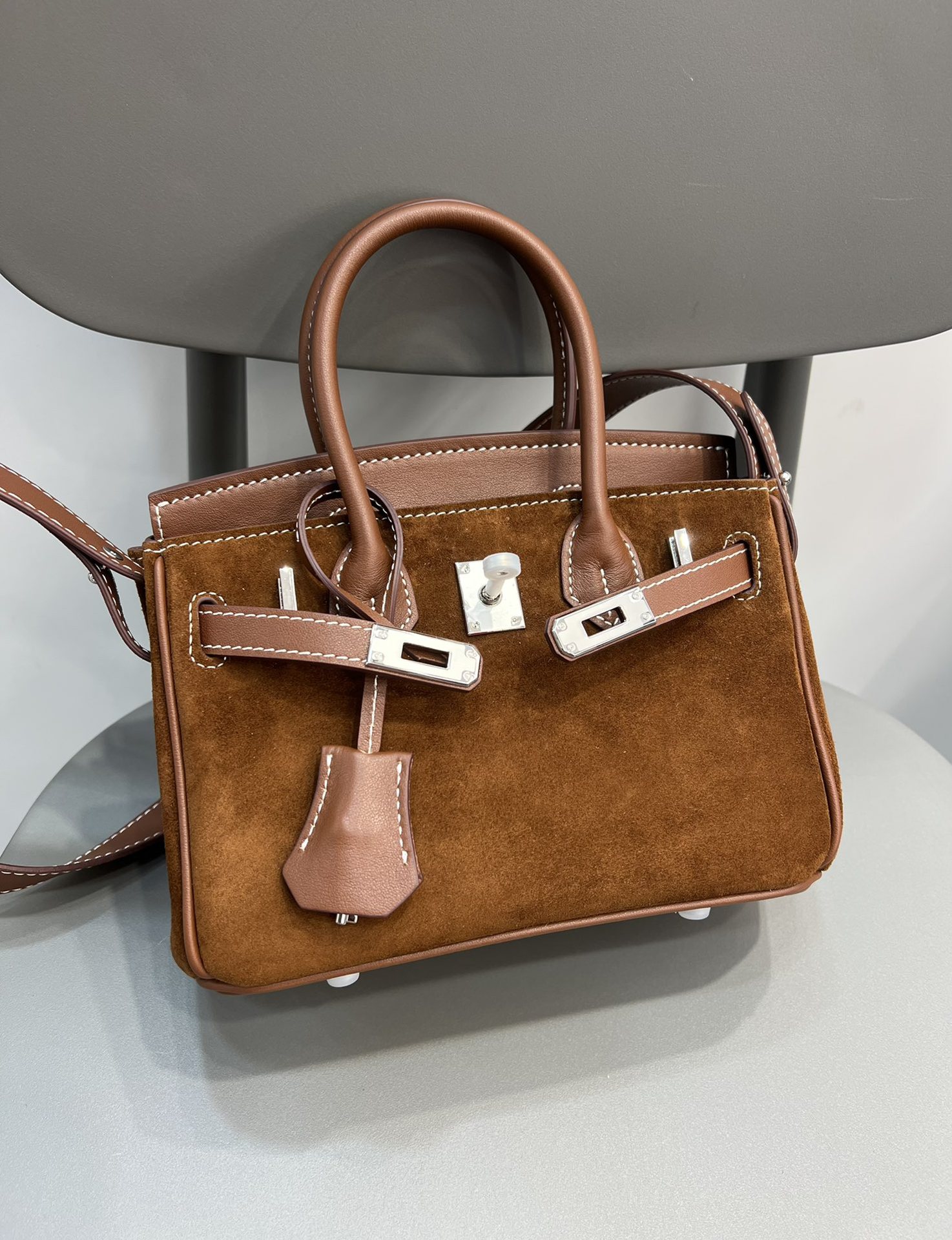 美拉德 铂金麂皮配牛皮包包女秋冬高级感手提包 潮百搭单肩斜挎包