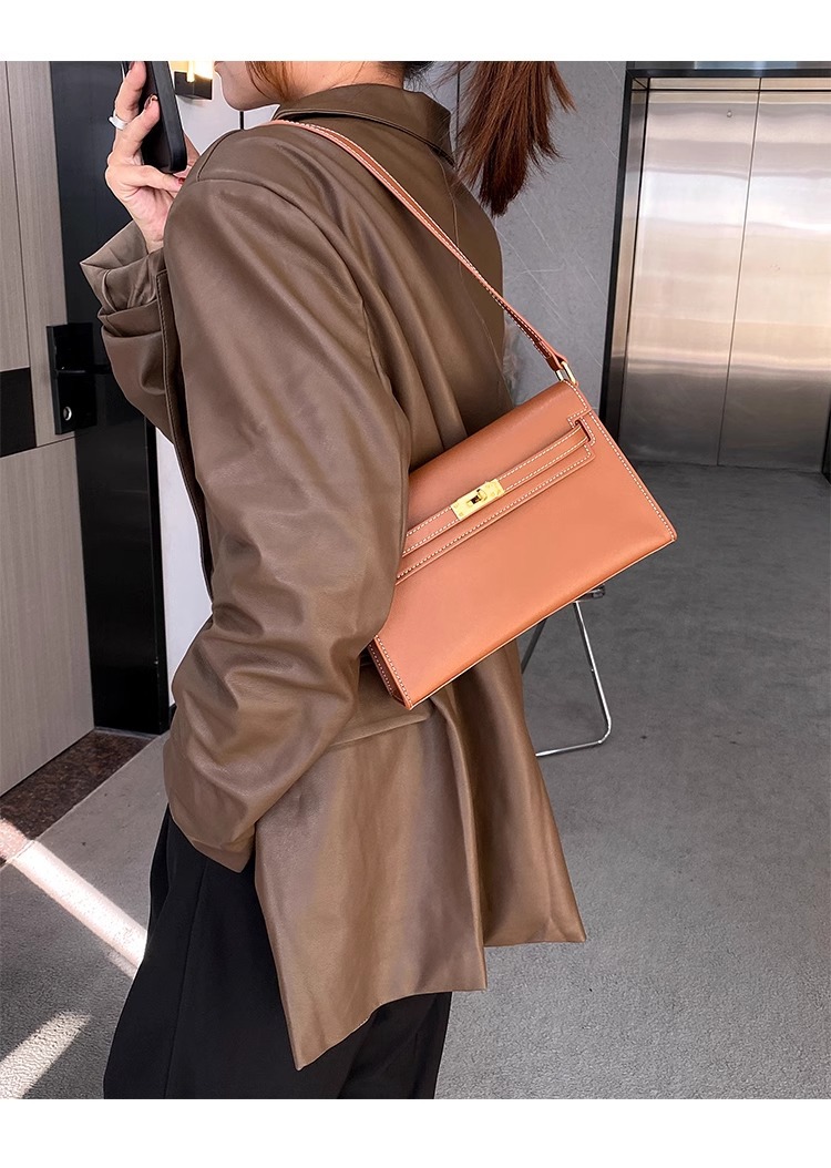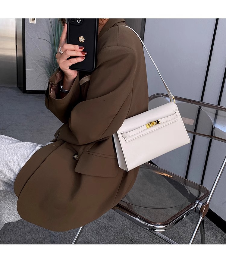 腋下包包女春夏2024新款通勤法棍包斜挎包高级质感复古单肩凯莉包