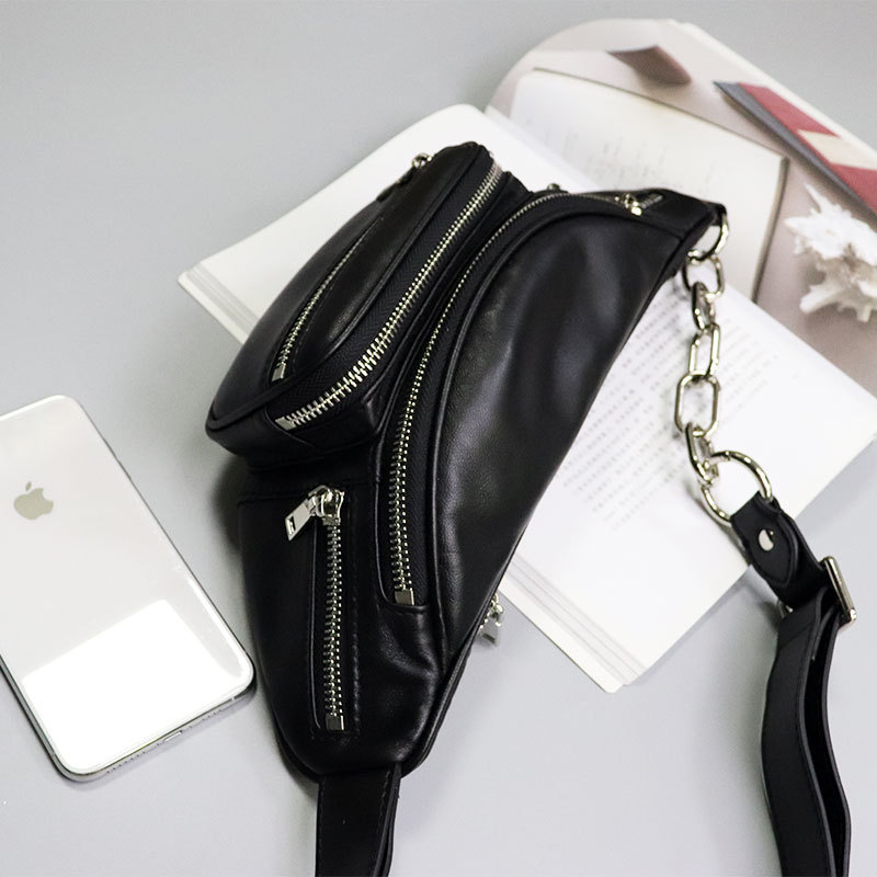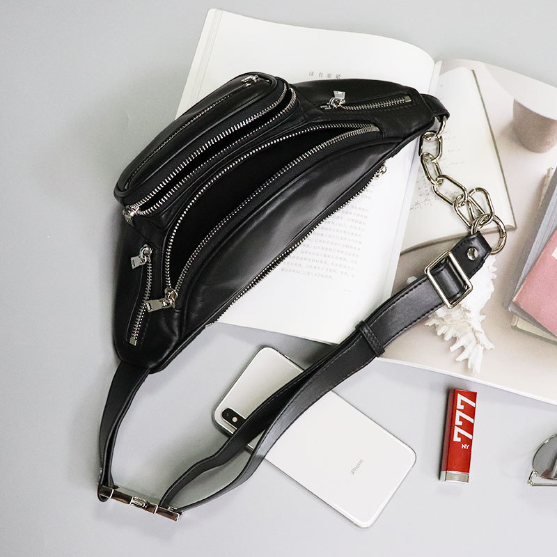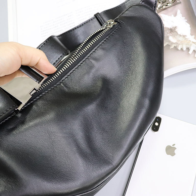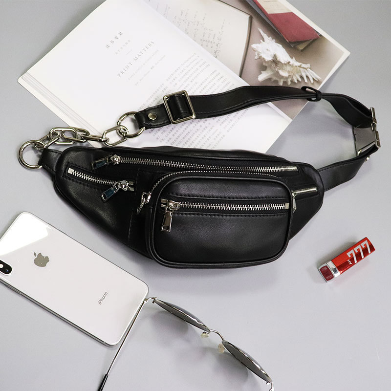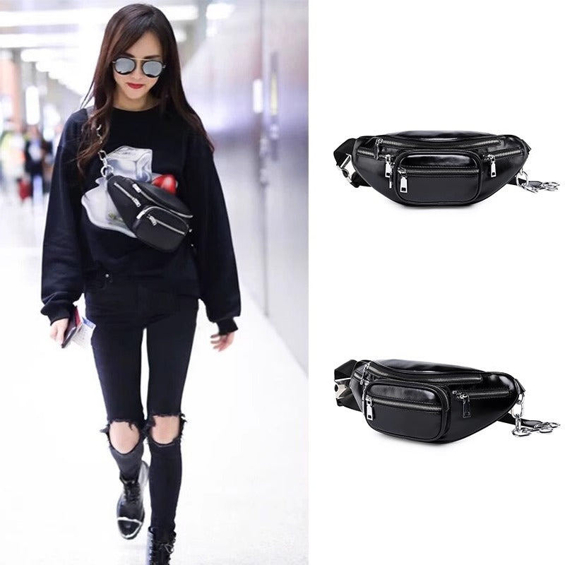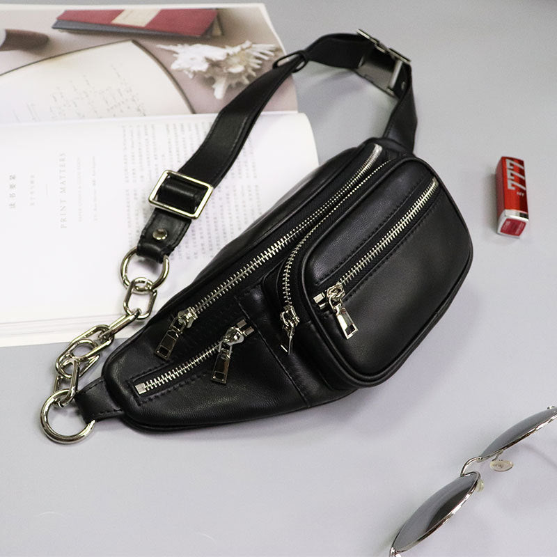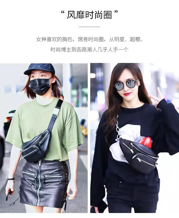 腰包女潮ins桑稚赵露思同款羊皮女胸包真皮百搭单肩斜挎链条小包