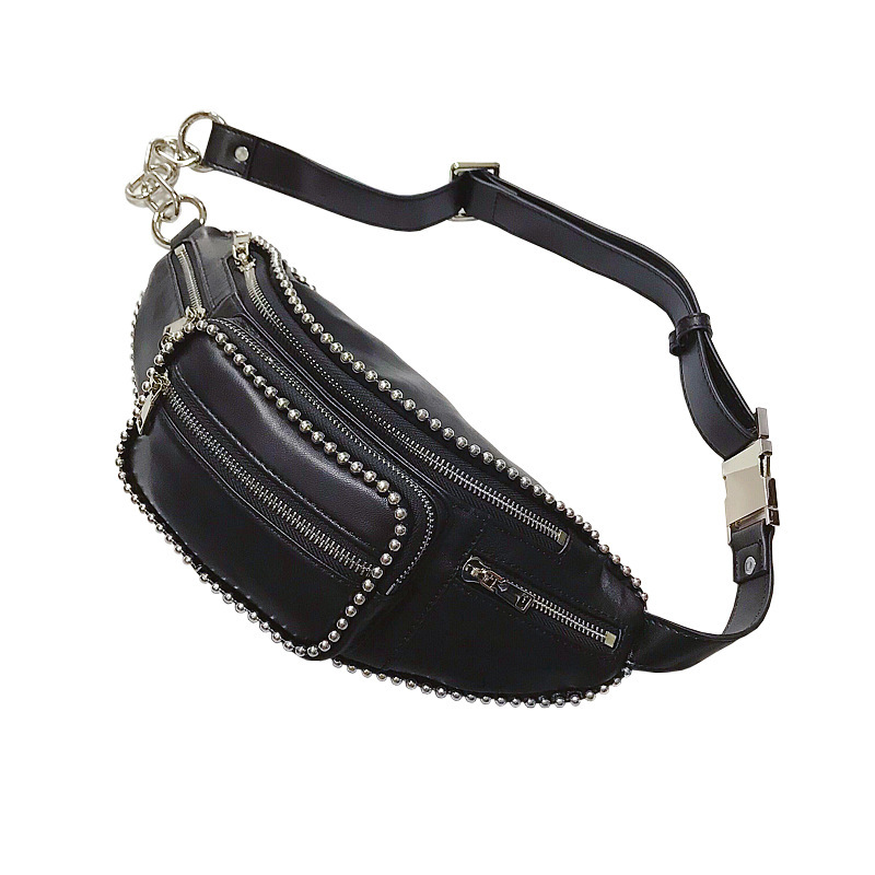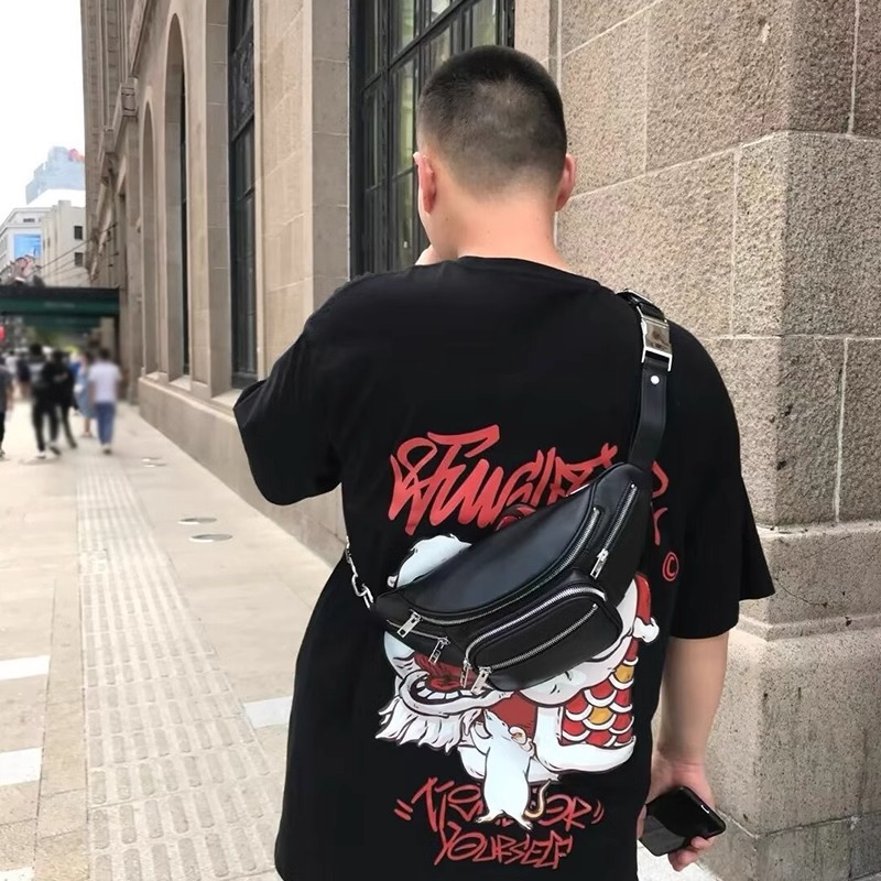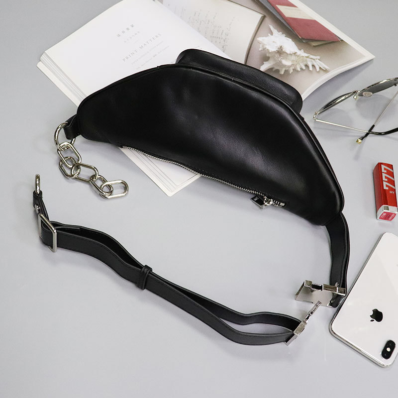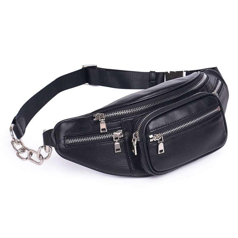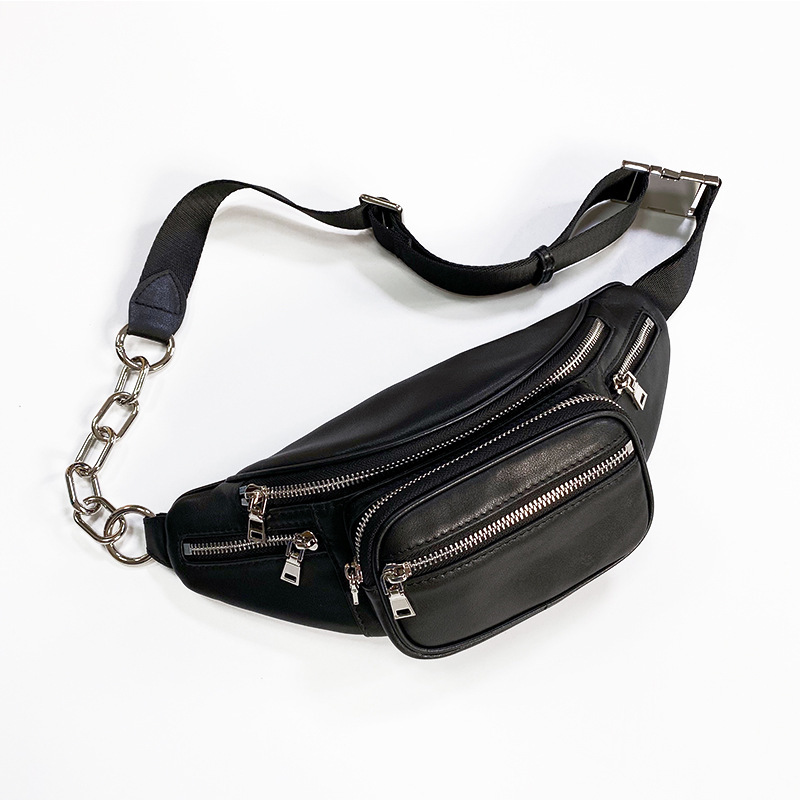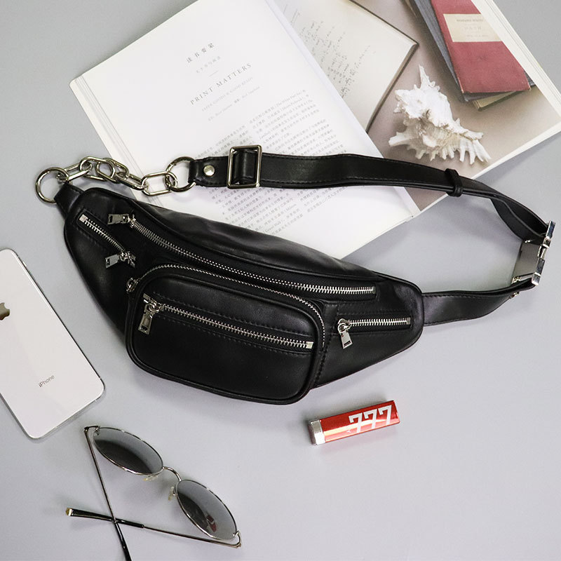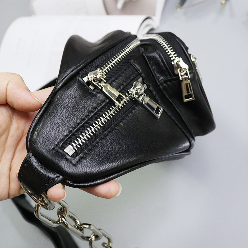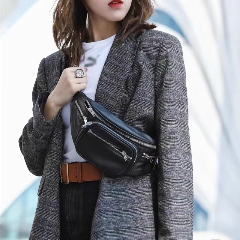 腰包女潮ins桑稚赵露思同款羊皮女胸包真皮百搭单肩斜挎链条小包