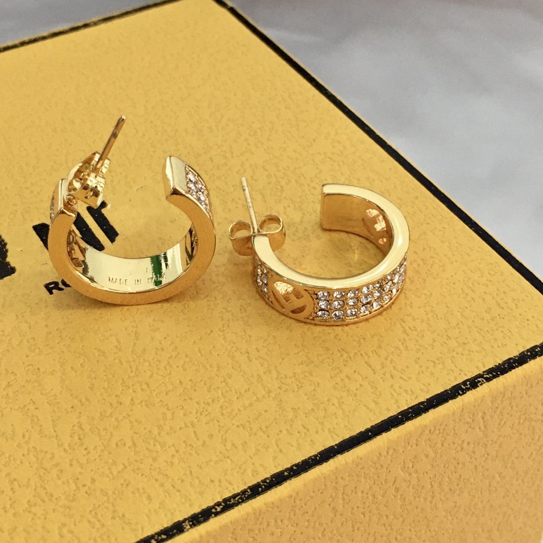 芬家新款满天星满钻耳环女高级感个性气质轻奢风F字母耳钉
