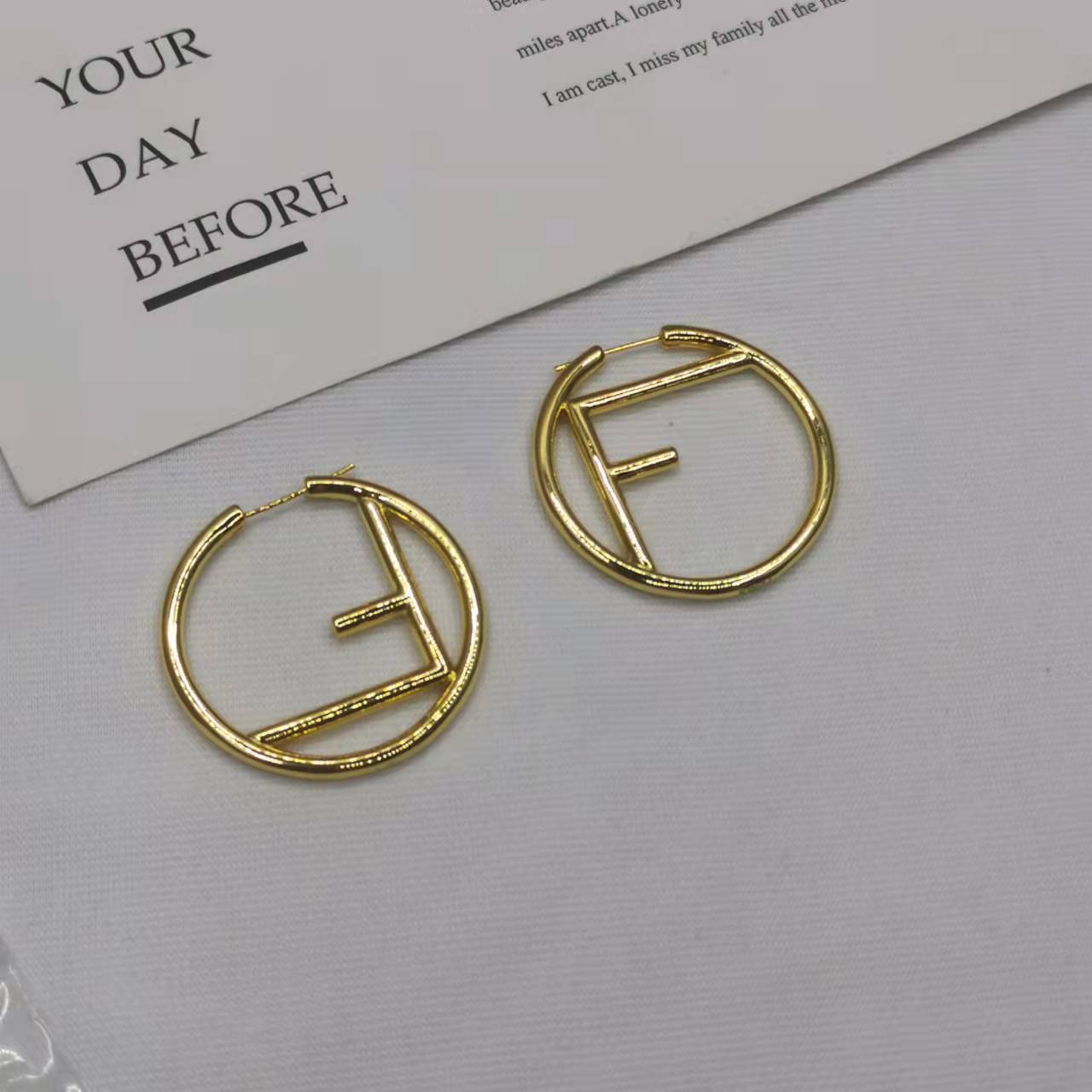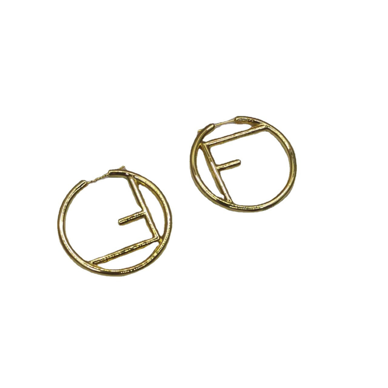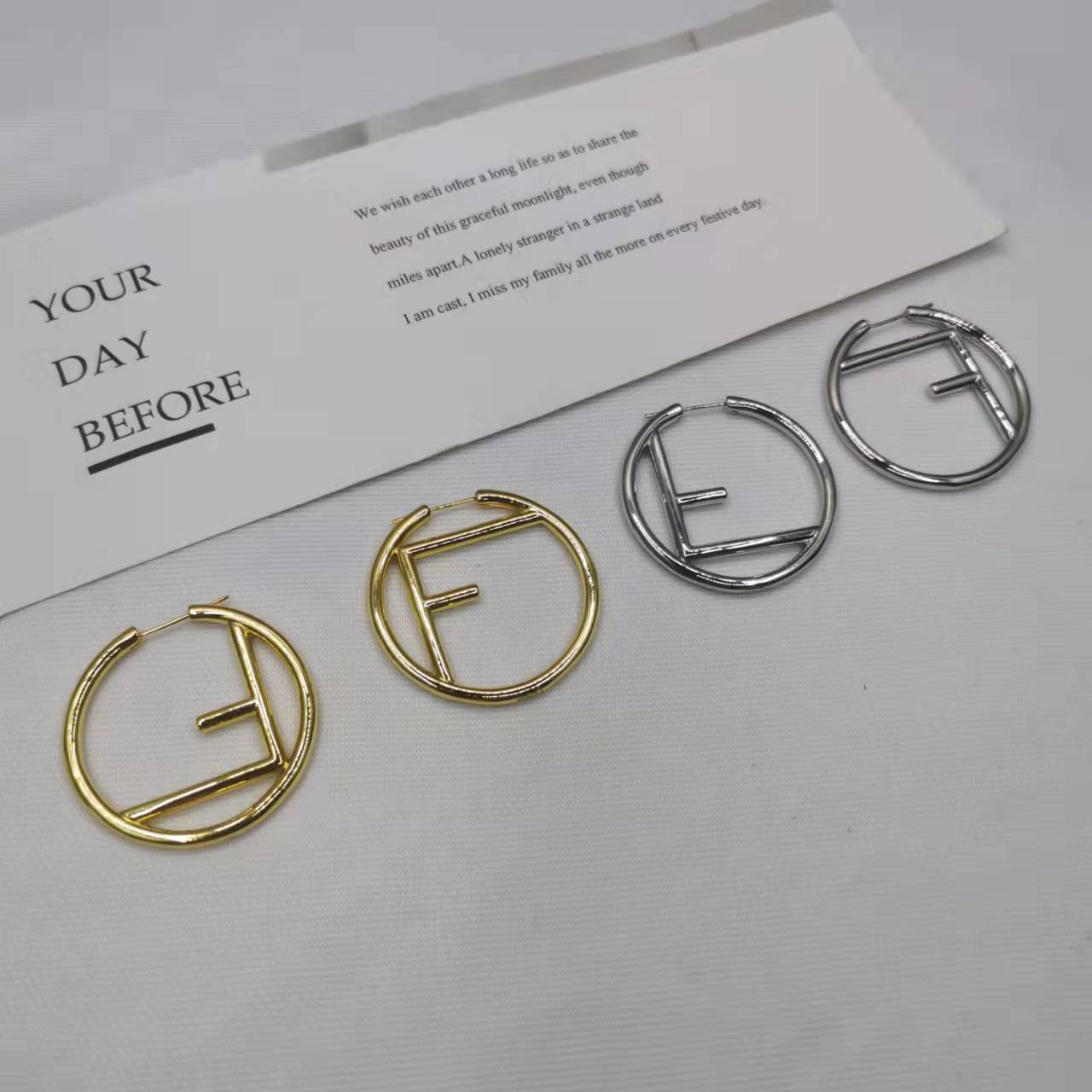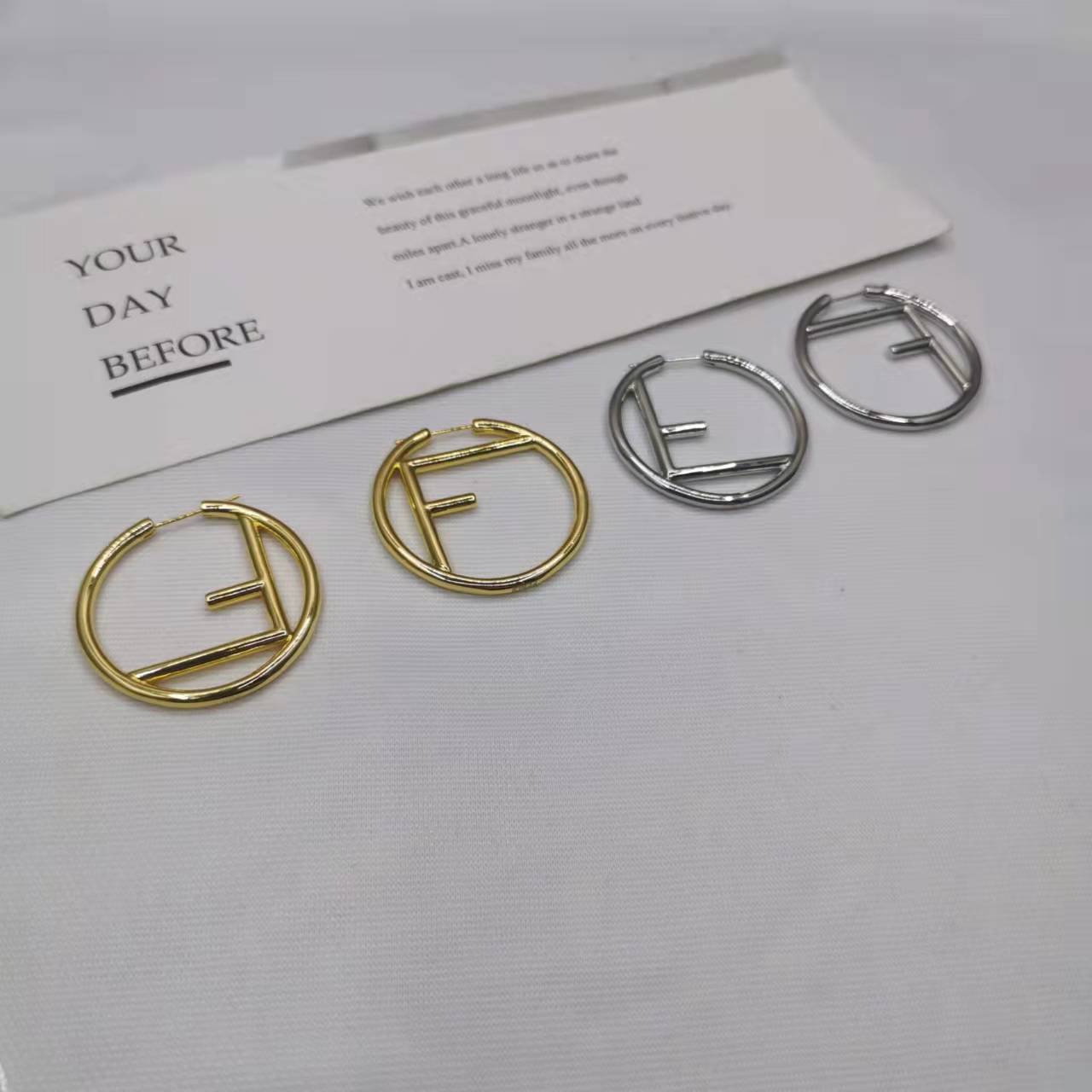 芬家21新款F字母圆圈耳环女高级感气质光面欧美风耳扣不对称耳圈