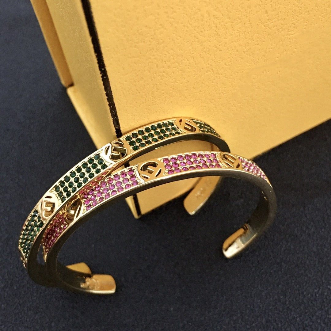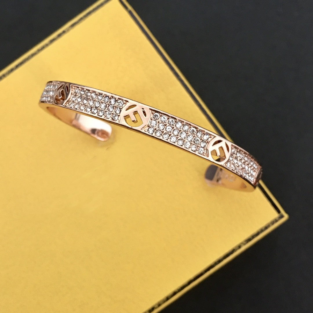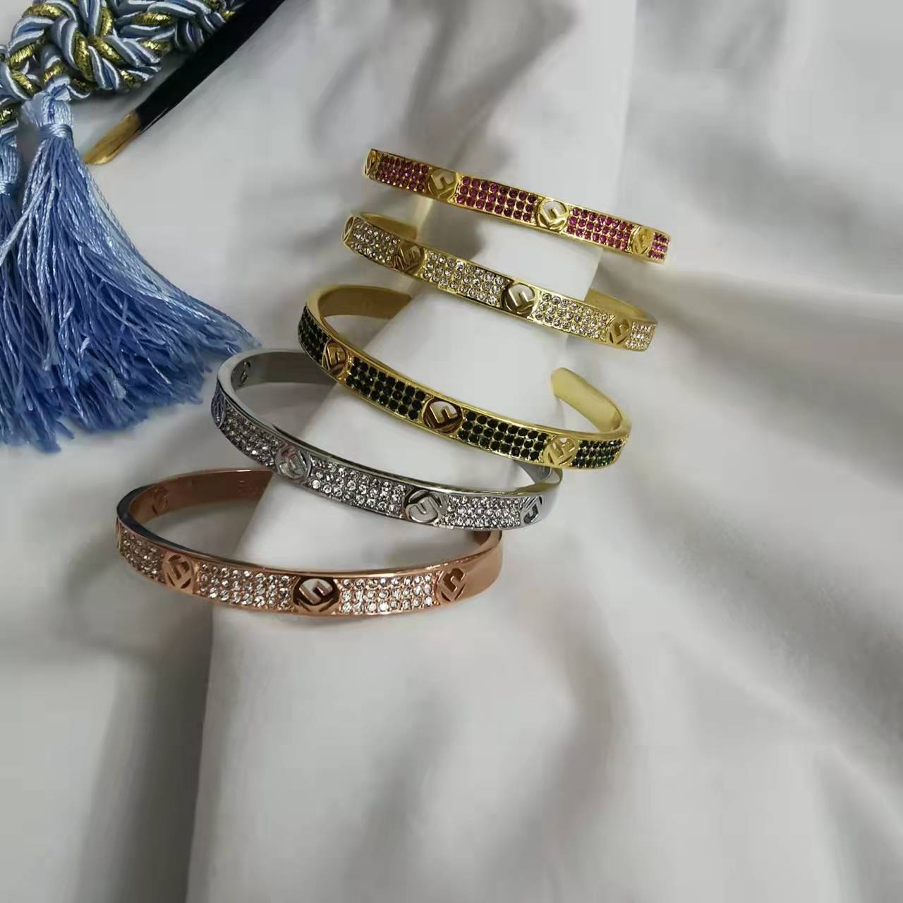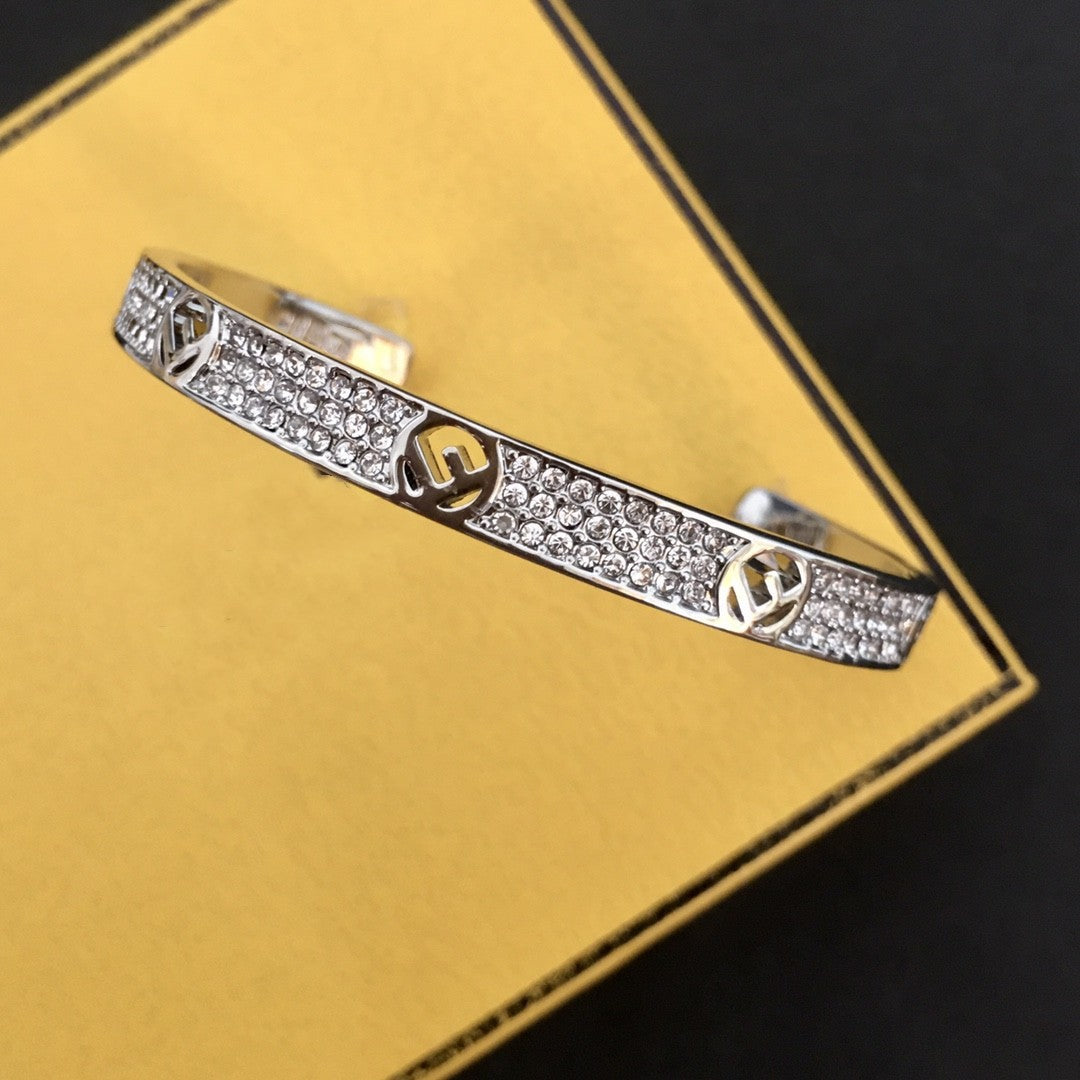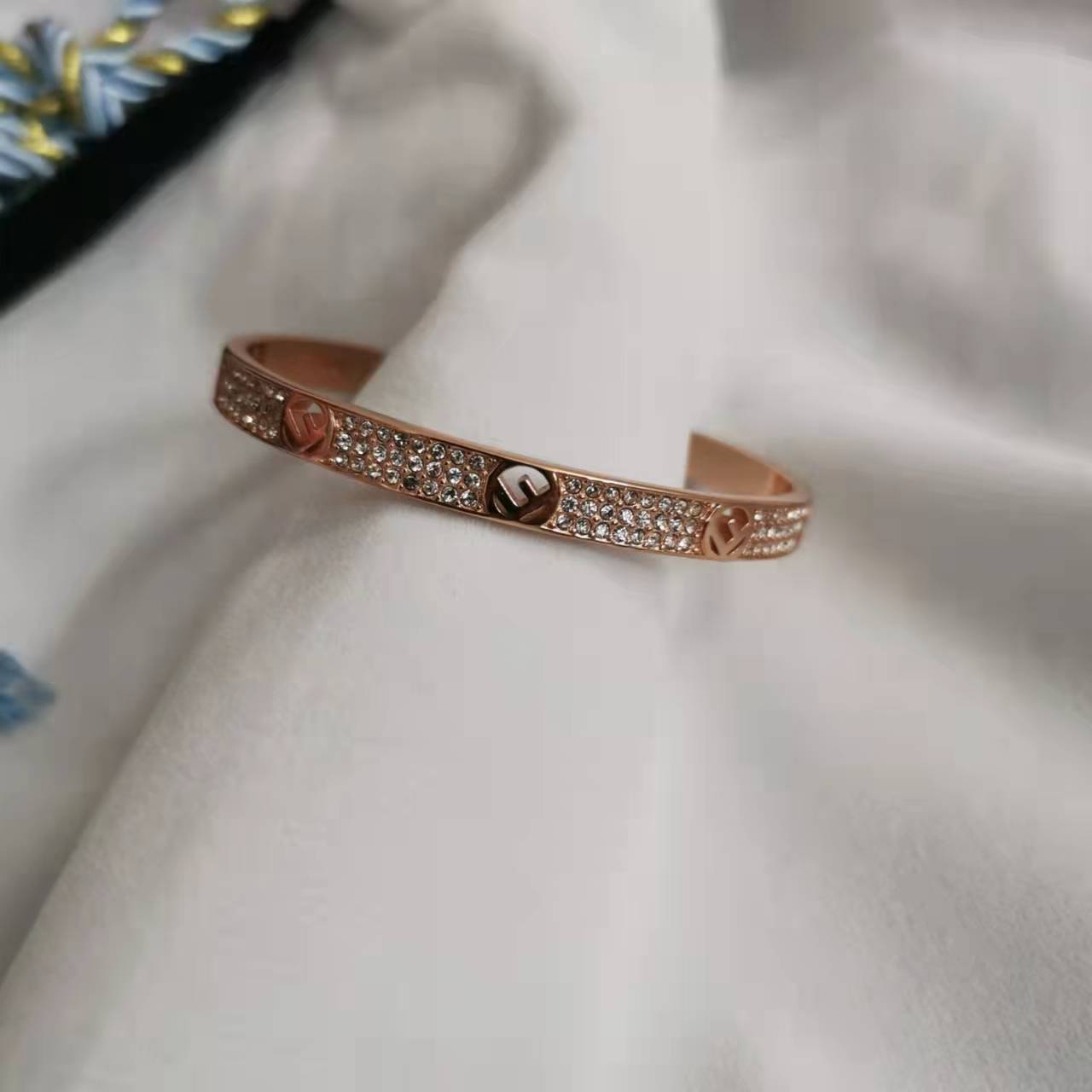 芬家21新款F字母满钻手镯女高级感气质镀金轻奢风几何形开口手环