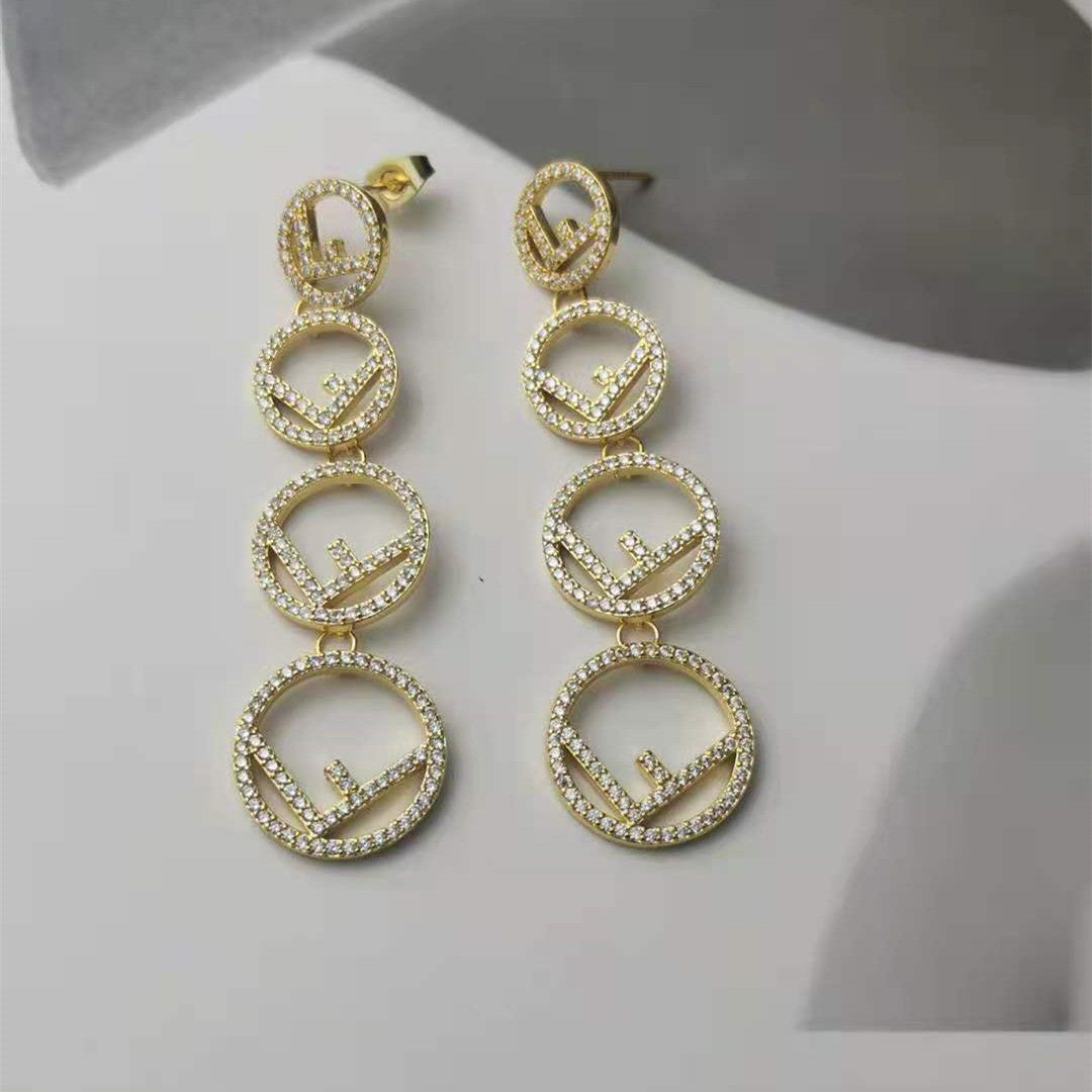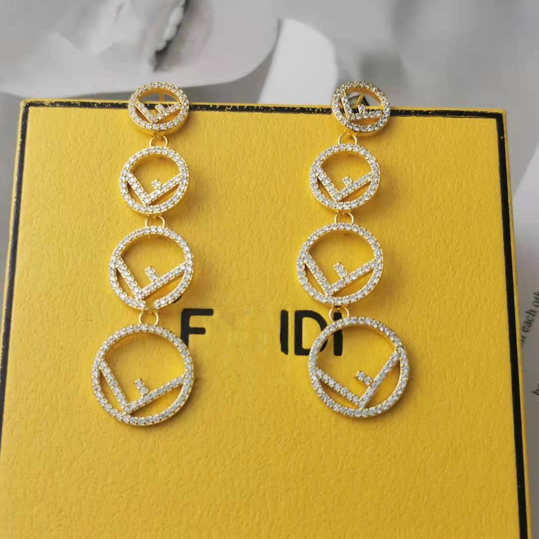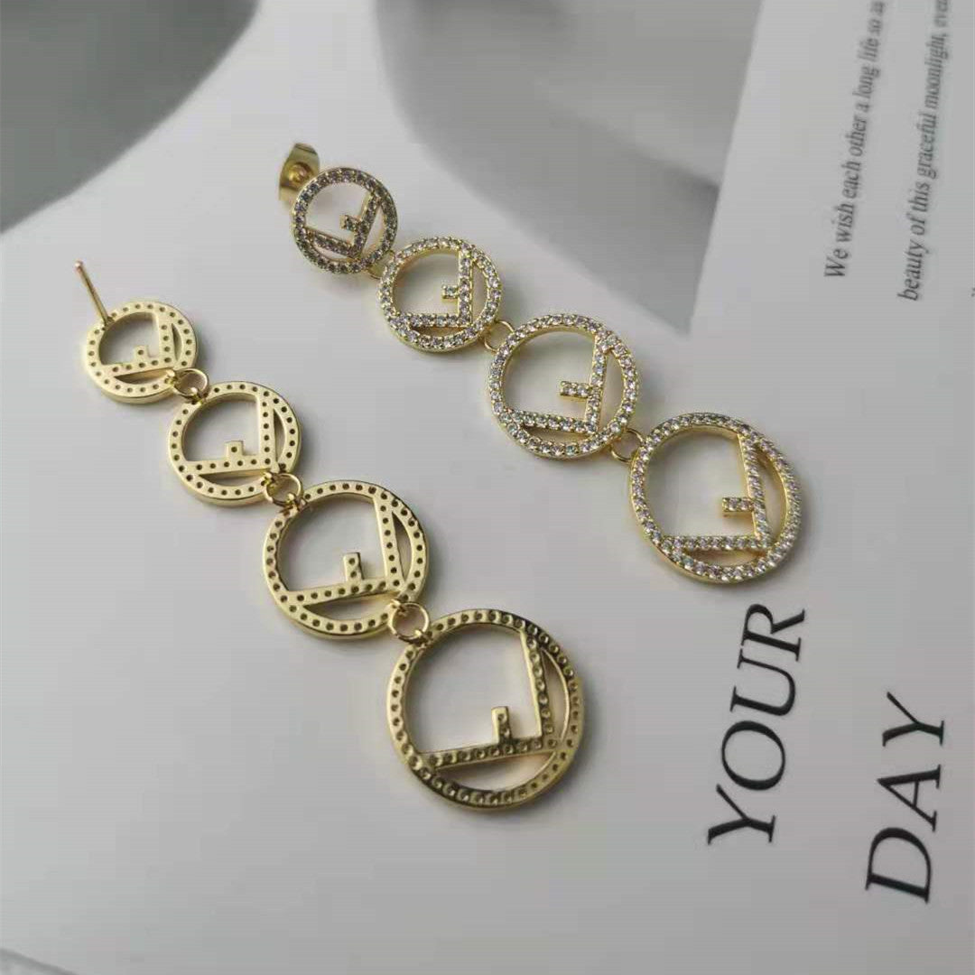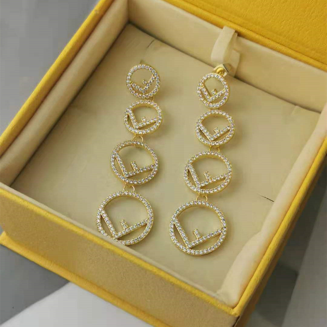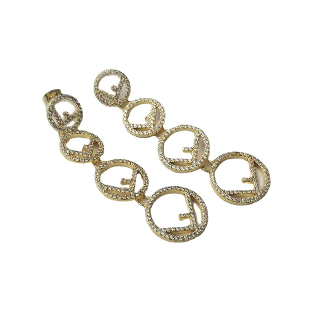 芬家21新款F字母满钻耳环高级感气质批发个性欧美长款流苏F耳钉