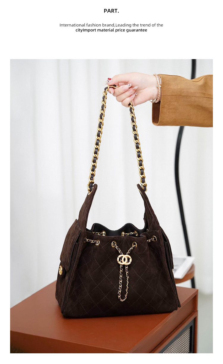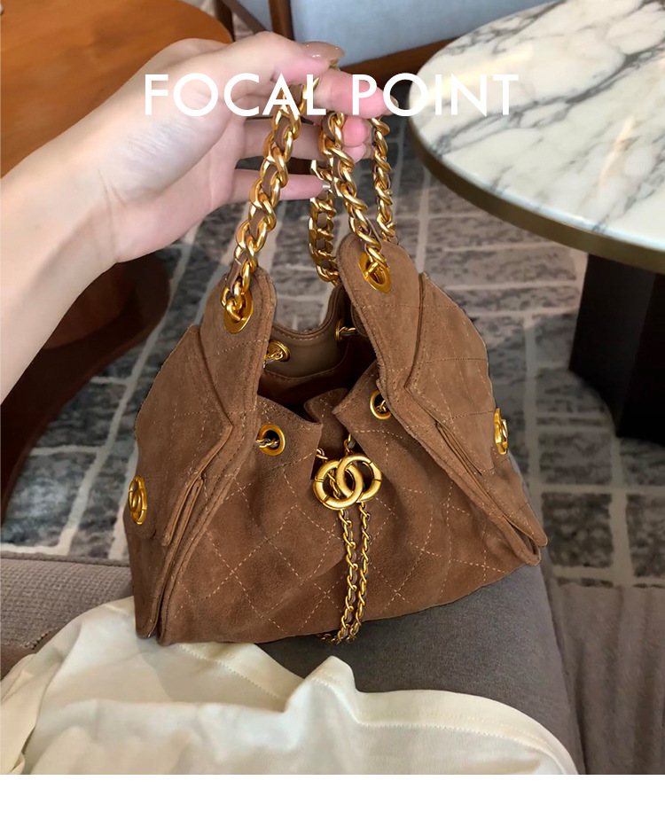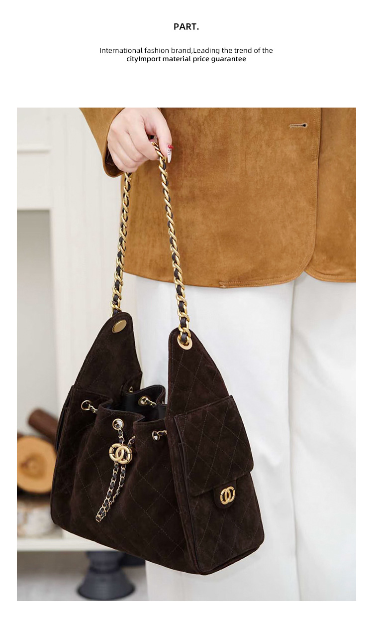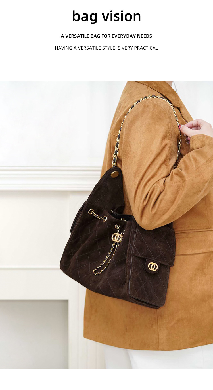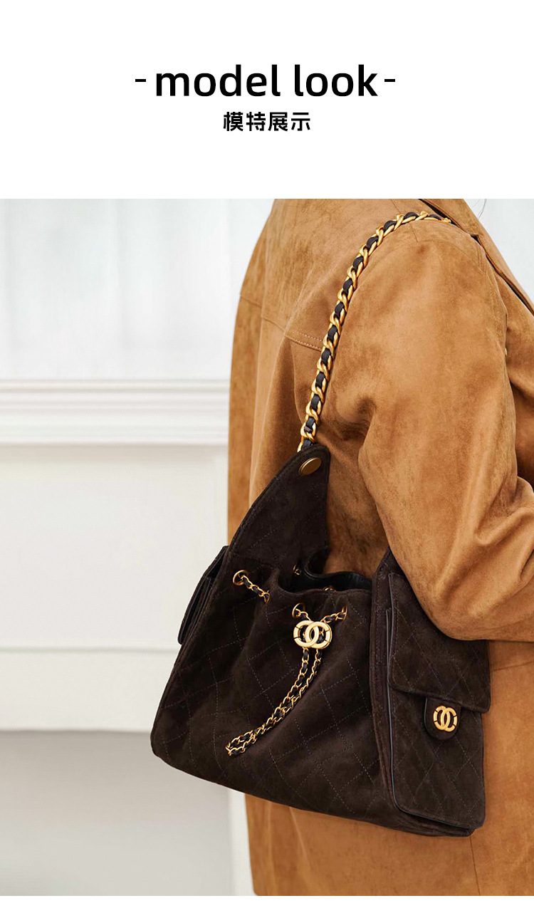 菱格托特包磨砂真皮小香风麂皮绒链条腋下包反绒皮单肩通勤包包女