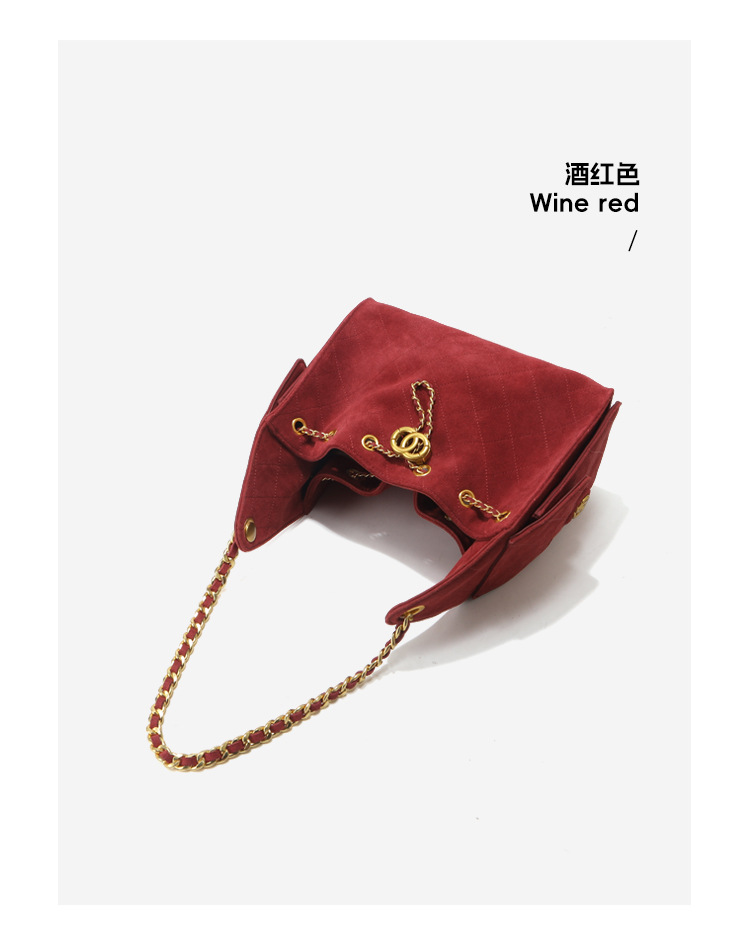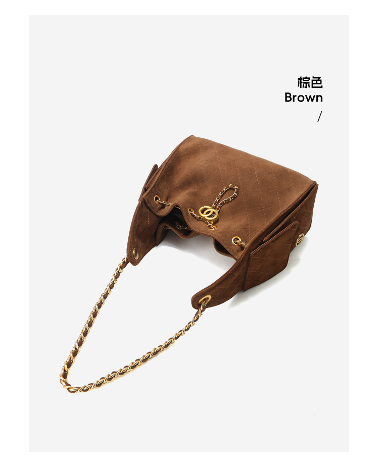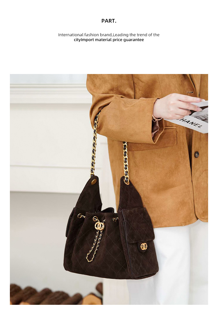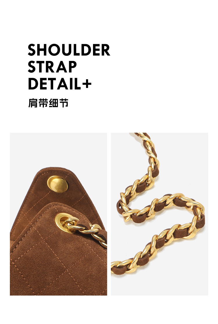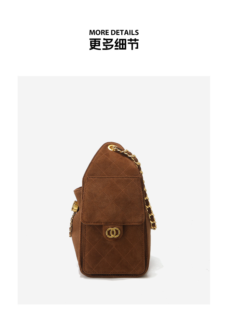 菱格托特包磨砂真皮小香风麂皮绒链条腋下包反绒皮单肩通勤包包女