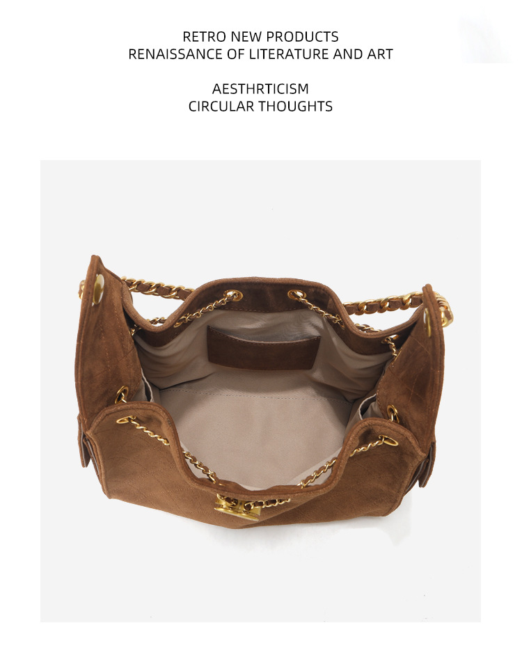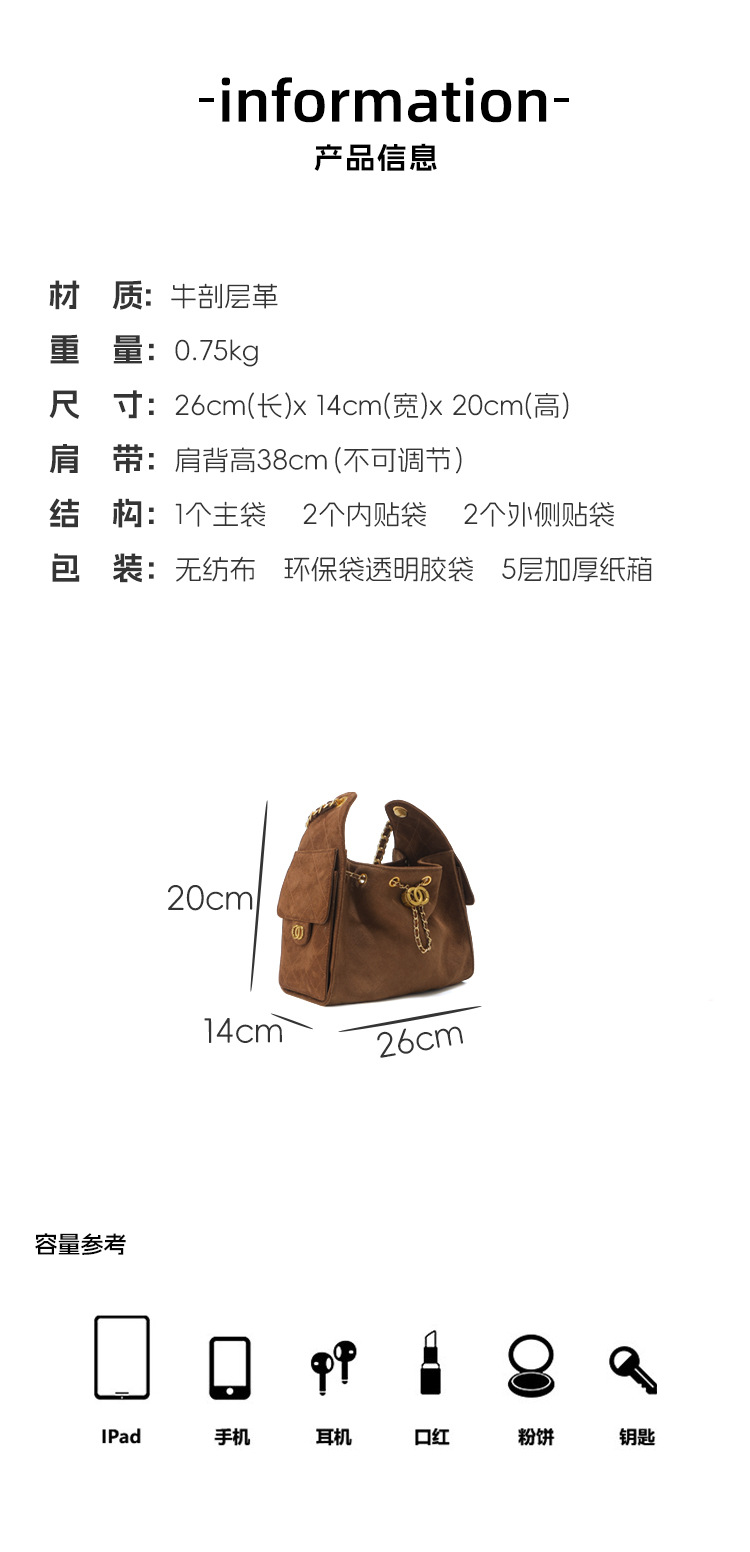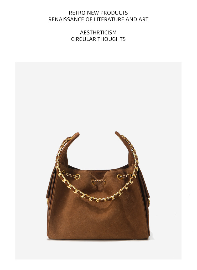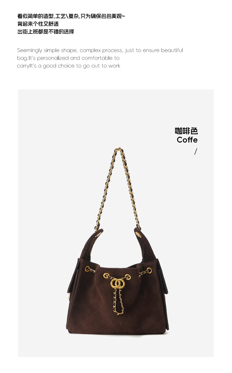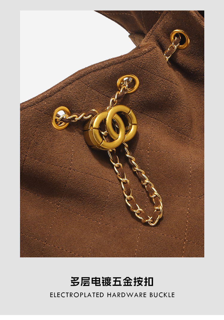 菱格托特包磨砂真皮小香风麂皮绒链条腋下包反绒皮单肩通勤包包女